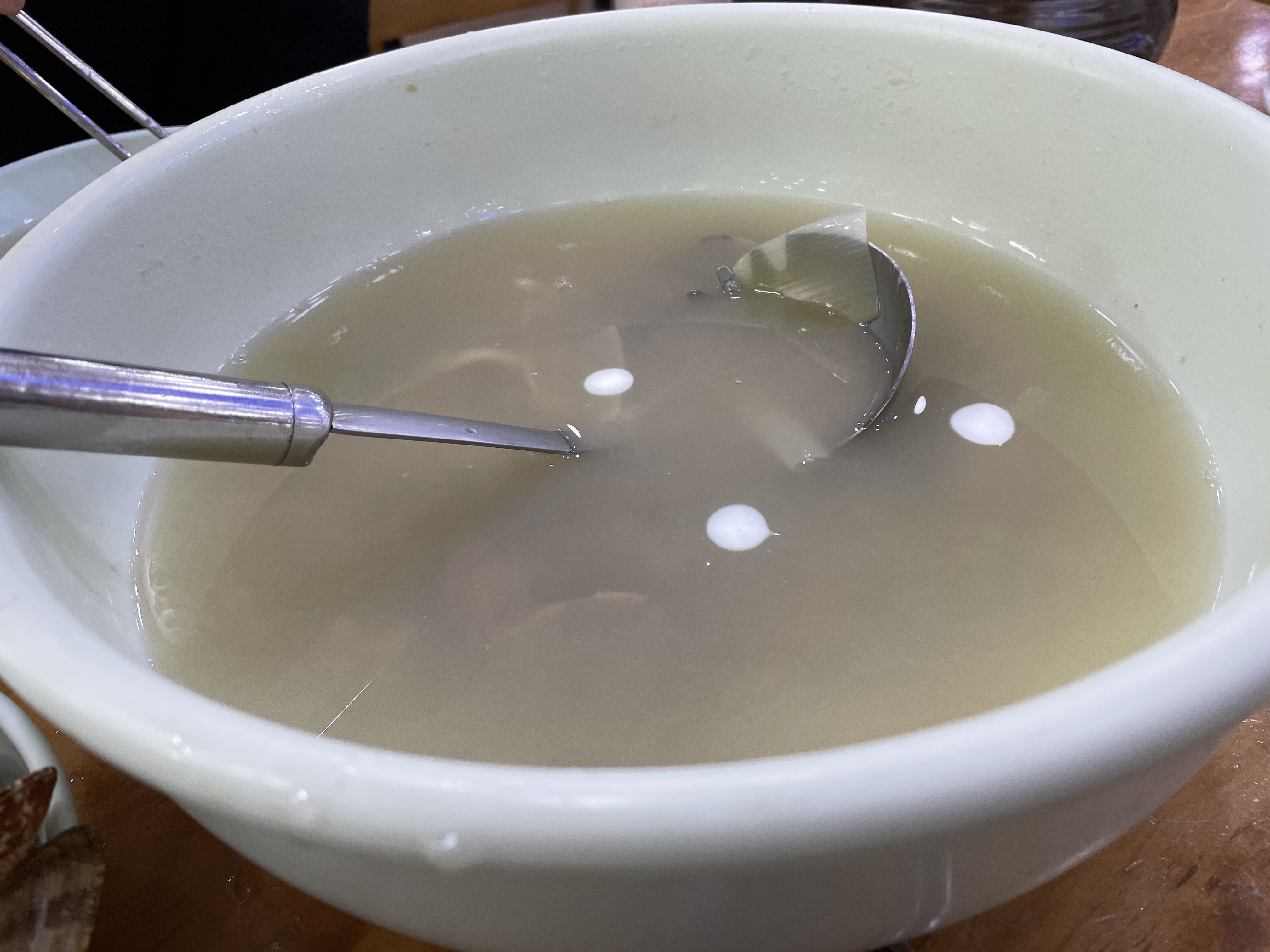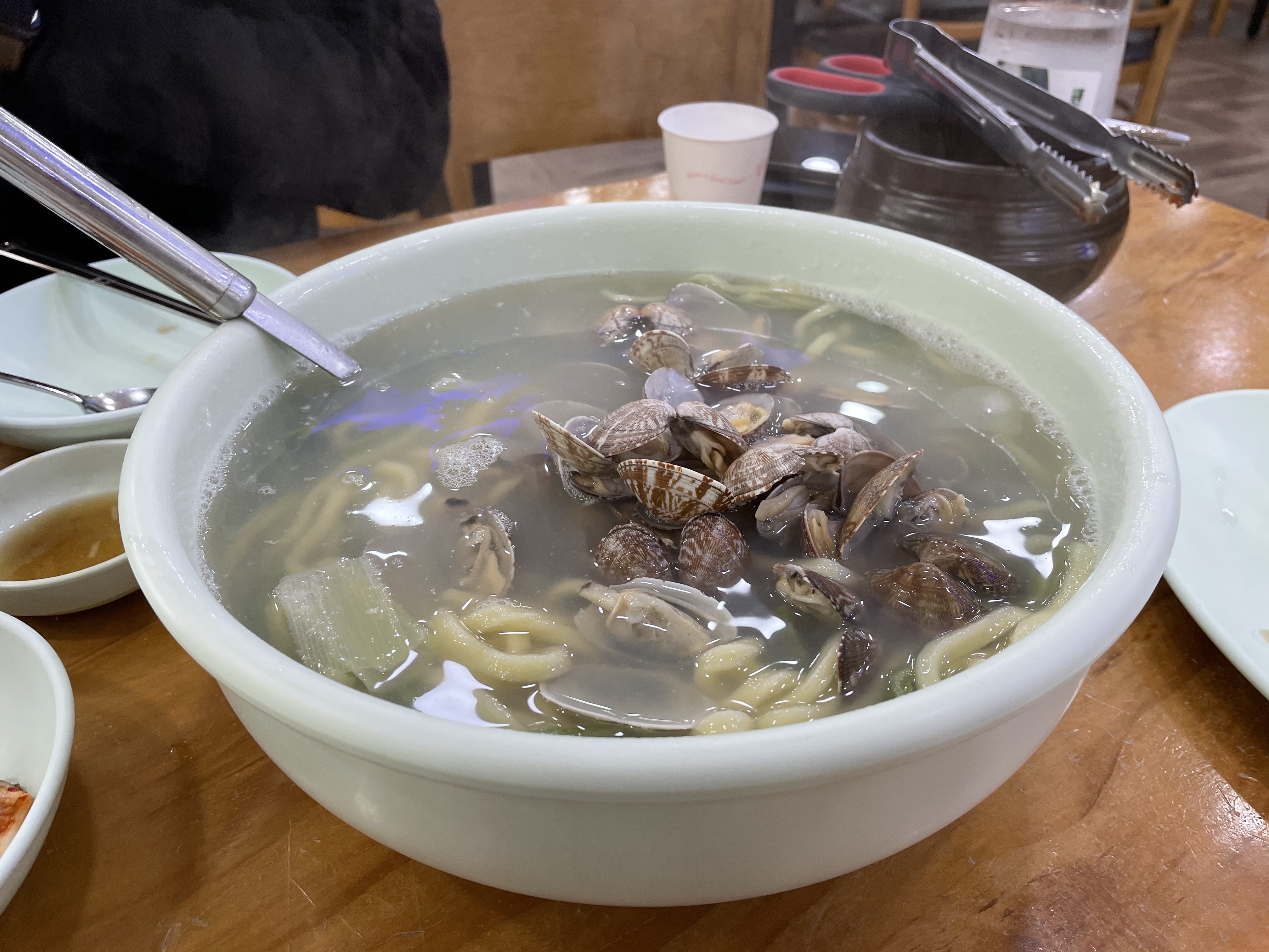 그래도 거의 다 건져서 먹었네요! 바지락이 해감이 잘 안된 건지 모래가 많이 씹혔고, 면에서 약간 밀가루 맛이 났던 게 아쉬웠어요. 직원분들도 그렇게 친절한 편은 아니었네요. 그래도 비 오는 날 칼국수가 생각나면 가볍게 갈 것 같아요.