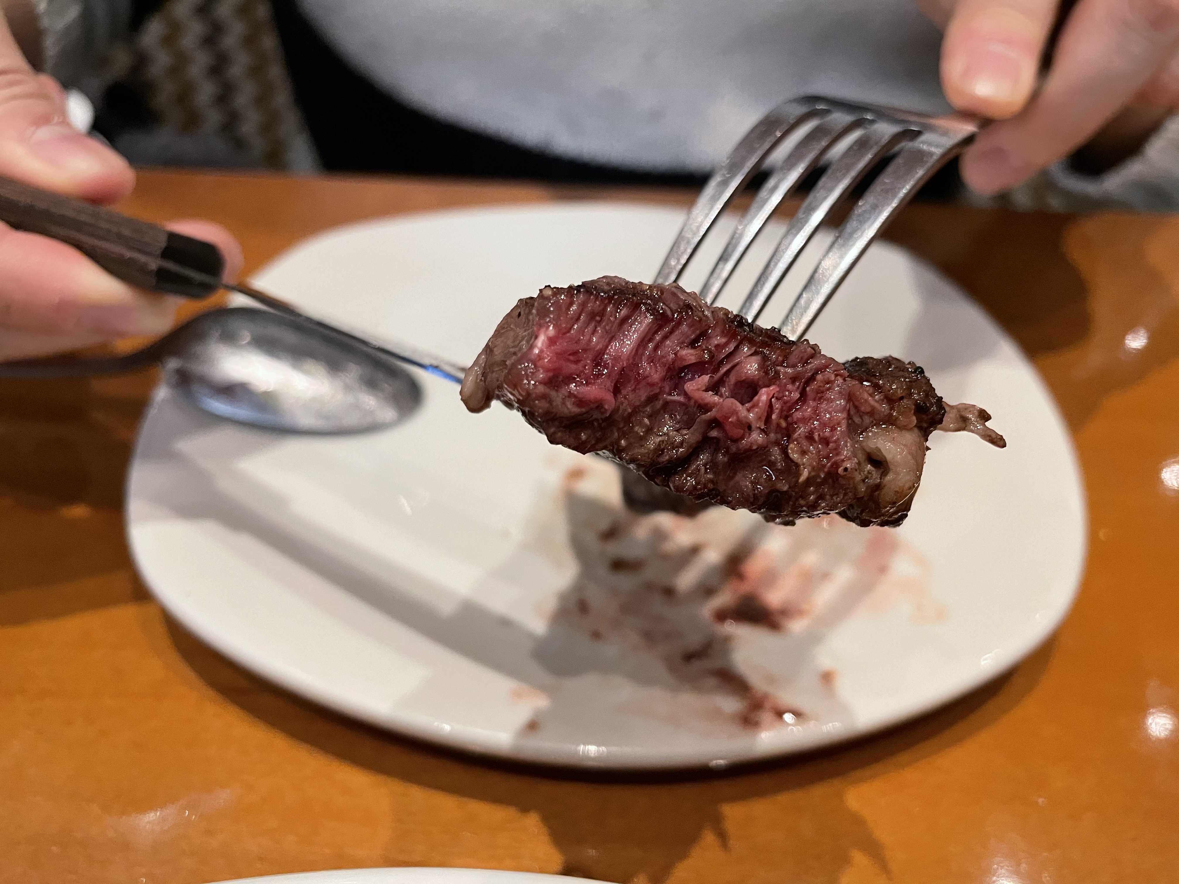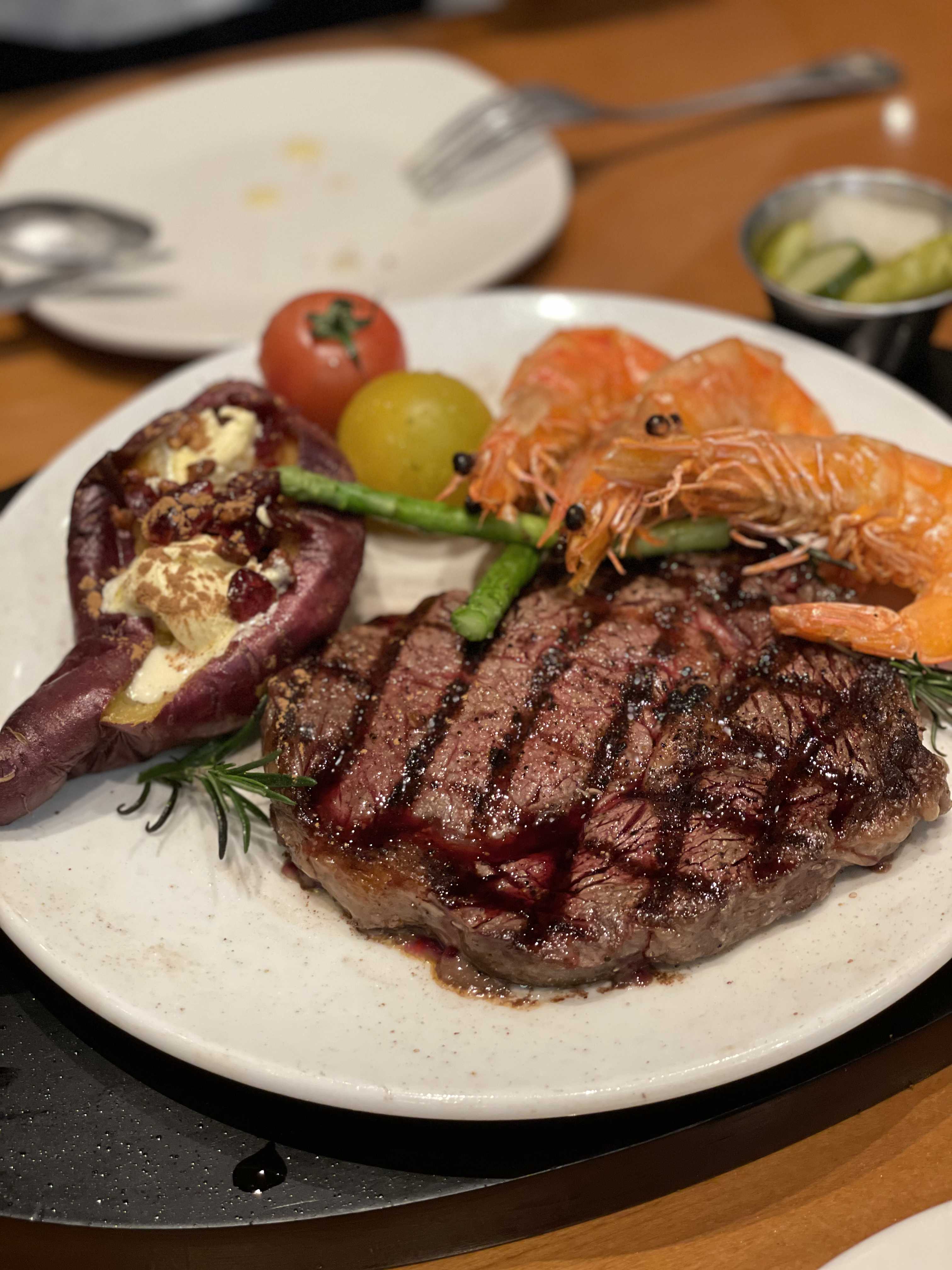 퀸즈랜드 립아이 스테이크는 두툼하고 부드러운 육질의 꽃등심이예요. 적당한 굽기로 나와 너무 맛있었어요.