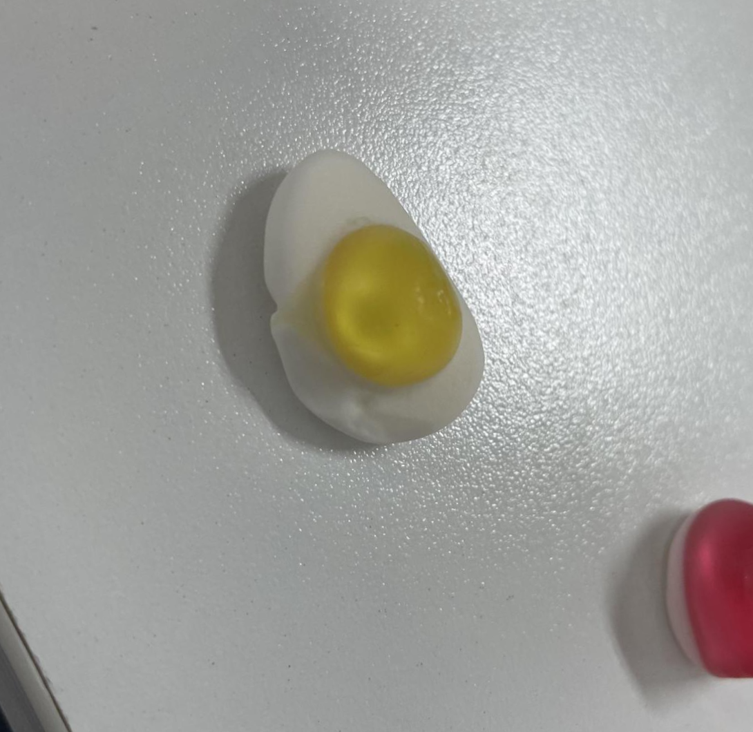 이 계란후라이 친구도 굉장히 말랑한 편인데요, 제가 젤리를 가끔 나눠주는 옆자리 분은 이 계란 프라이가 최애래요. 근데 저는 이 친구 맛이 굉장히 특이한 것 같아요. 다른 젤리들같이 상큼한 과일맛이 아닌 진짜.. 흰자 맛인가..? 하는 느낌? 하지만 기분 나쁜 맛은 아니에요.