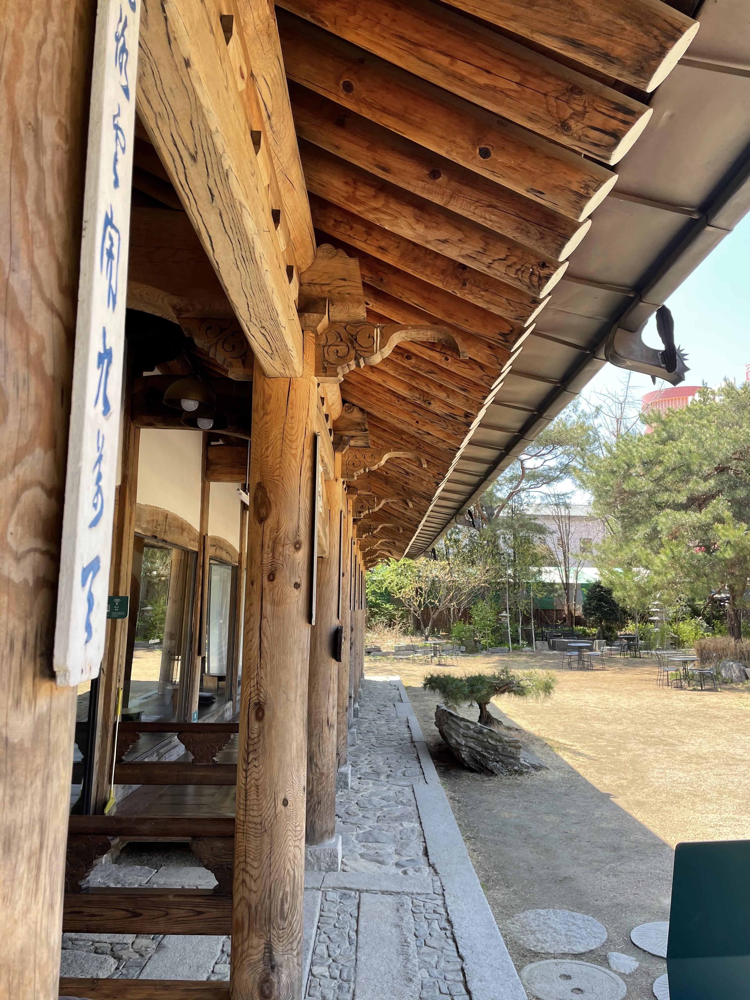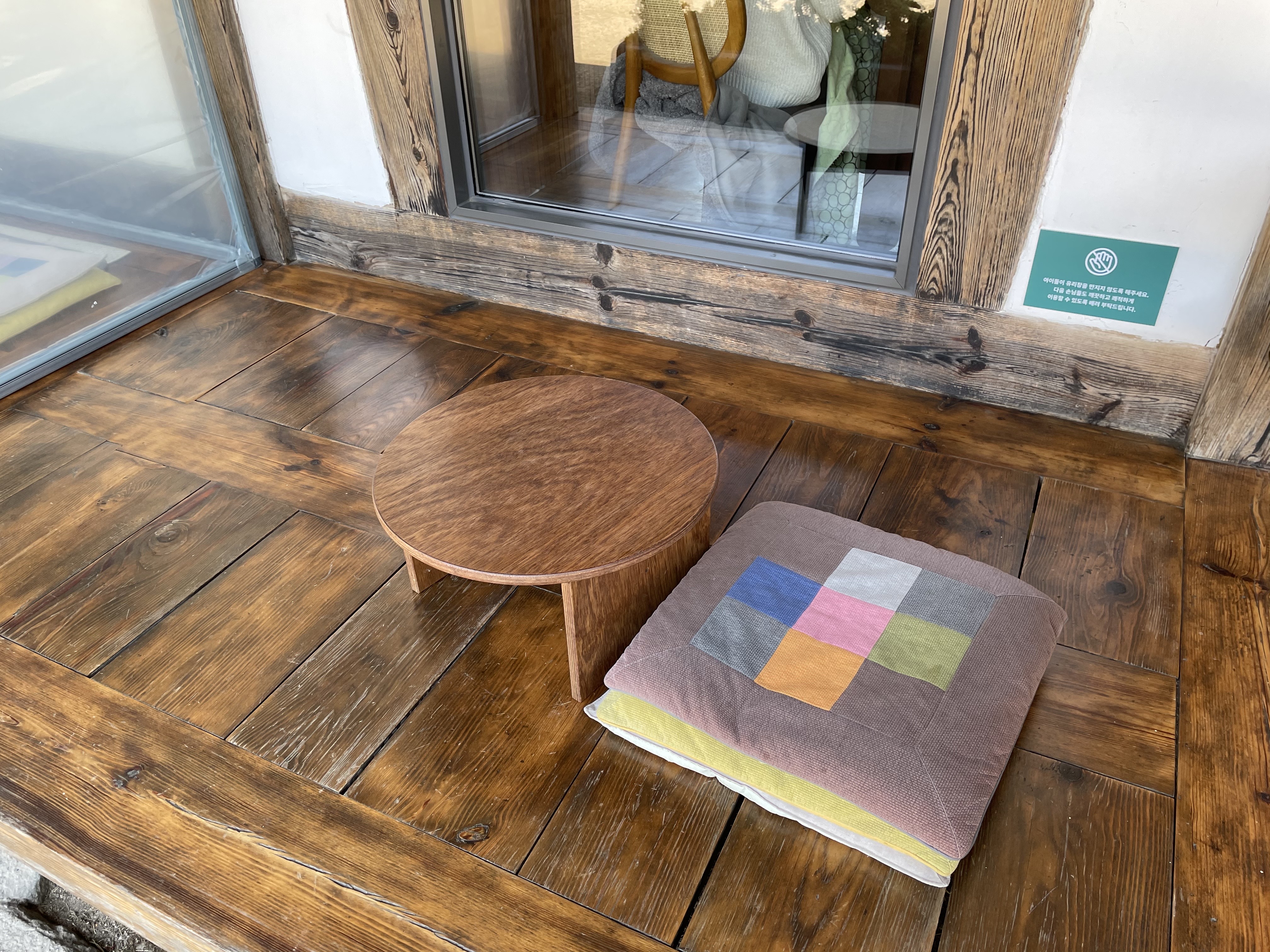 앞 쪽 한옥도 앉을 수 있어요! 다만 저는 이 깨끗한 온도를 느끼고 싶어서 탁 트인 툇마루에 앉았을 뿐이에요.
