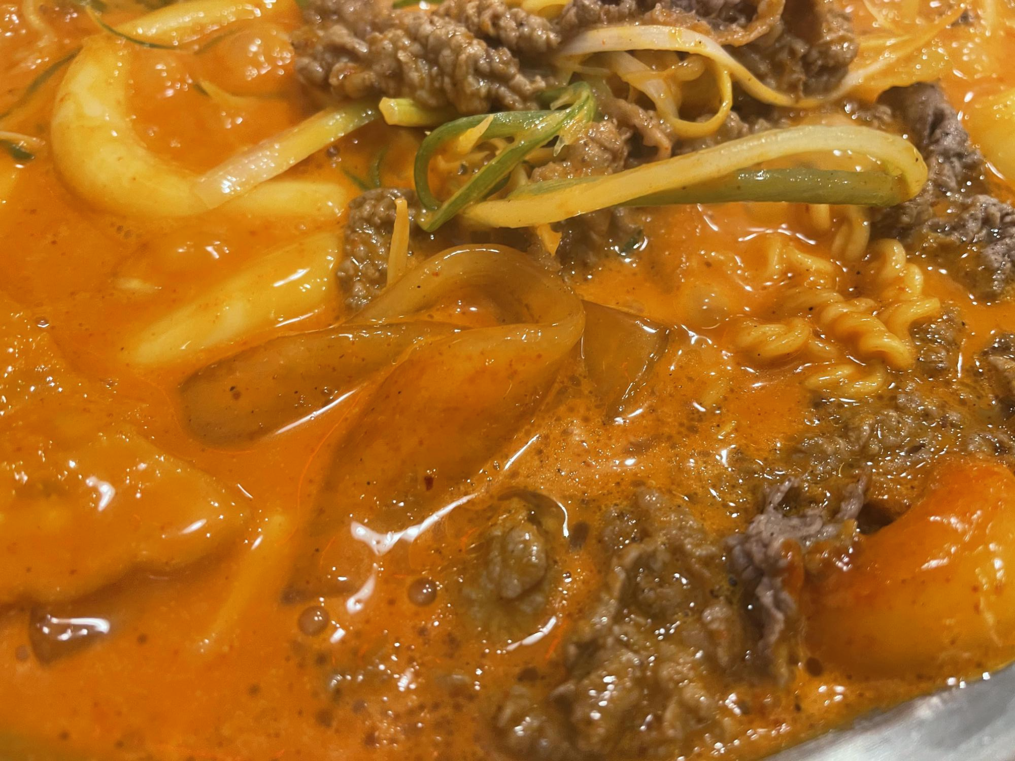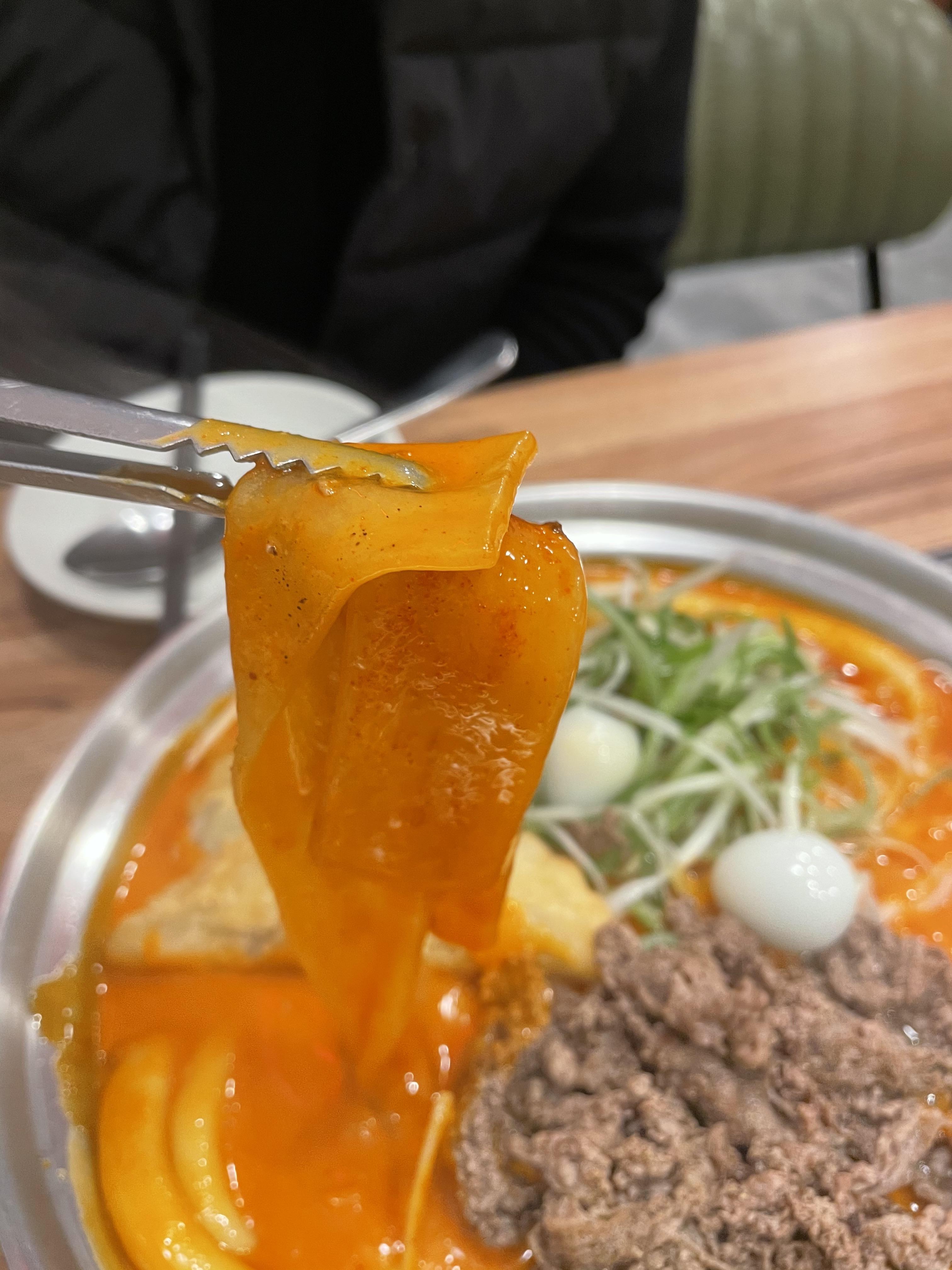 저는 로제떡볶이를 먹을 때 꼭 중국당면을 추가합니다. 소스 묻는 면적이 넓어 맛있게 먹을 수 있어서 인 것 같아요.