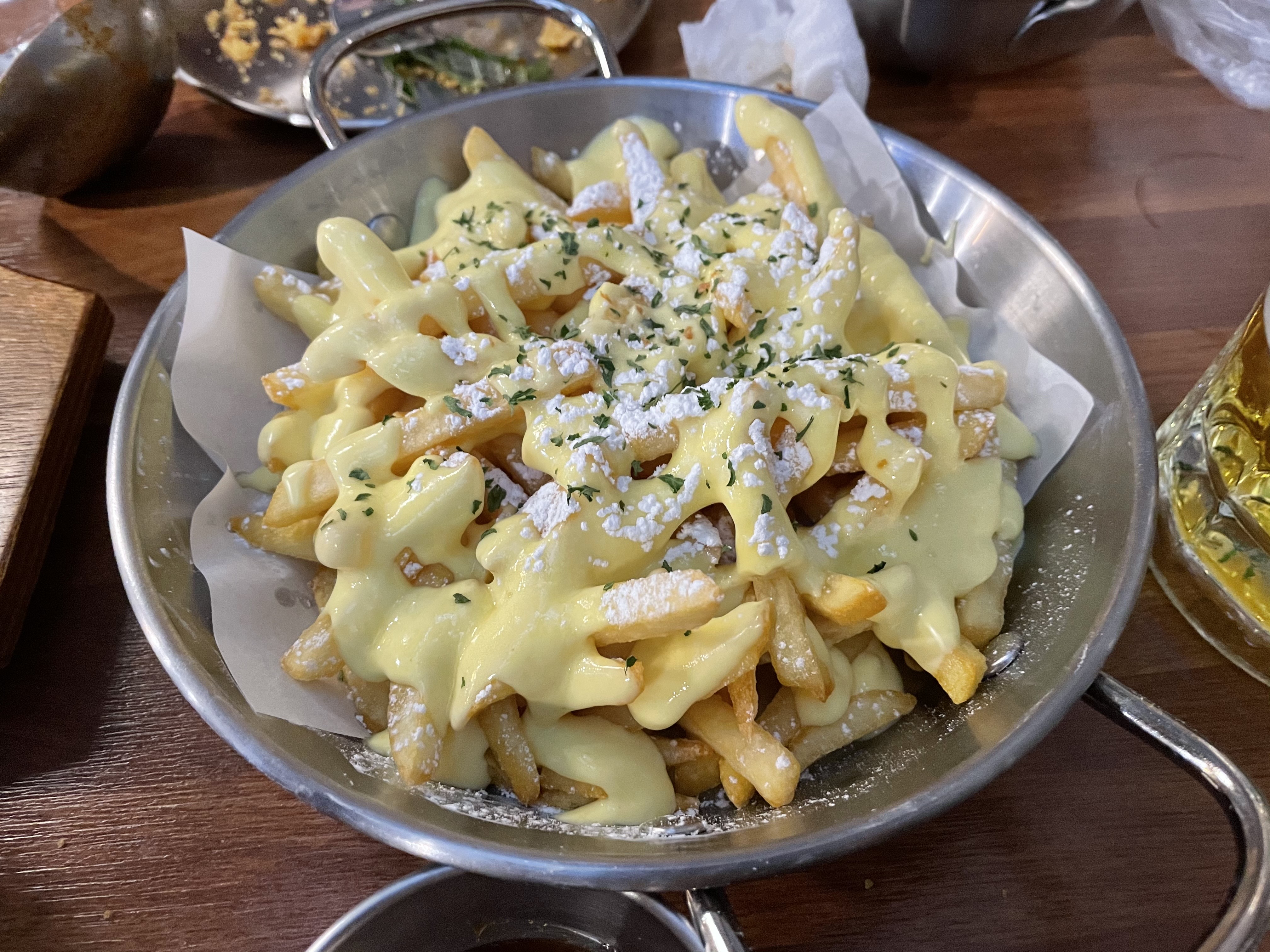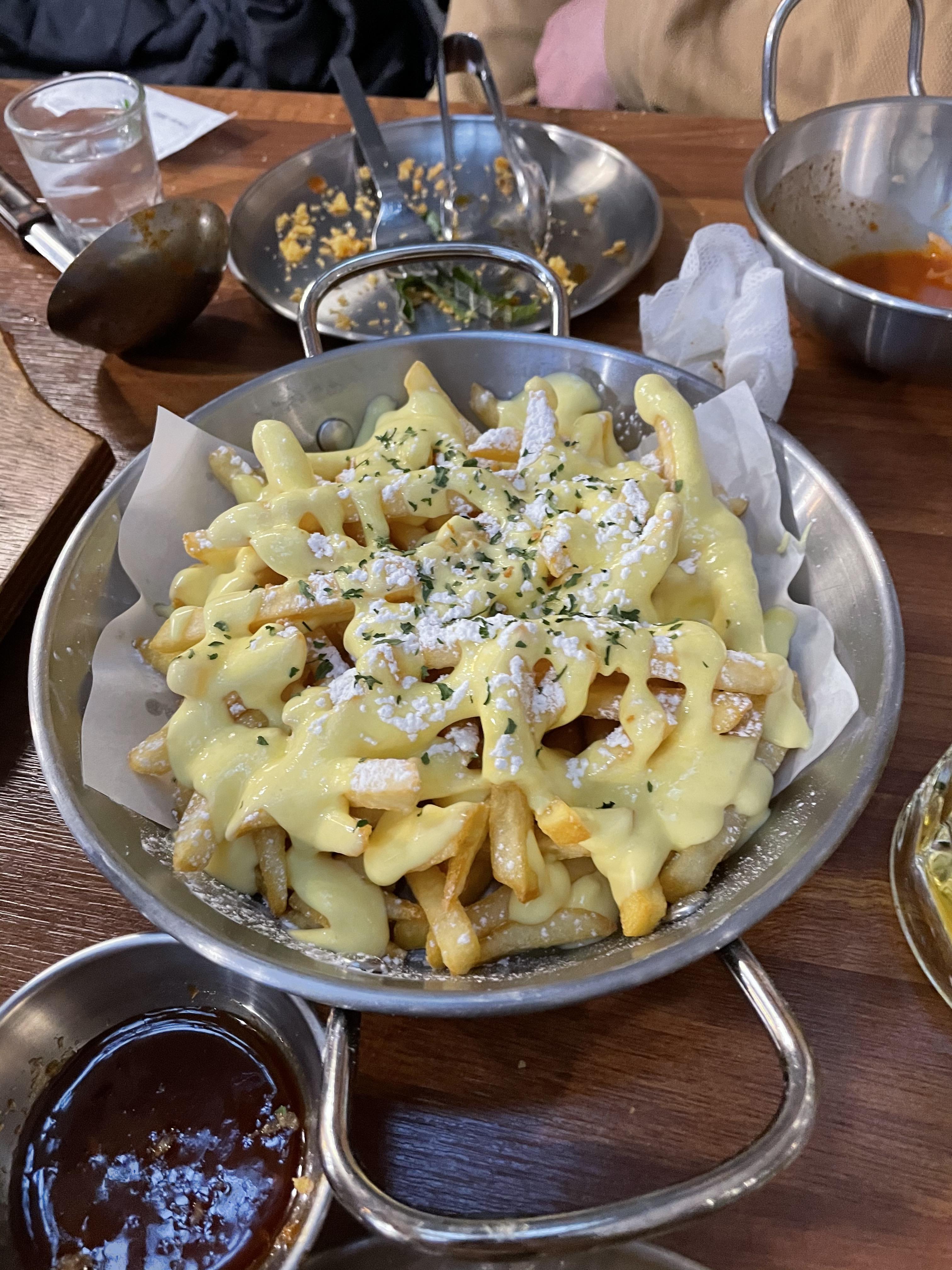 그 다음은, 신메뉴라고 소개해주셔서 주문해본 버터갈릭감자예요! 청년다방의 그것이 생각나긴 하지만 이 친구는 청년다방의 버터갈릭감자와는 전혀 다른 맛이더라구요. 단맛보다는 갈릭향이 강해서, 느끼한 튀김을 먹을 때 딱 잘 어울리게 세팅해두신 것 같았어요!