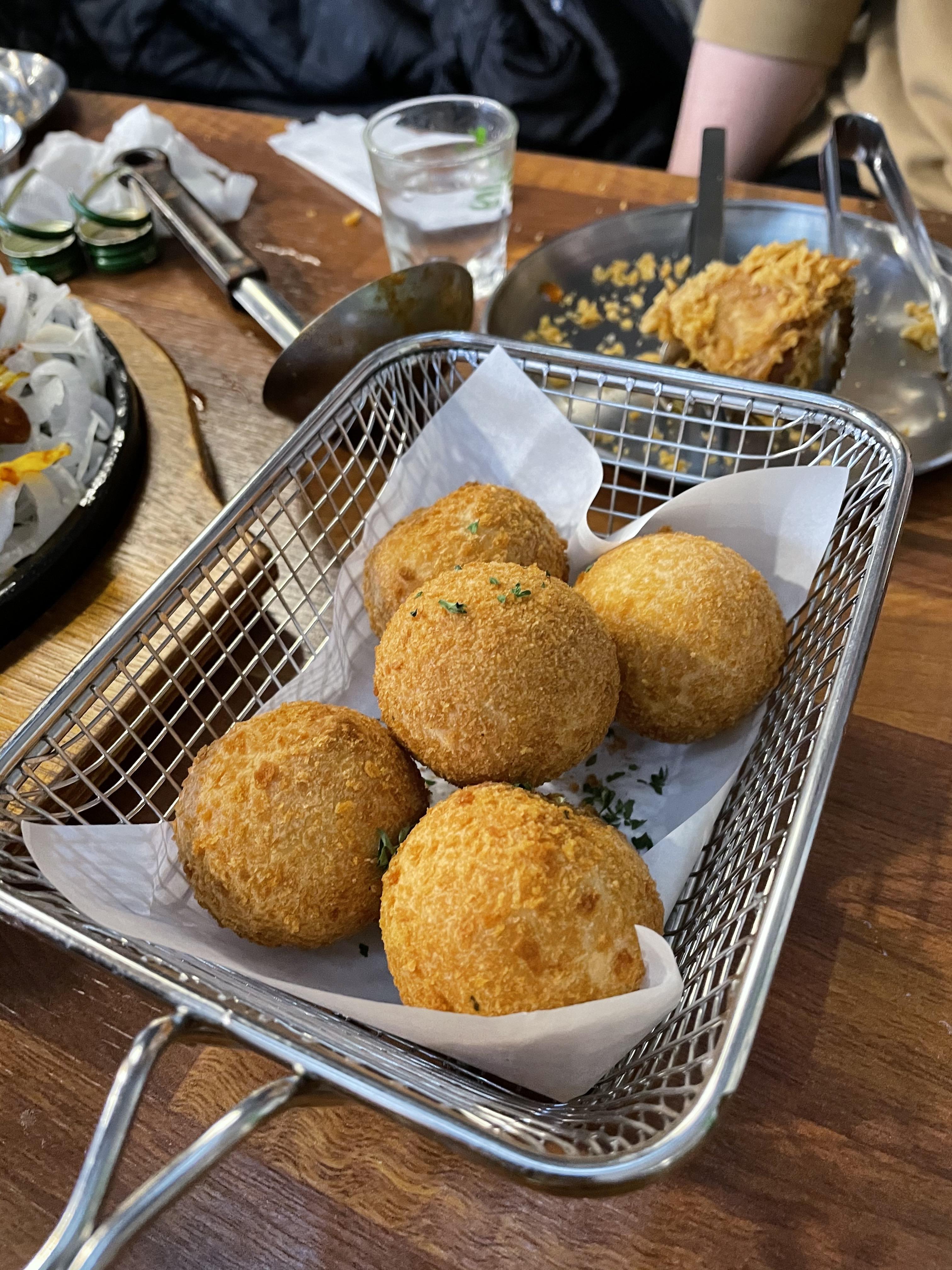 그다음은, 저의 최애 메뉴 중 하나인 치즈볼입니다. 요즘 치킨집들에서 치즈볼을 많이 팔아서 이곳저곳에서 맛보고 있는데, 이 집 치즈볼은 또 특색이 있더라구요. 약간 달달하면서도 부드러운 맛이에요. 약간 분유맛도 나는 것 같은? 피자맛과 일반맛이 있는데 저는 일반맛을 더 좋아해요!