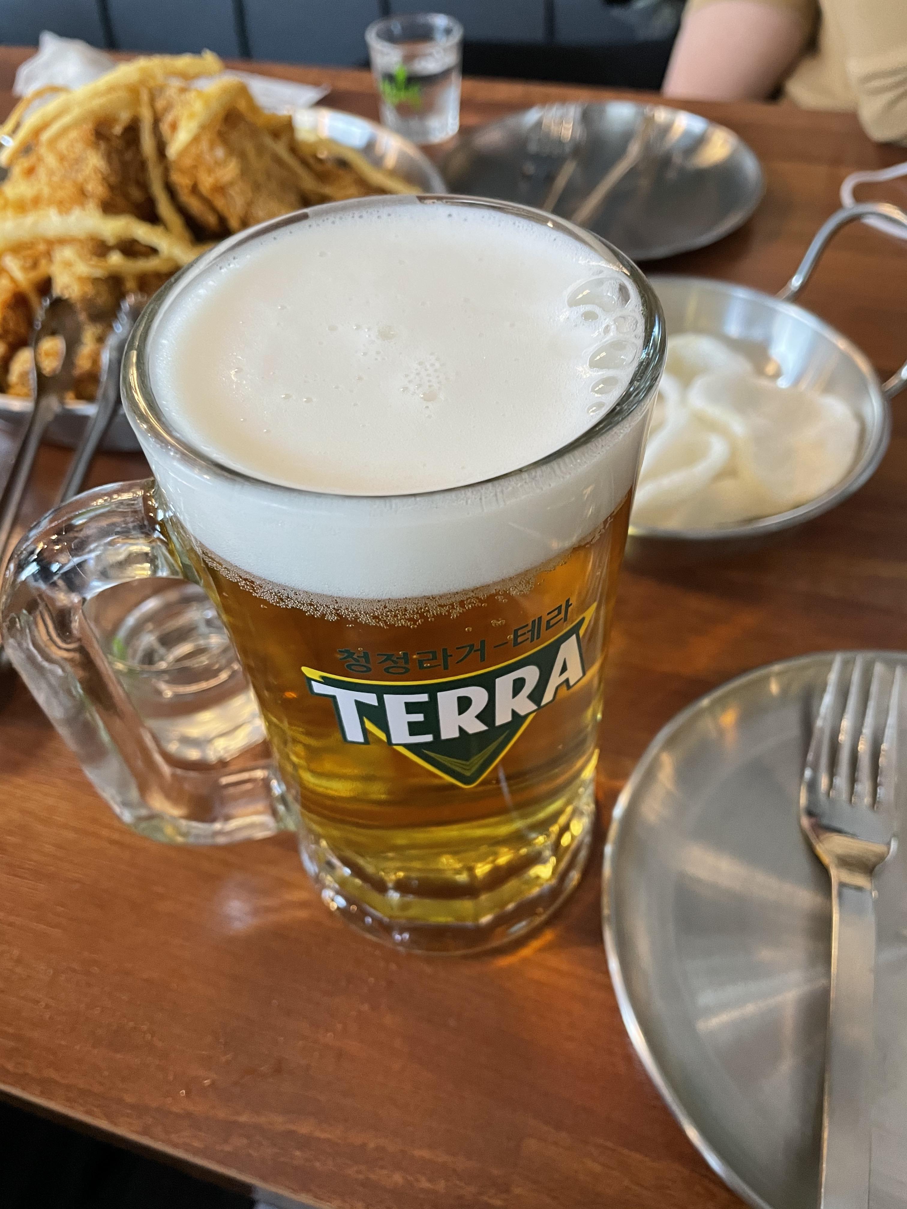저의 생맥주입니다. 맥주는 딱 첫맛이 제일 시원하고 맛있는 것 같아요!