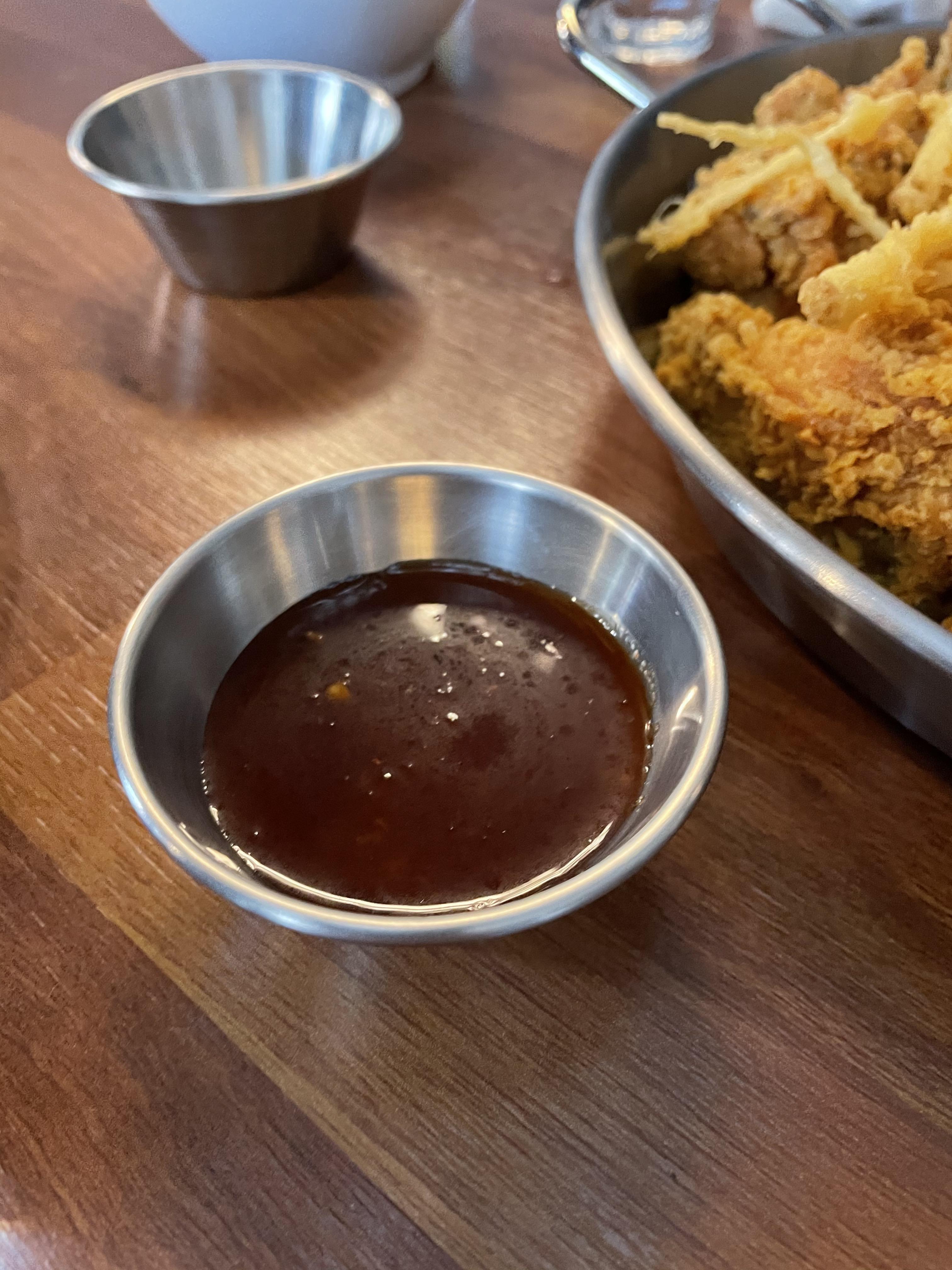 양념소스를 추가해서 후라이드를 찍어 먹었어요, 인삼튀김을 양념소스에 찍어먹어도 맛있더라구요.