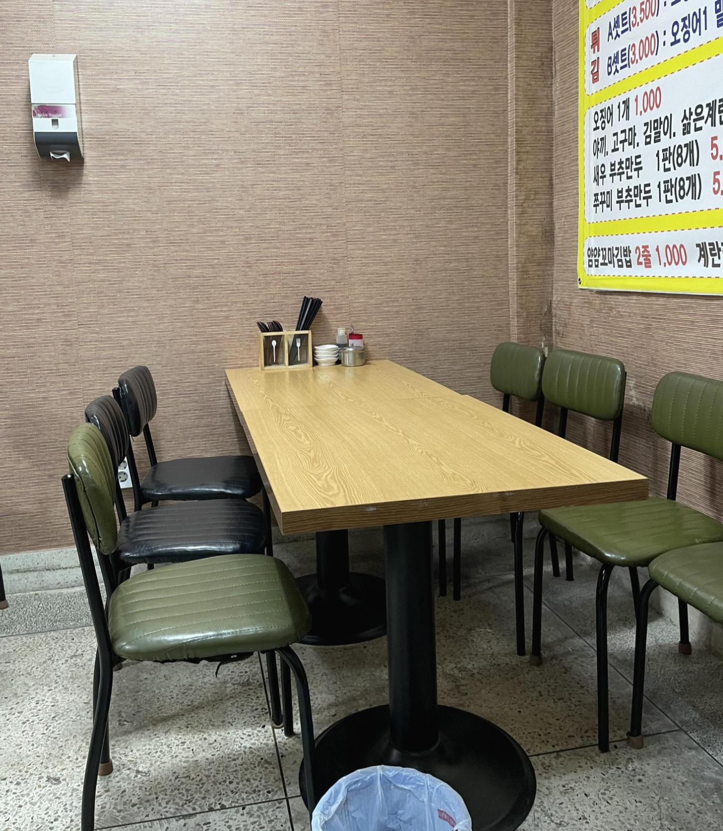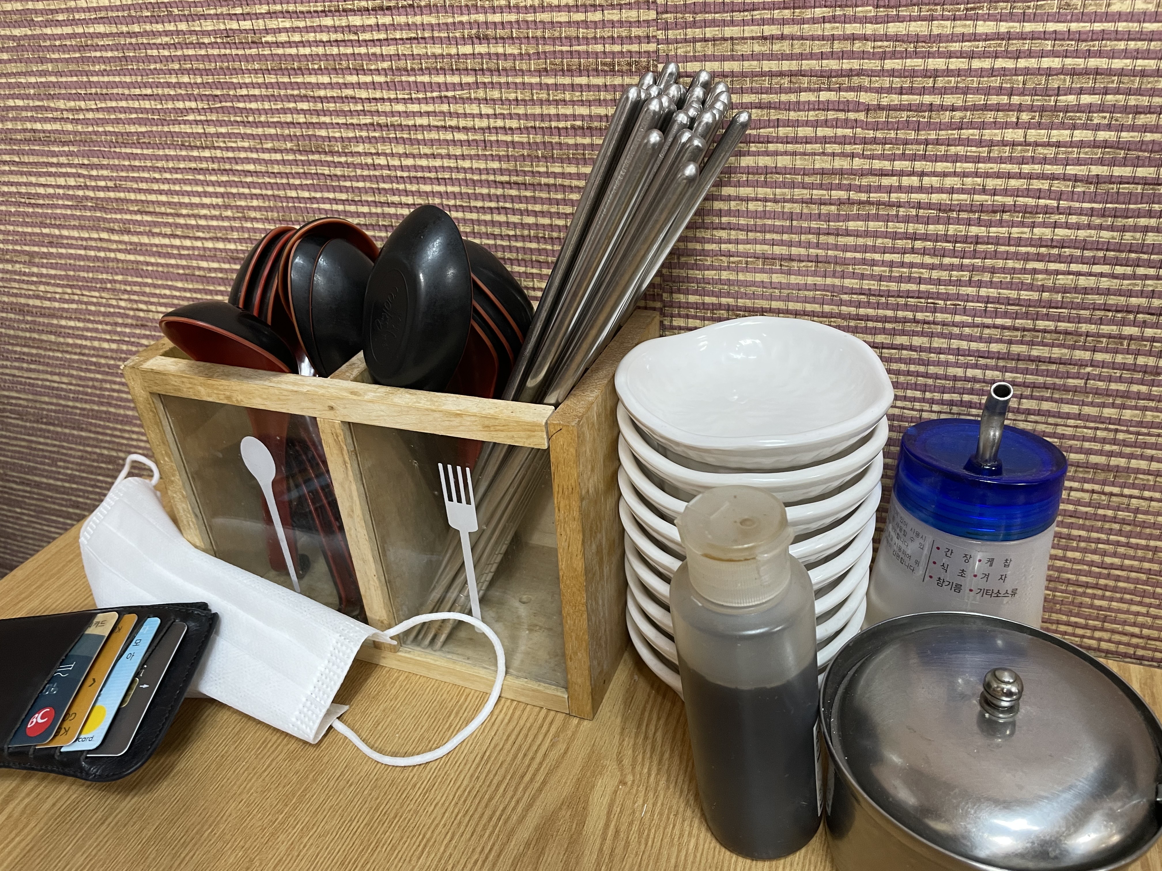 매장 기본 세팅이고, 물과 어묵 국물은 셀프로 떠다 드시면 됩니다.