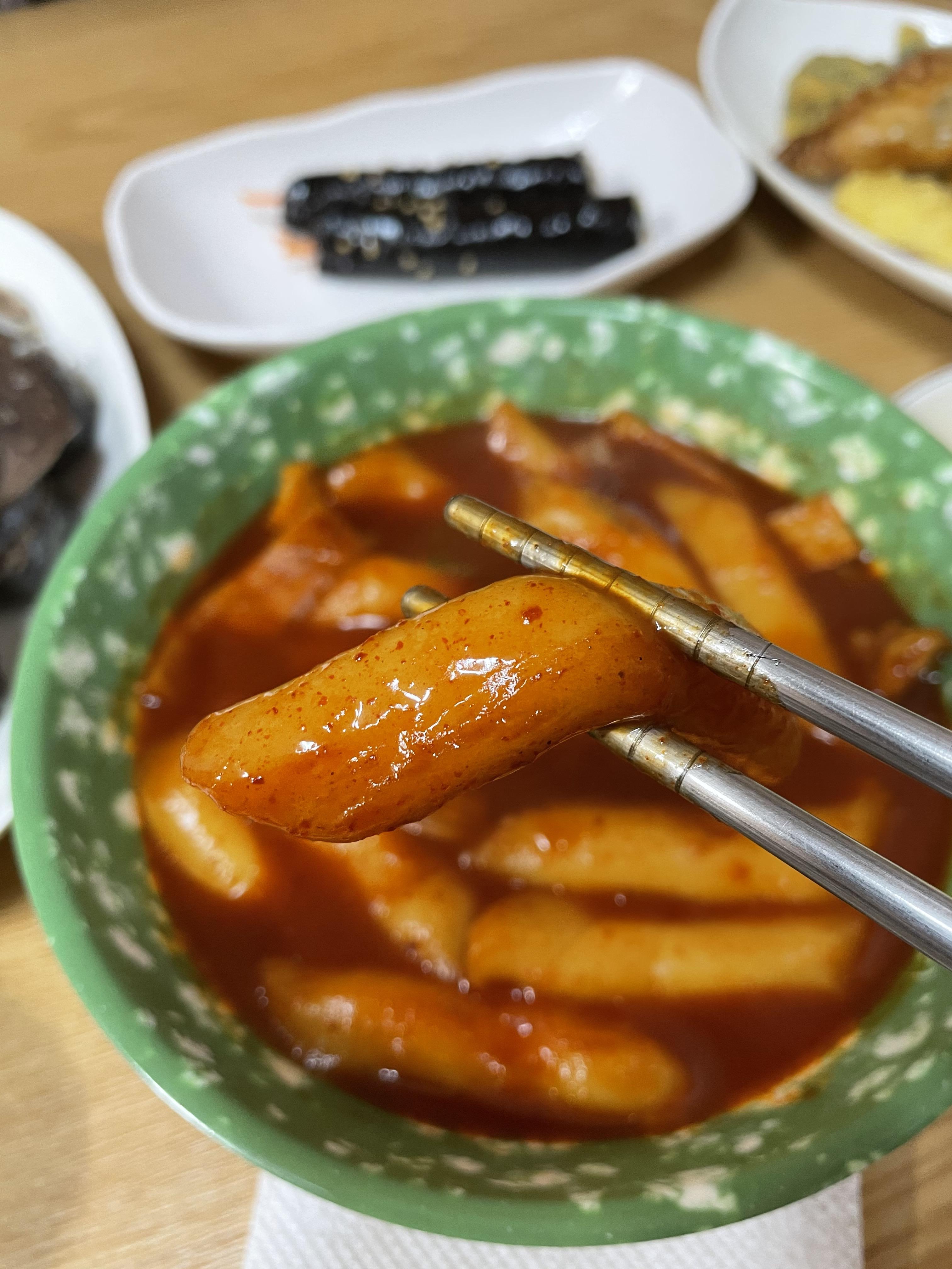 이 집 떡볶이는 부드러운 밀떡이었어요. 탱탱한 떡은 아니었지만, 약간 불어서 부드러워진 듯한 느낌의 떡이 주는 매력이 있죠. 경이네 떡볶이는 그런 느낌이었어요.