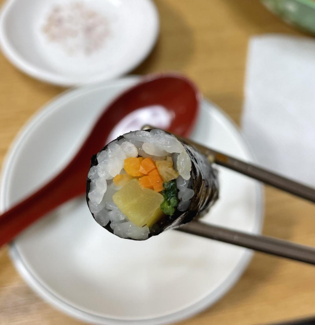 얌얌꼬마김밥은 특별한 맛은 아니었어요. 단무지, 당근, 시금치가 간단하게 들어간 꼬마김밥이었어요.