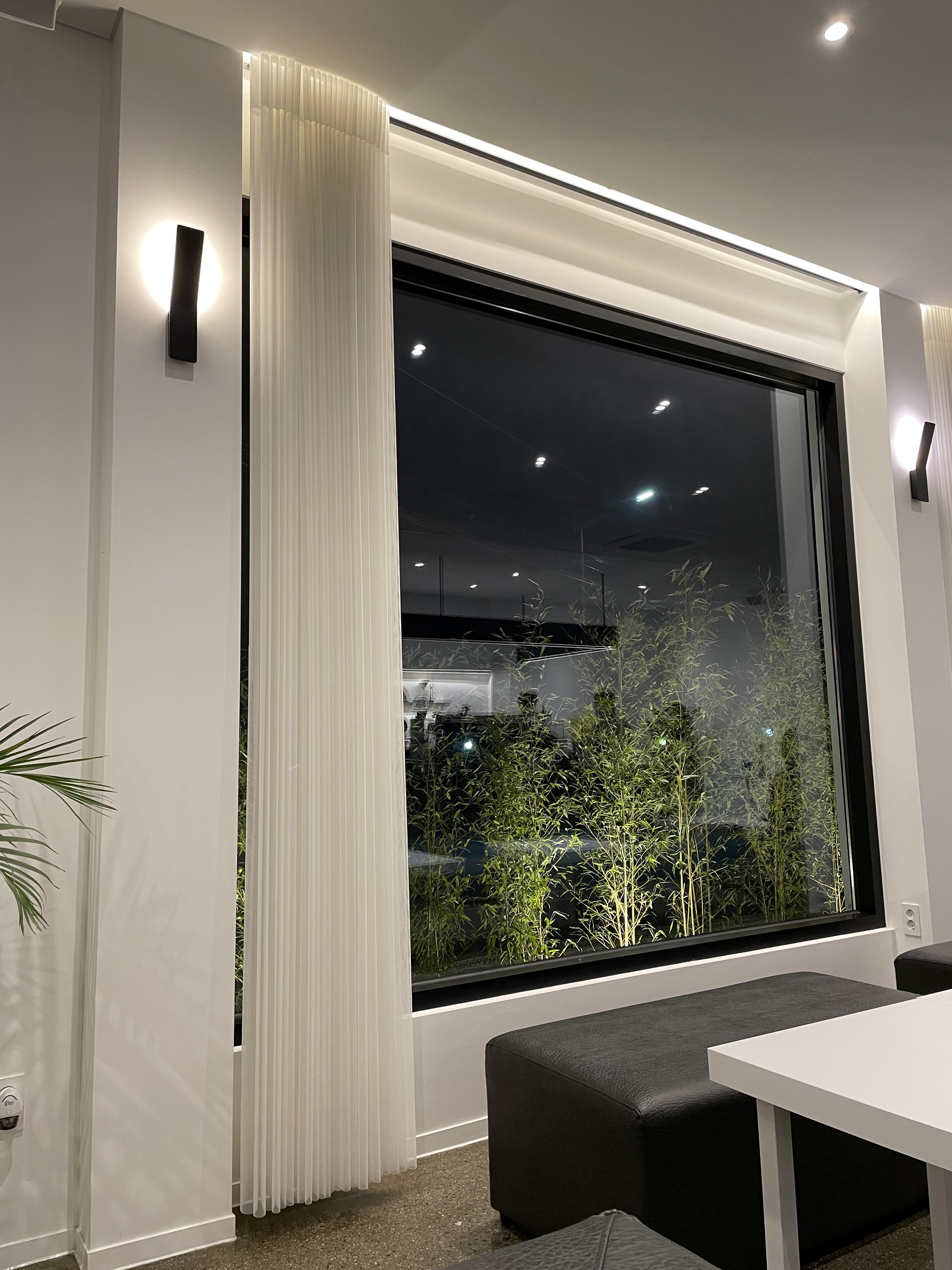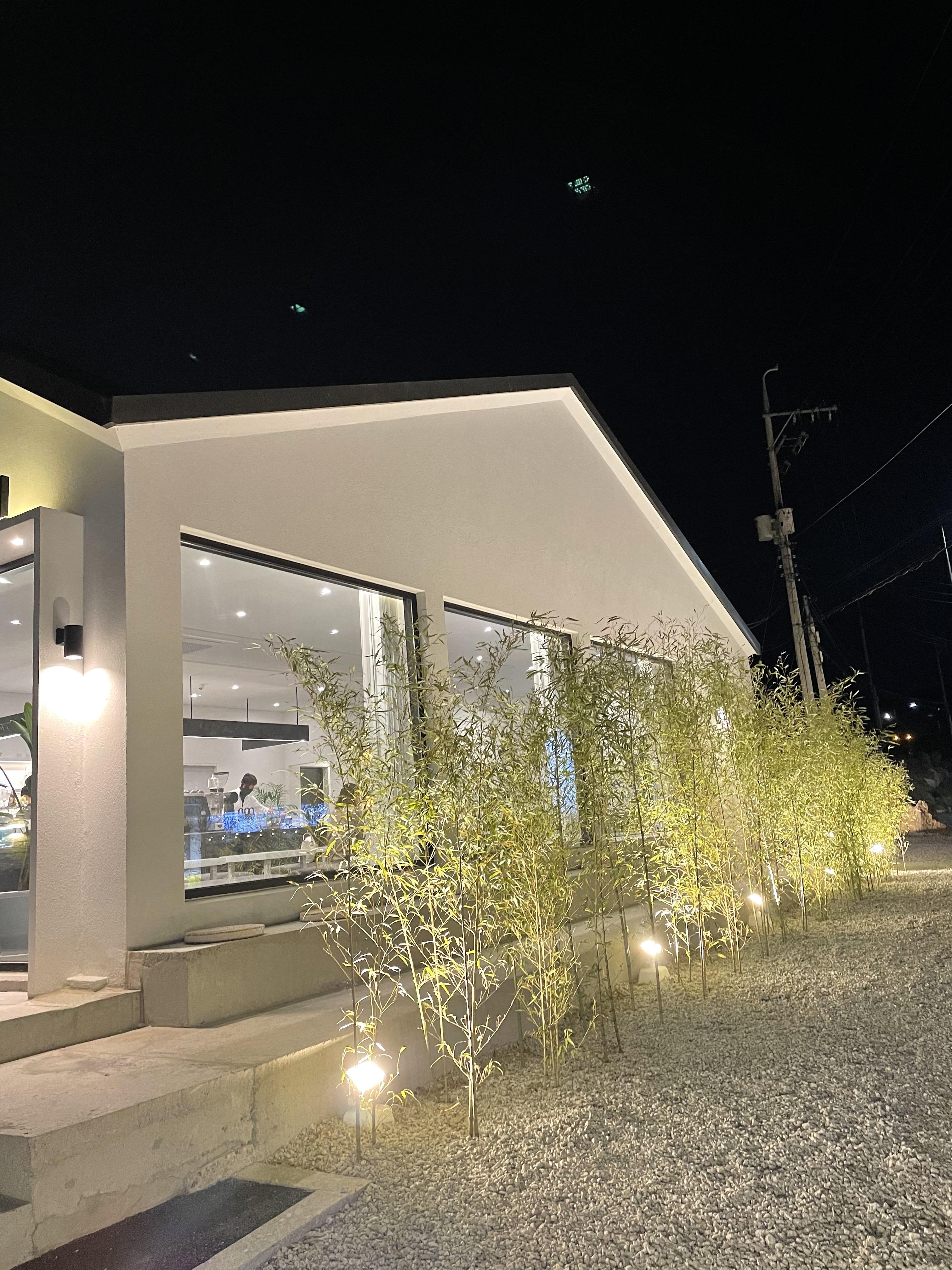 카페는 전면에 커다란 창이 있어서 밖을 볼 수 있지만, 대나무인가요? 가느다란 나무들이 심어져 있어, 외부의 시선을 어느 정도 차단해주는 느낌이 있어요.