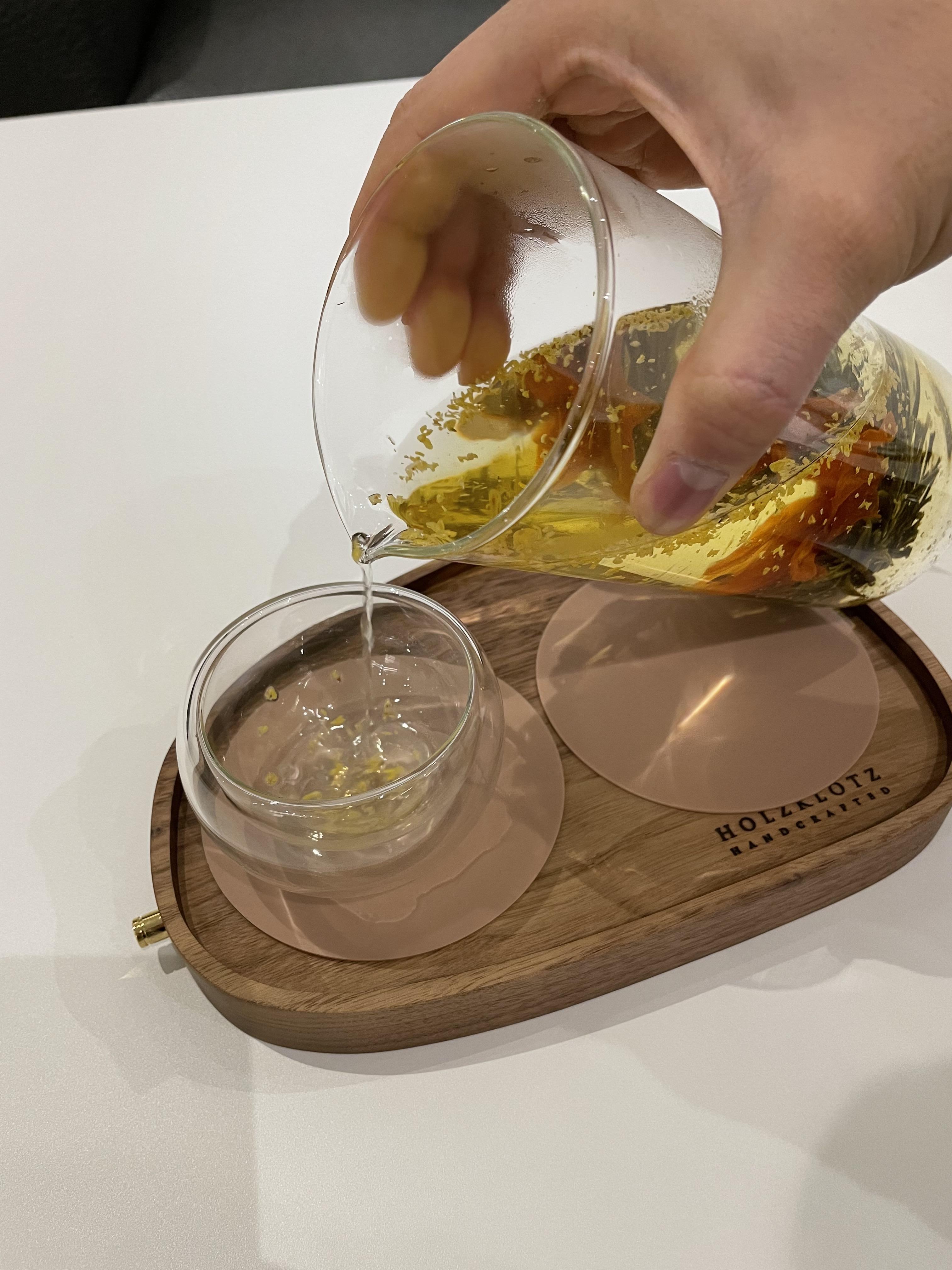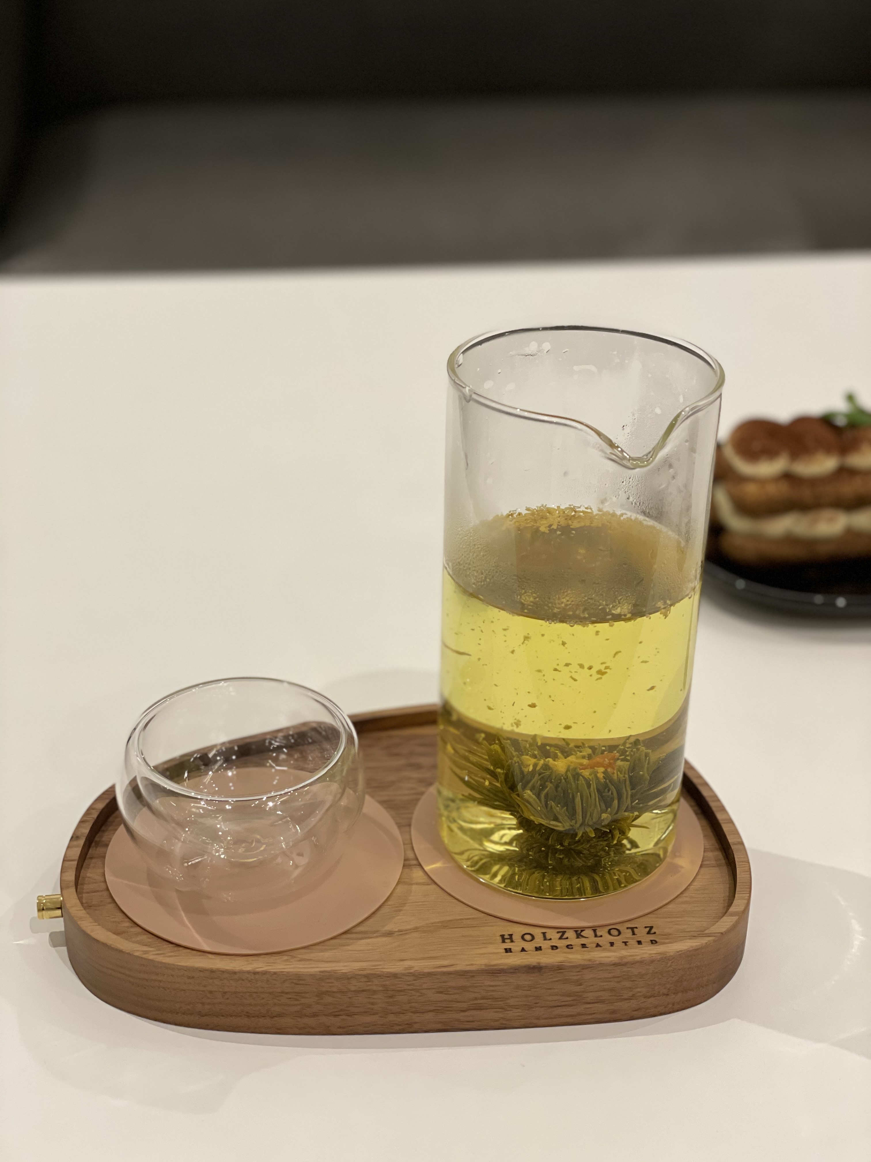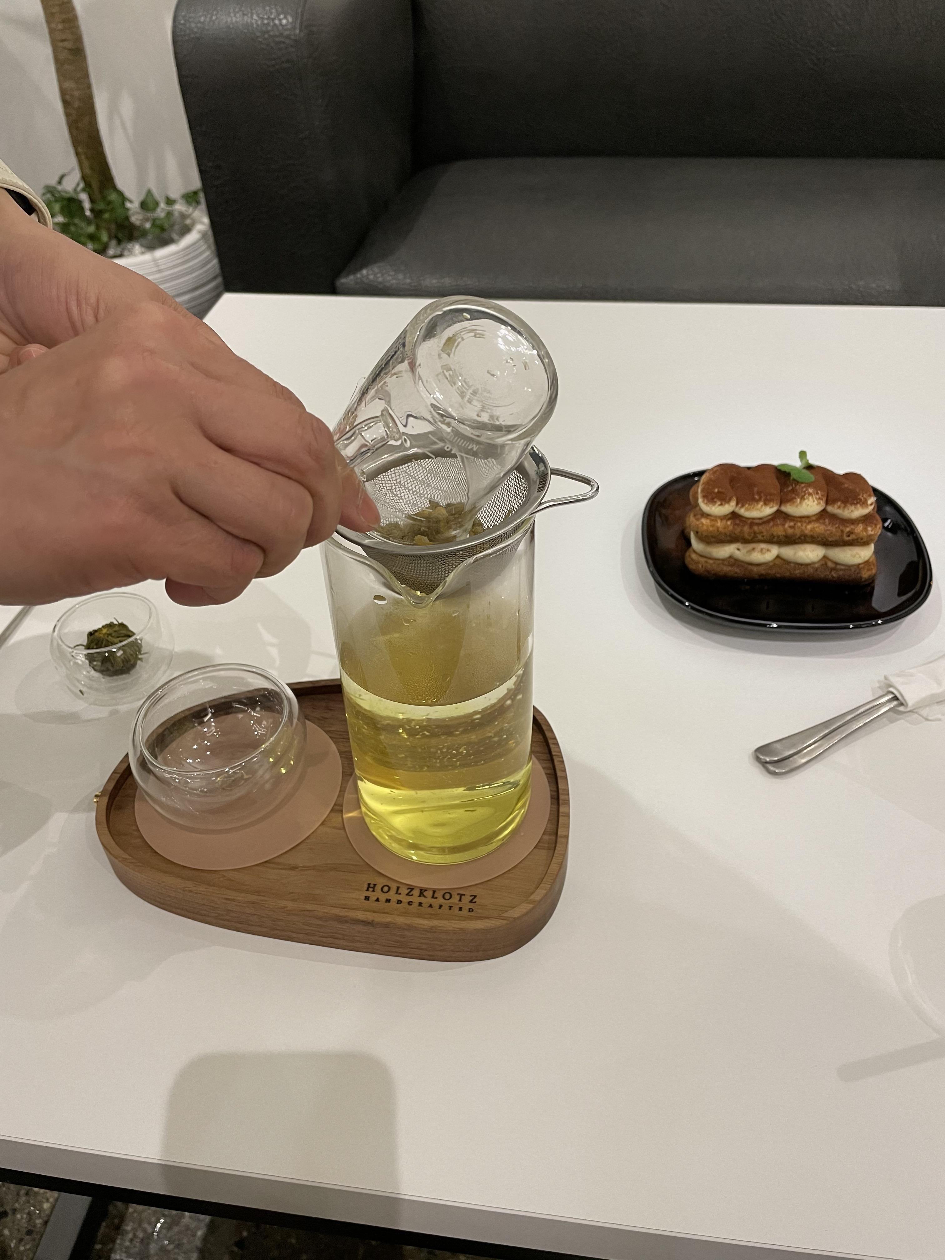카모마일 블루밍티가 좀 특별한데, 처음에 따뜻한 물만 담은 상태로 나와서, 직원분께서 직접 카모마일을 체에 걸러 우려 주시고