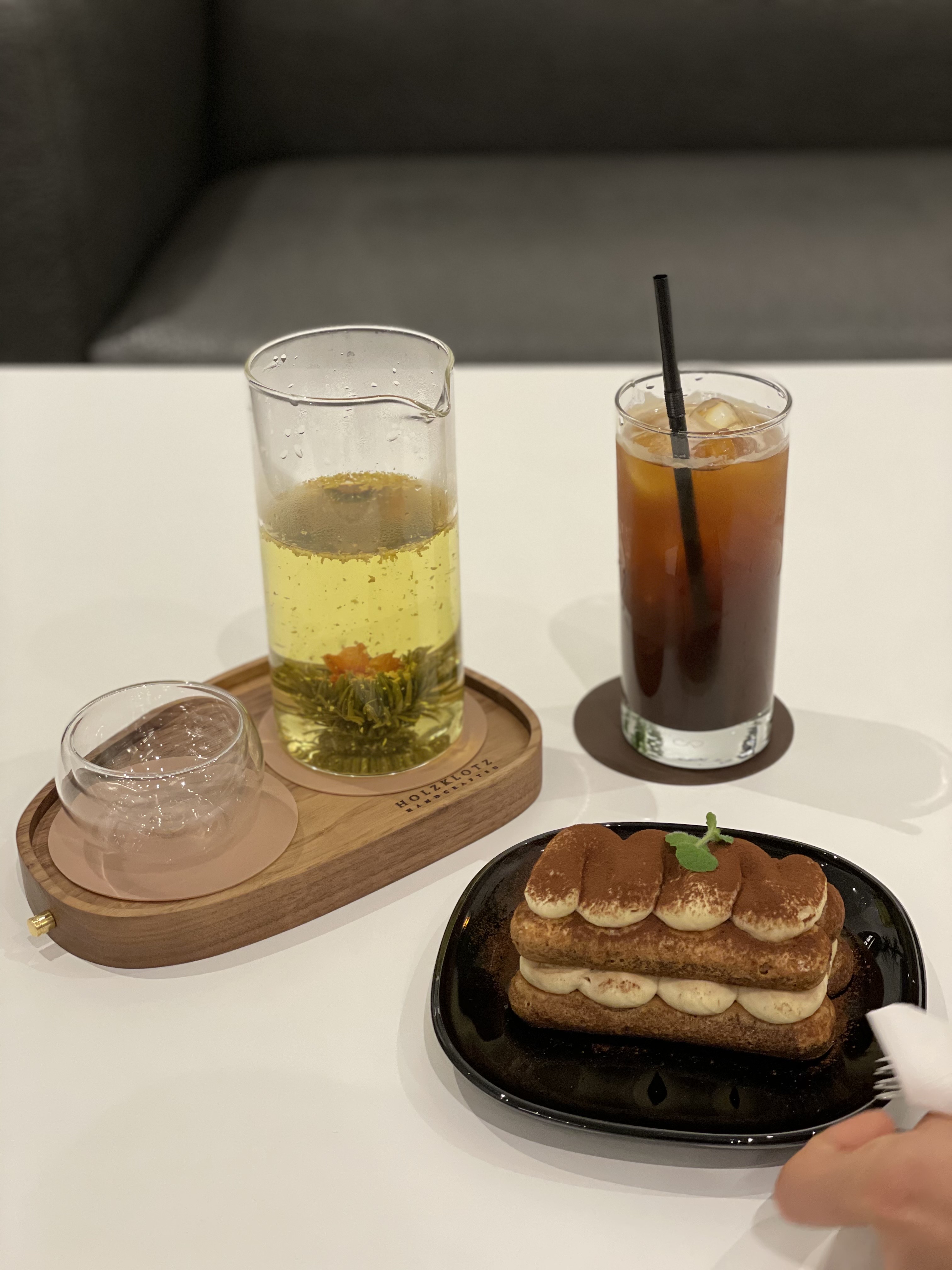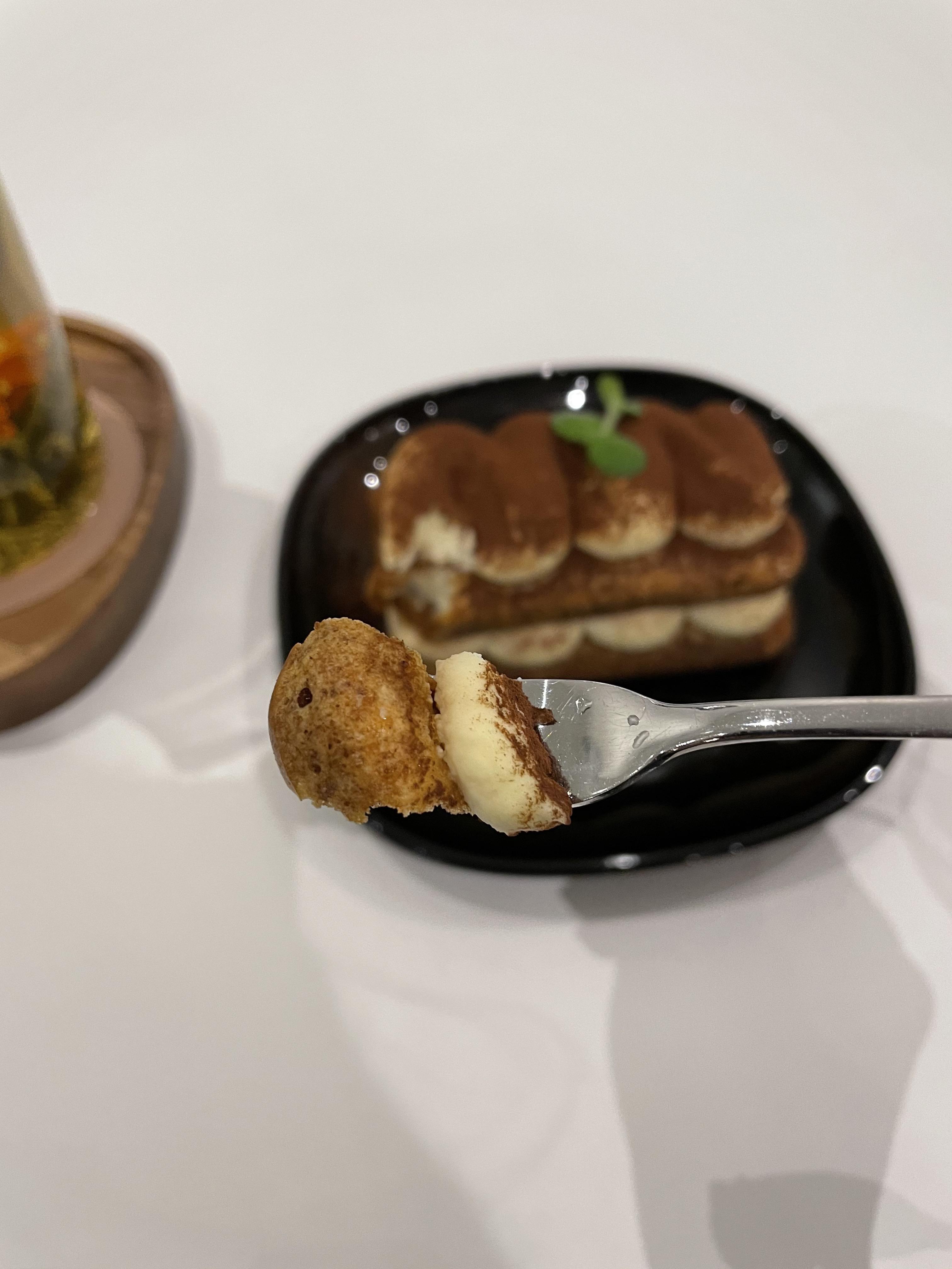 티라미수는 평범한 티라미수와 약간 달랐는데, 크림과 빵이 겹겹히 샌드된 형태였어요. 저희는 맛있게 먹었어요. 적당히 부드럽고 괜찮더라구요. 너무 초코맛이 강하거나, 너무 커피향이 강하지도 않은 적절한 맛이었어요.