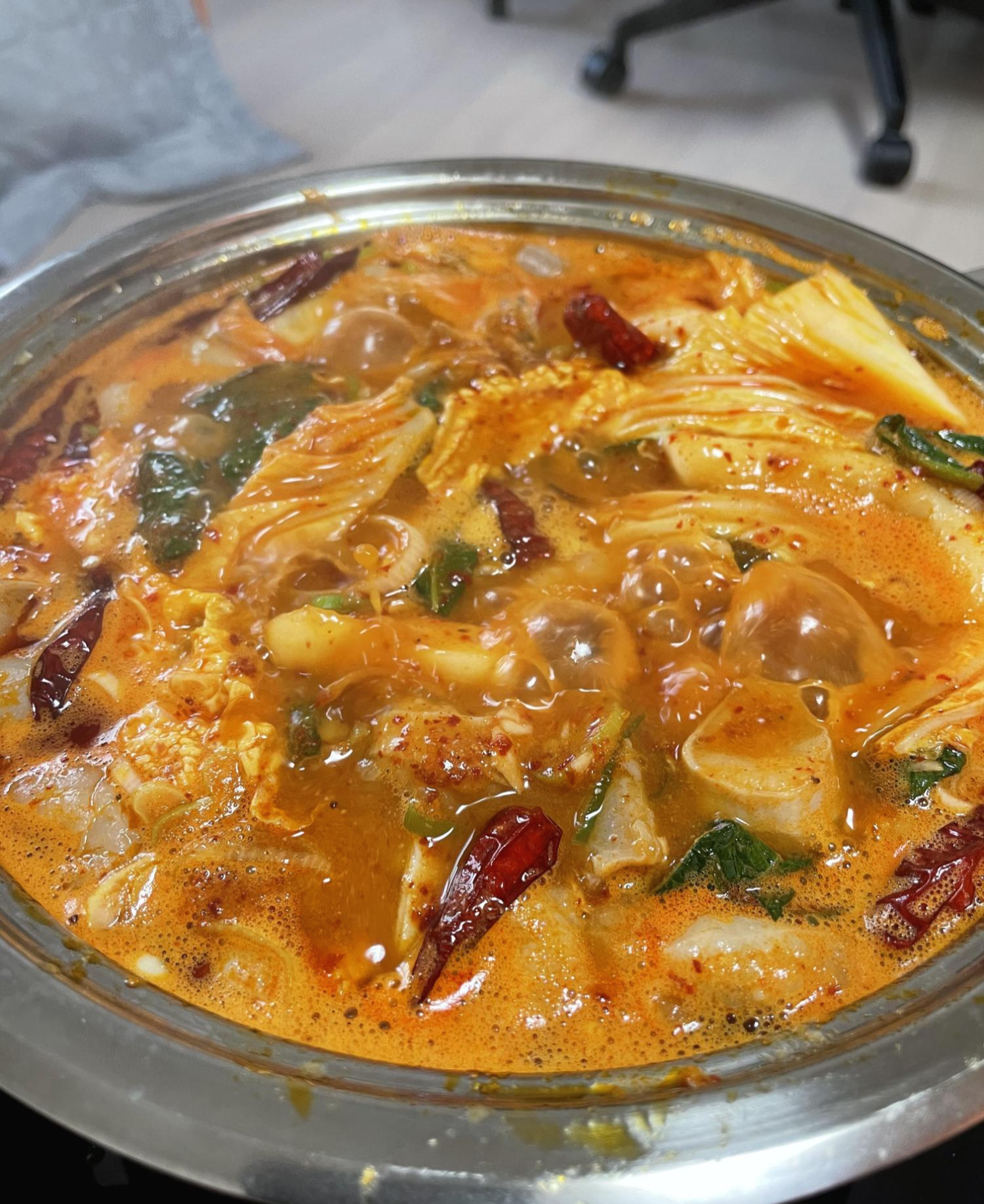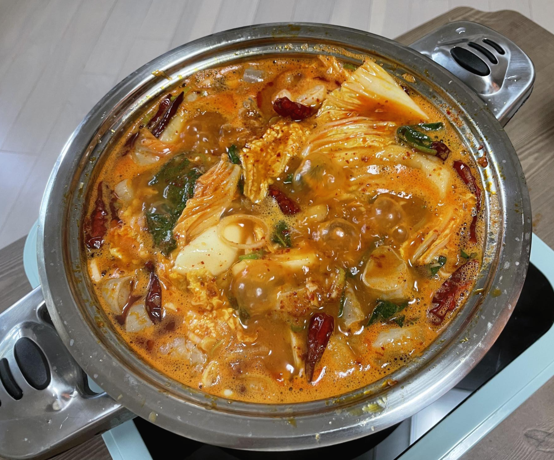 떡볶이 떡이 들어가 있었고, 바닥에 닭이 깔려있었어요. 일단 먹기 위해 비슷한 크기의 냄비를 찾아 옮겨봤어요.