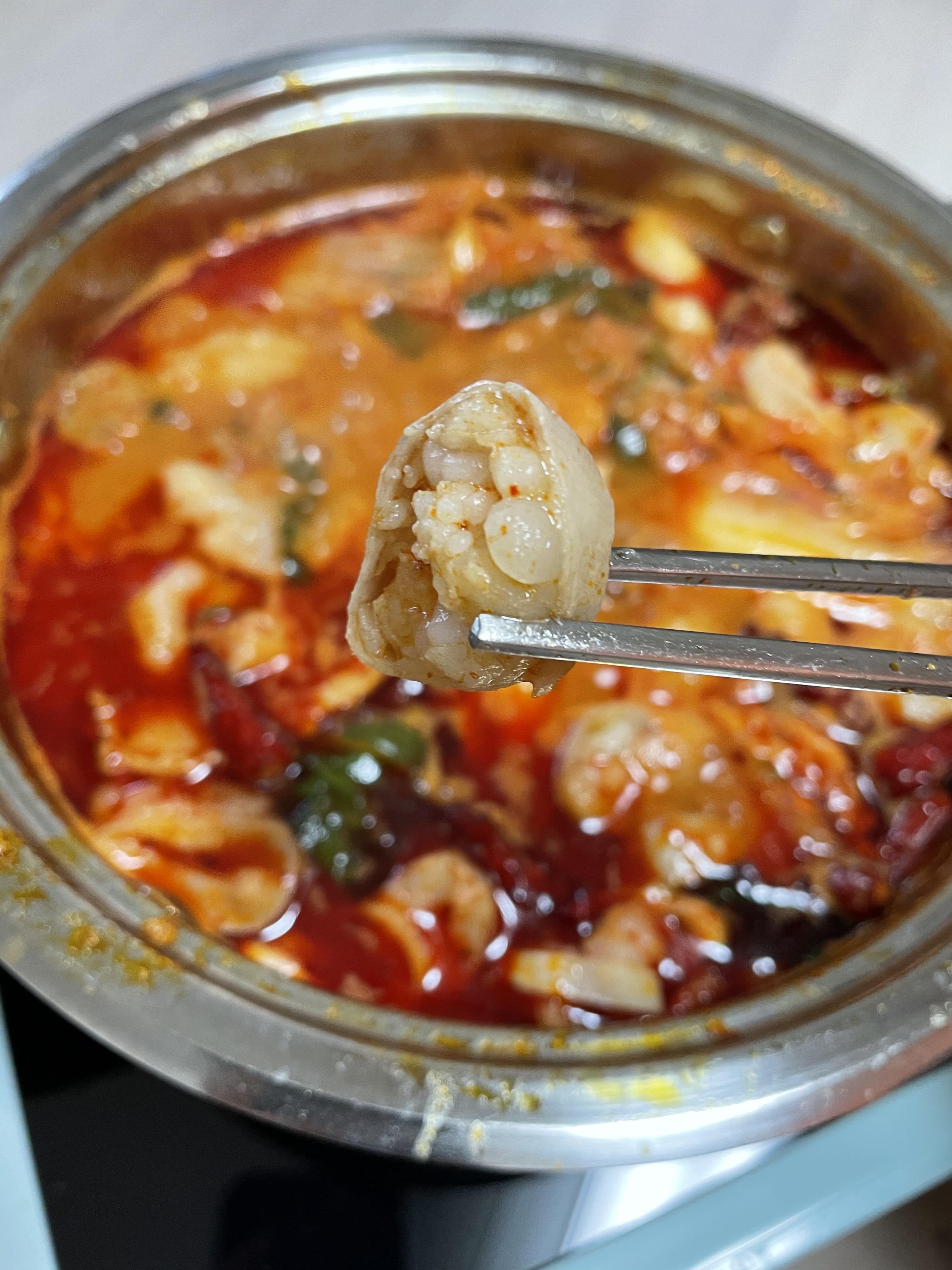 맵기는 적당했던 것 같아요. 맵다고 못 느꼈고요. 곱창이랑 닭이 동시에 땡긴다면 도전해봐도 좋을 메뉴인 것 같아요.
