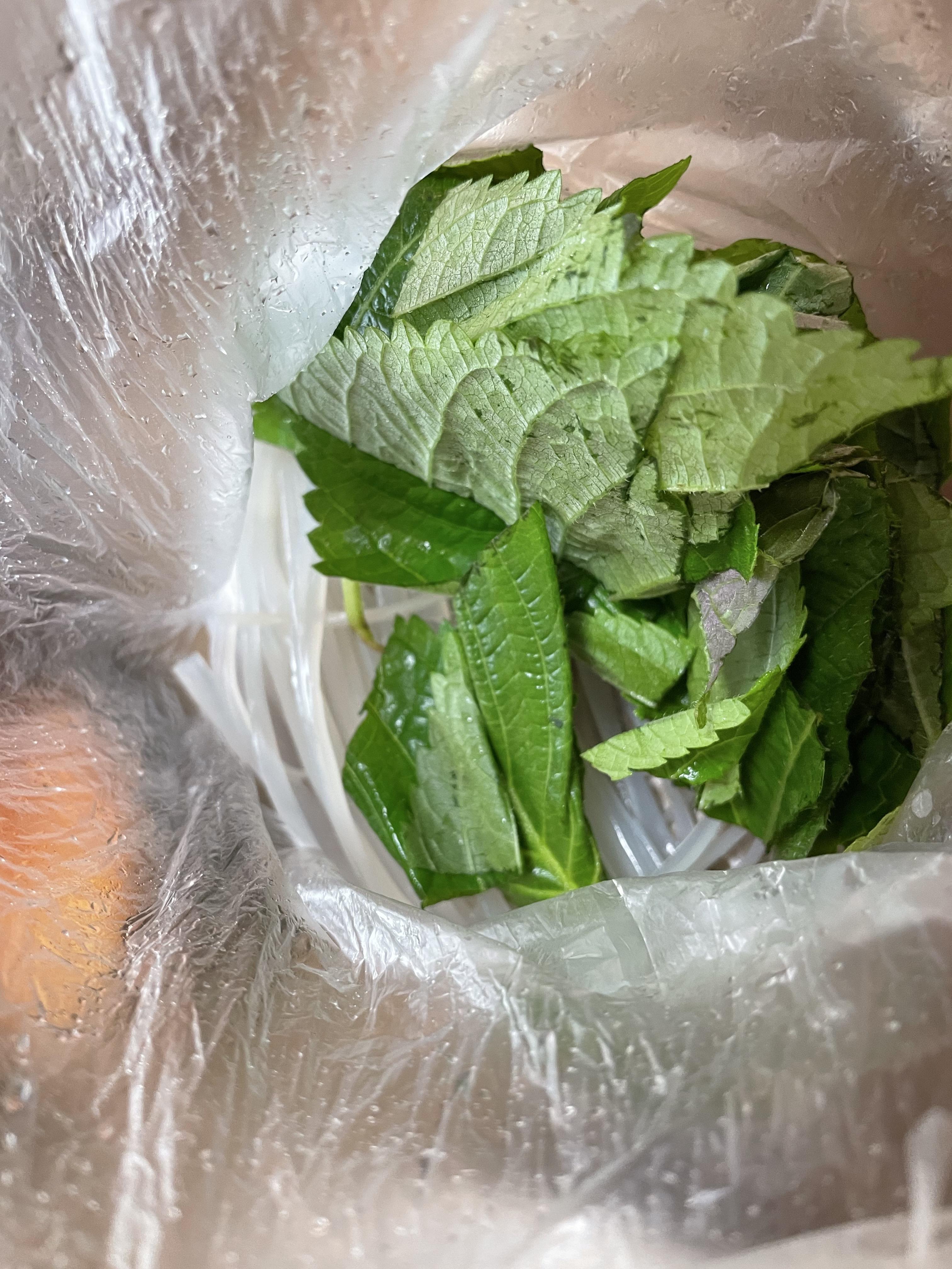 깻잎은 이렇게 잘라서 주셨고, 비닐봉지에 넓적 당면 사리와 같이 넣어주셨어요. 깍두기는 익은 거라서 제가 맛있게 먹을 수 있었습니다.