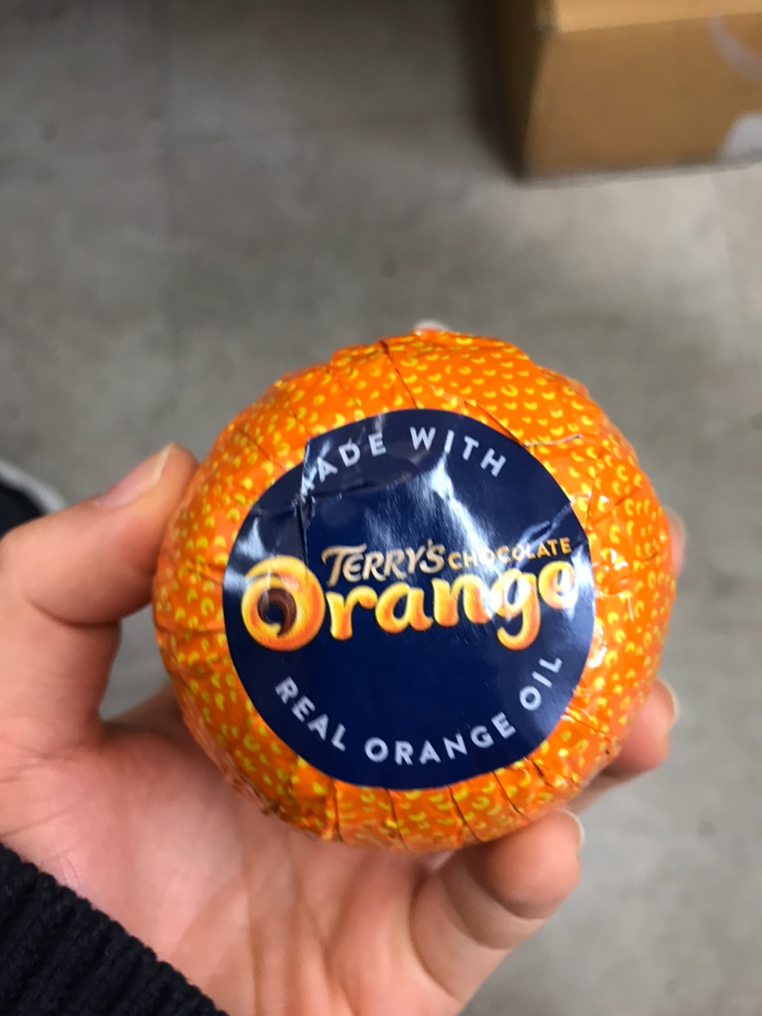 이름은 Terry's chocolate orange. 오렌지 모양의 초콜릿이라고 생각했어요. 혹은 그 맛이거나.