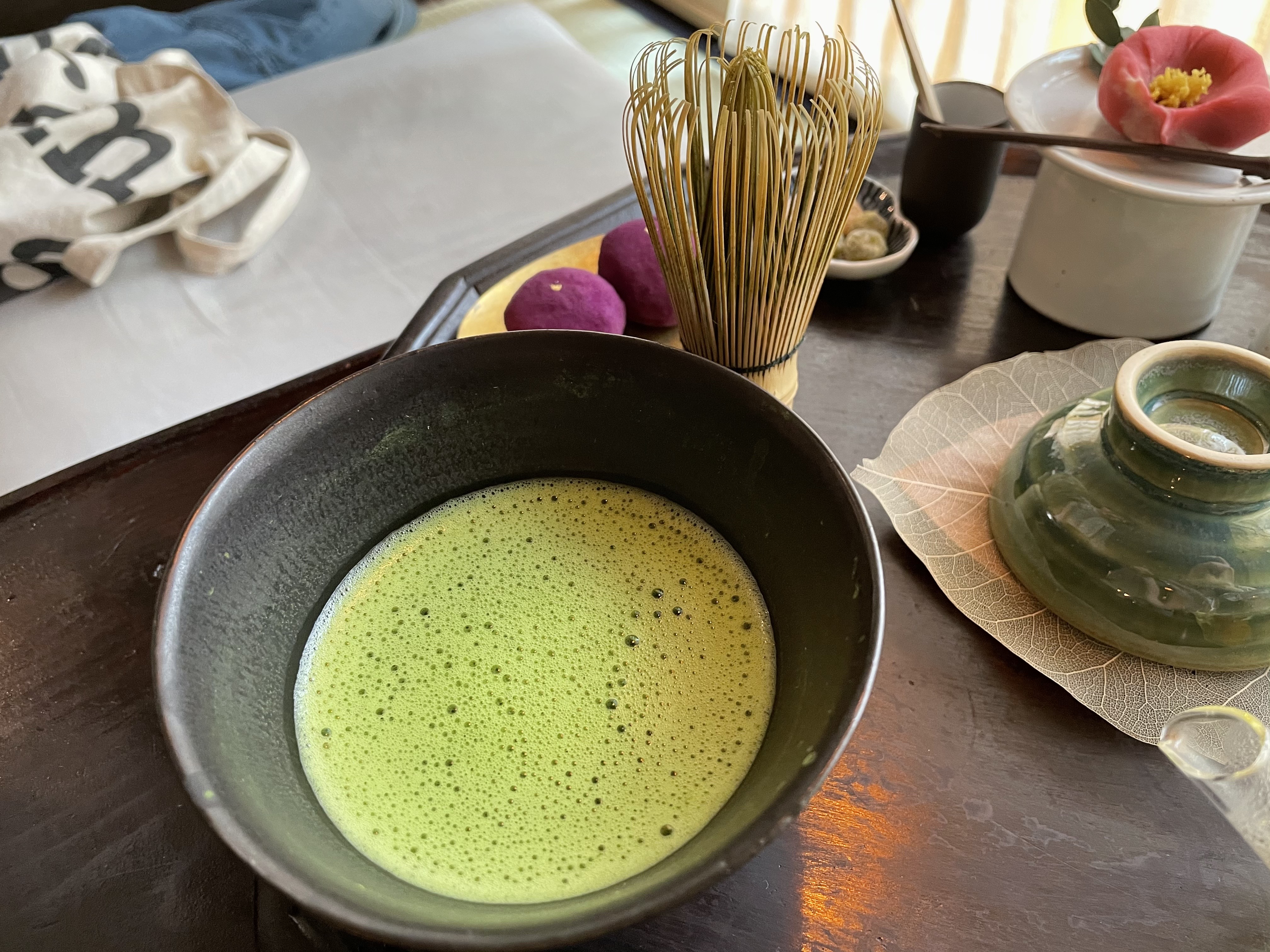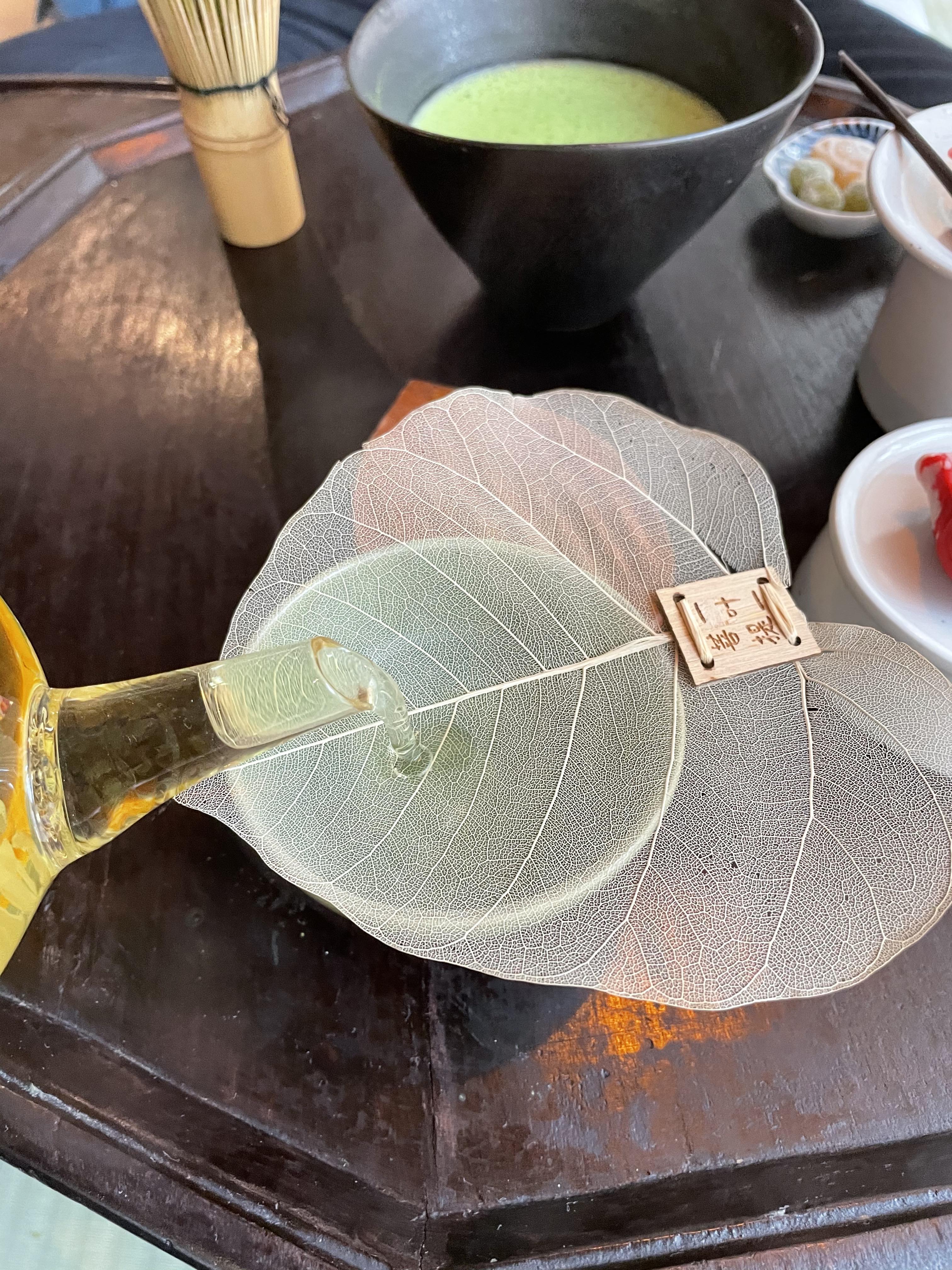 말차에요. 교토 우지산 최고급 말차를 사용했다고 합니다. 마시다가, 물을 좀 더 부어 같이 주신 차선으로 거품을 내어 격불하여 마시면 된다고 설명주셨어요.
