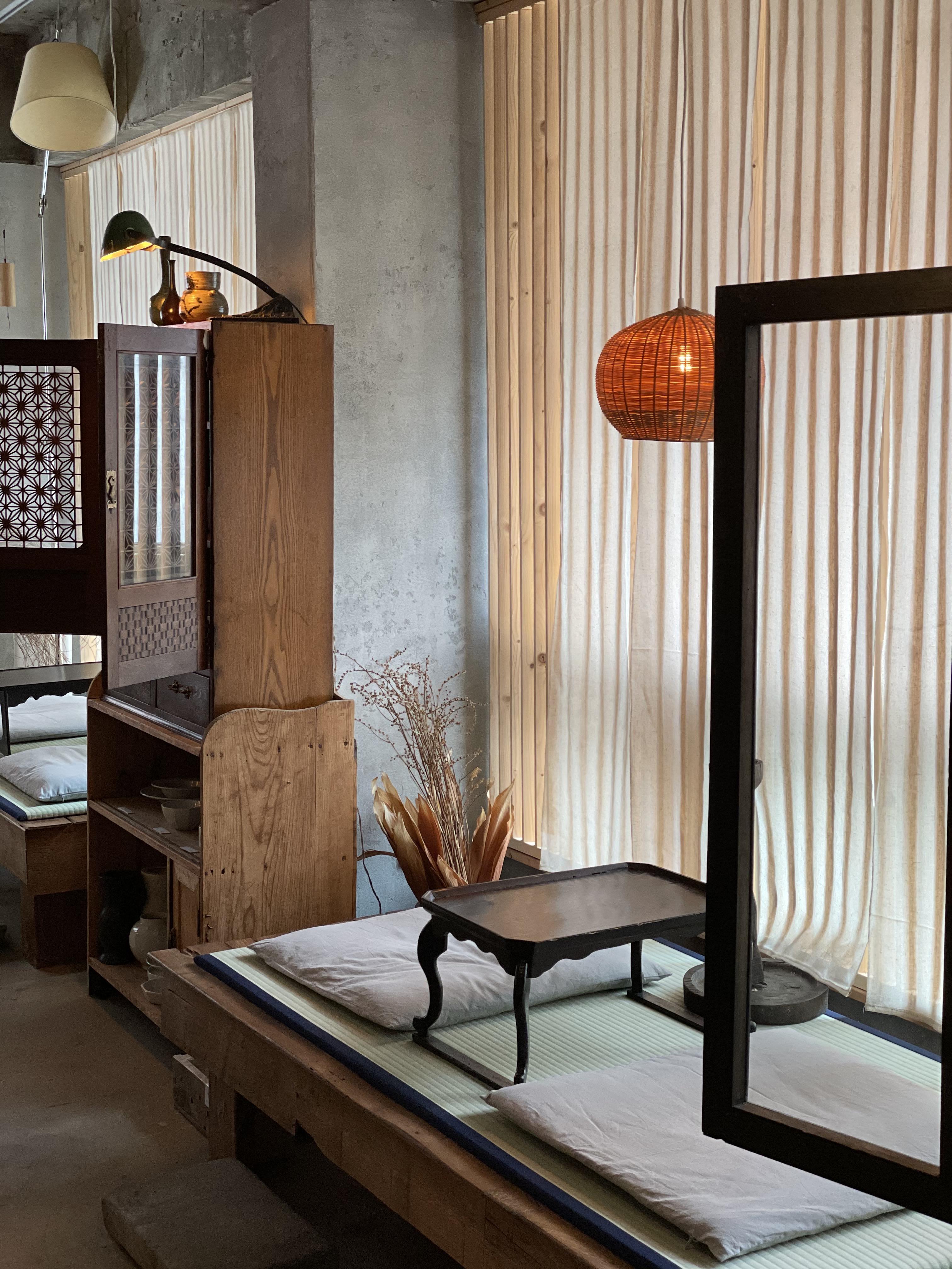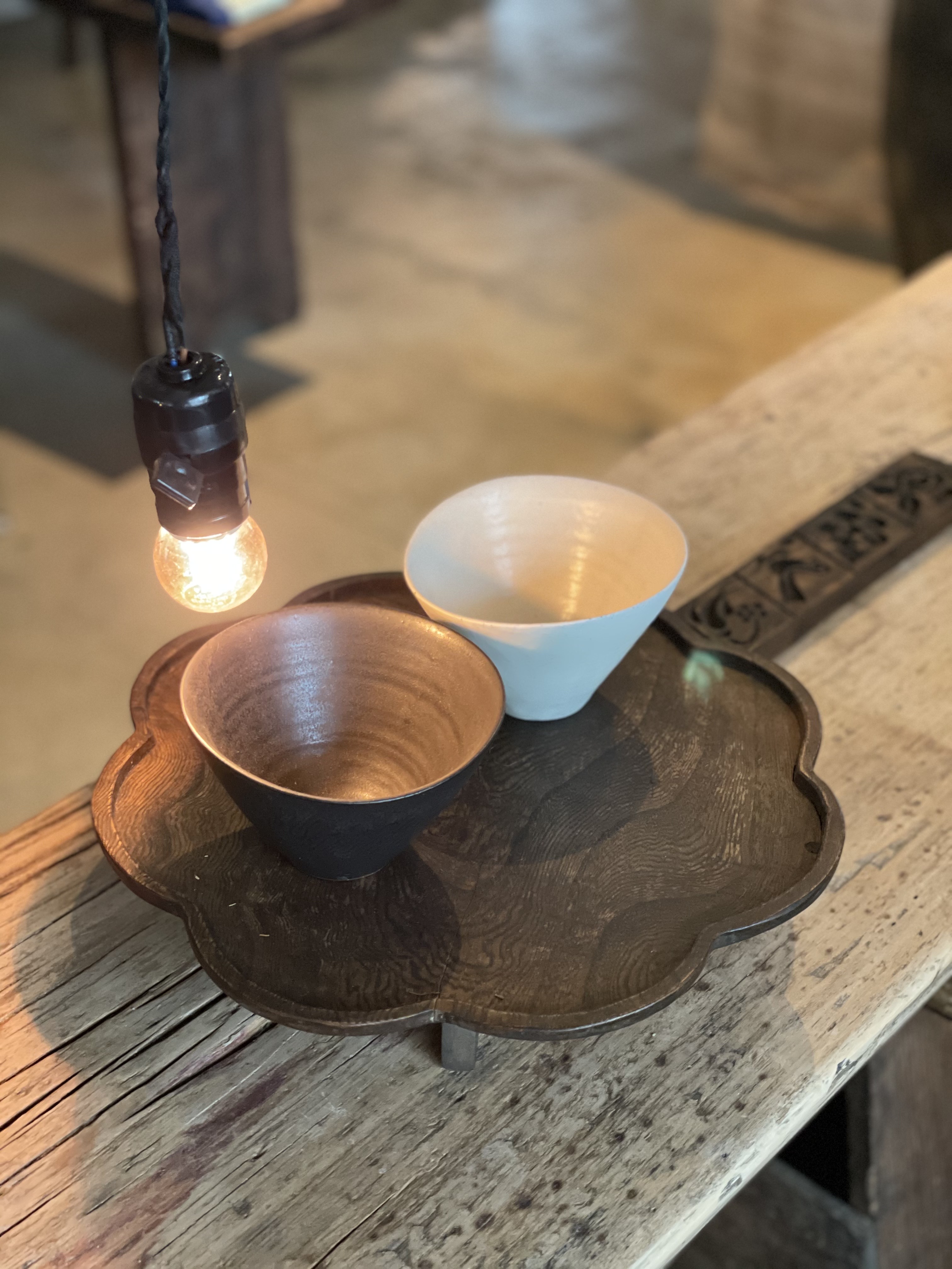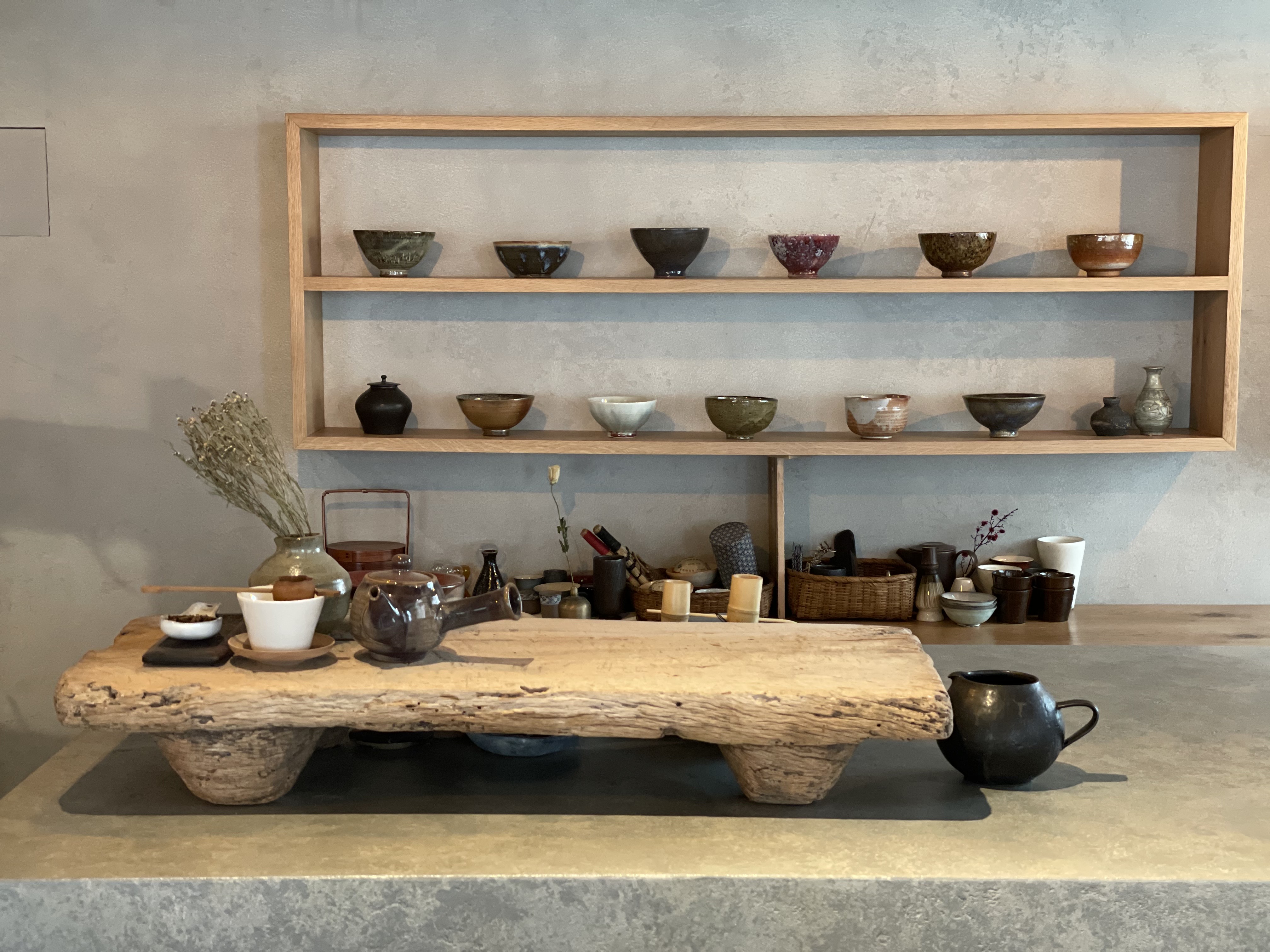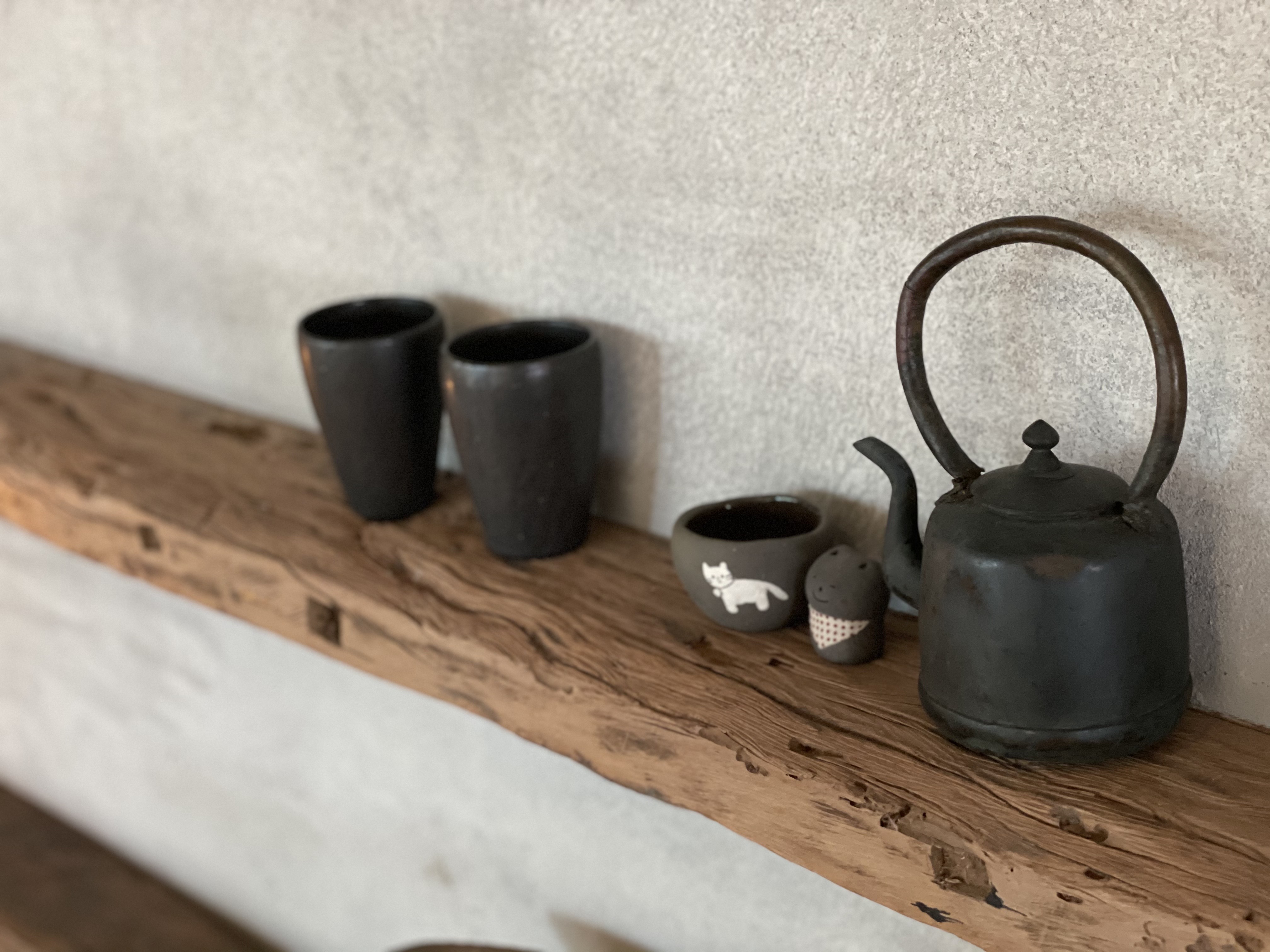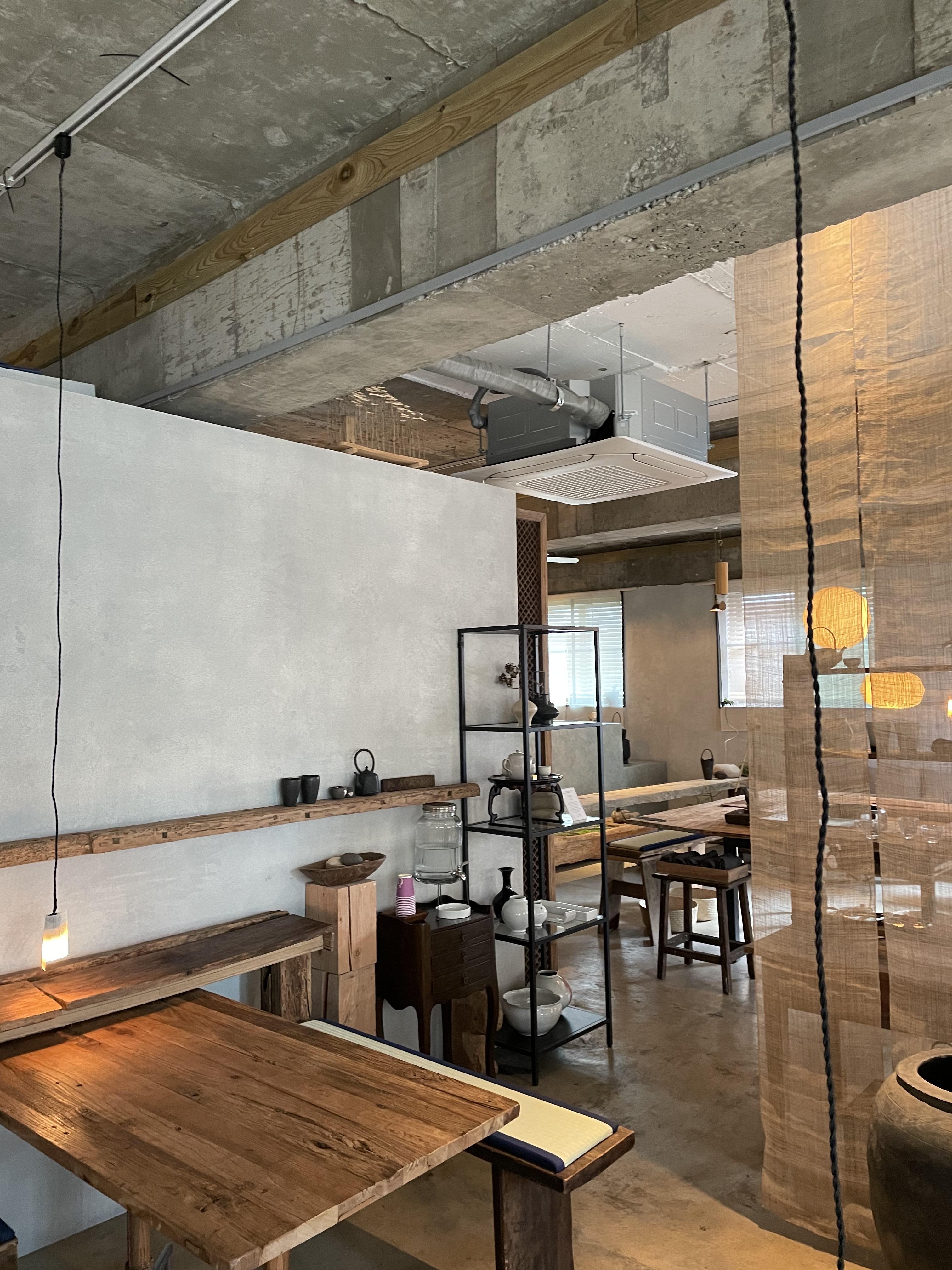 도예를 기반으로 하는 곳이기 때문에, 곳곳에 도기들이 많았어요. 전반적으로 고목으로 만들어진 가구들, 노출콘크리트 천정과 벽에서 거친 노마드(유목민)의 느낌이 났지만, 그 또한 정갈하게 손 때가 탄 느낌이었어요. 그만큼 신경을 많이 쓰셨던 거겠죠?