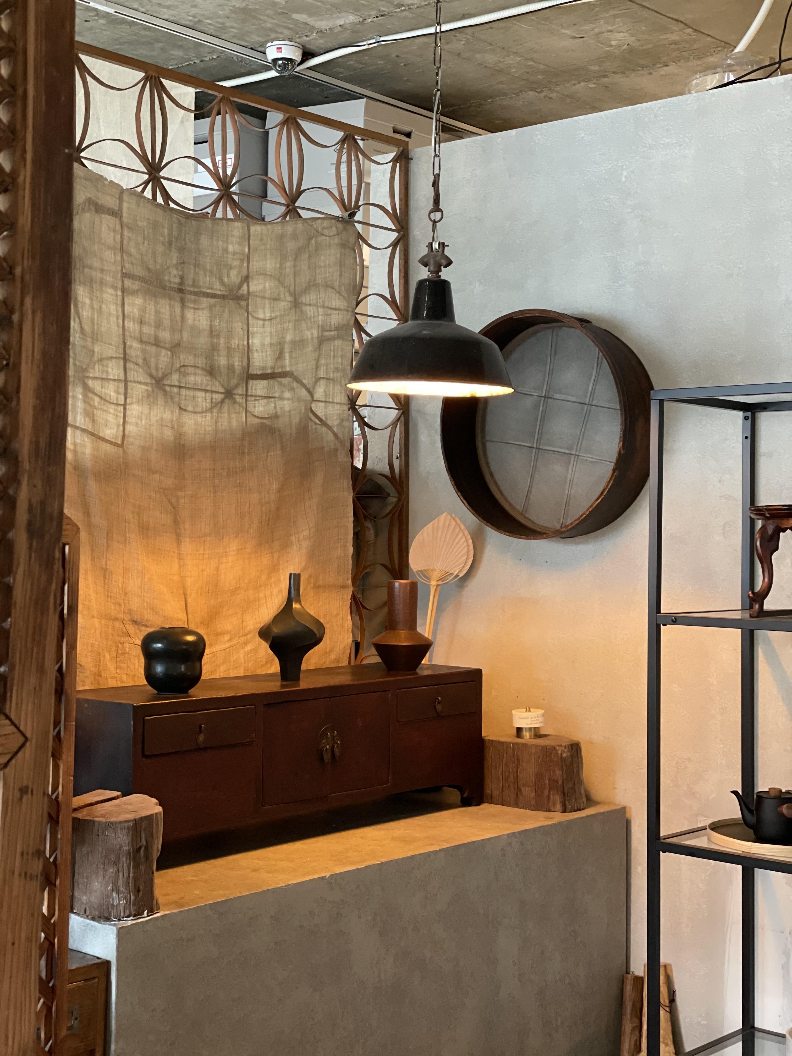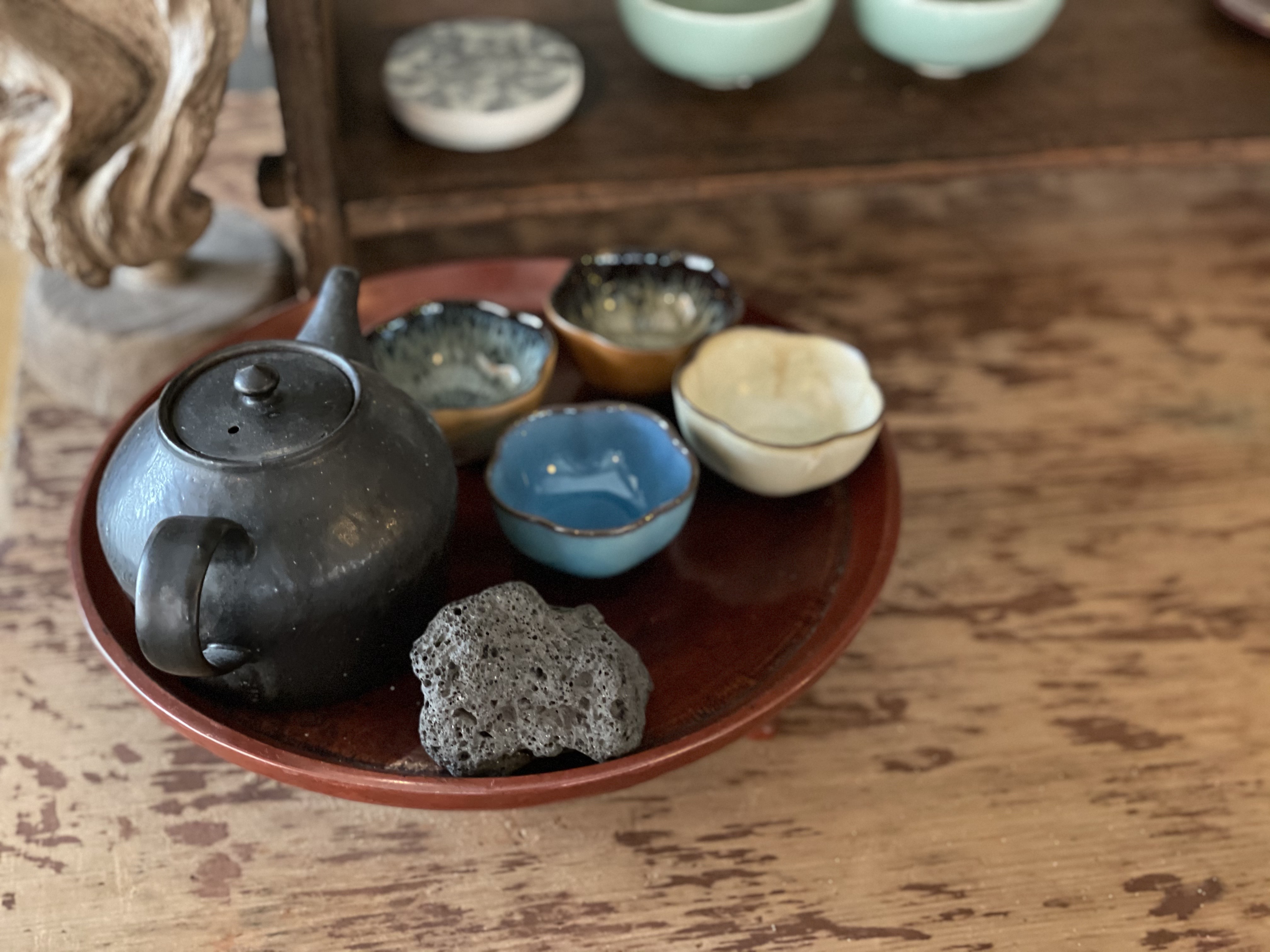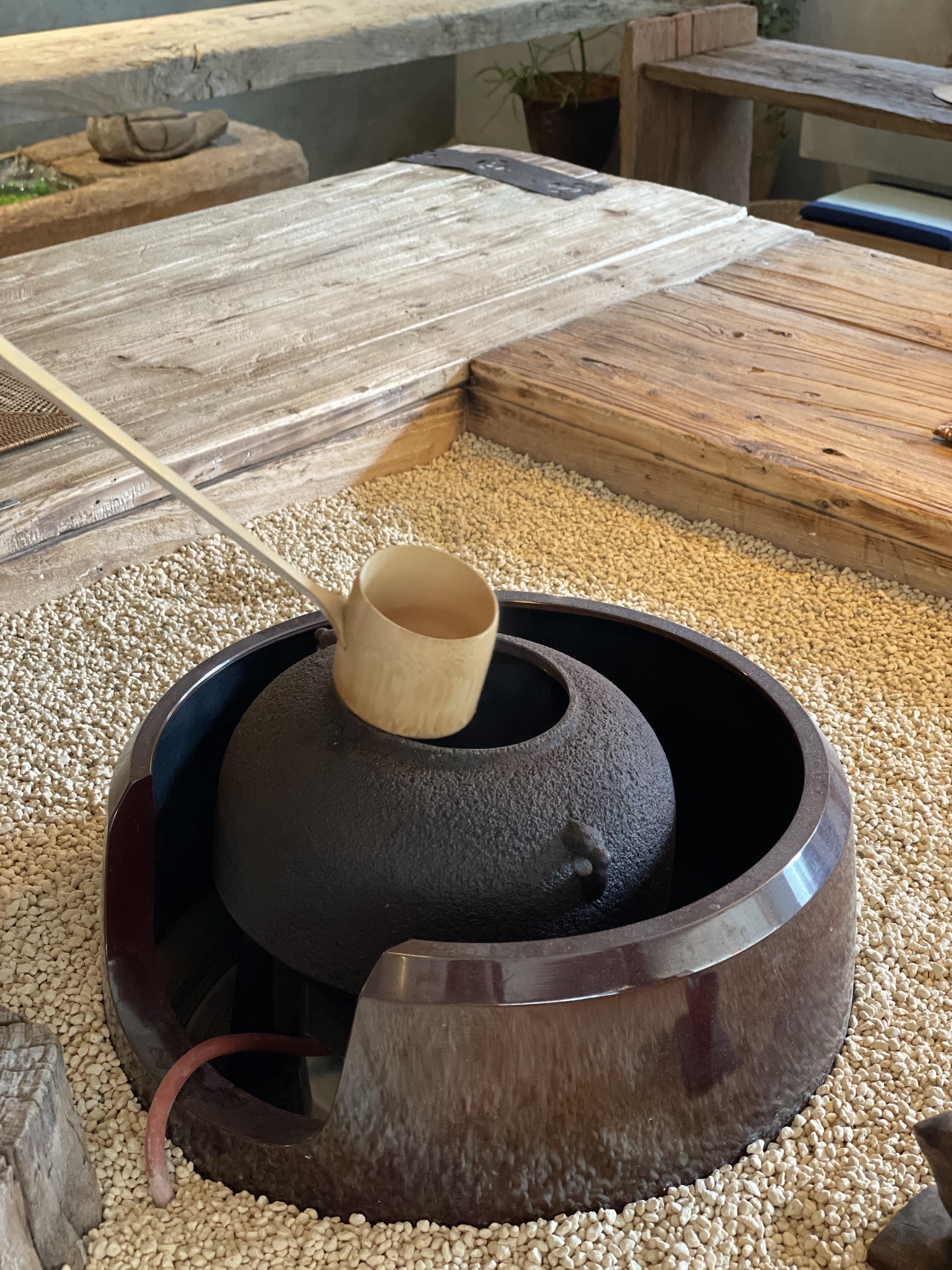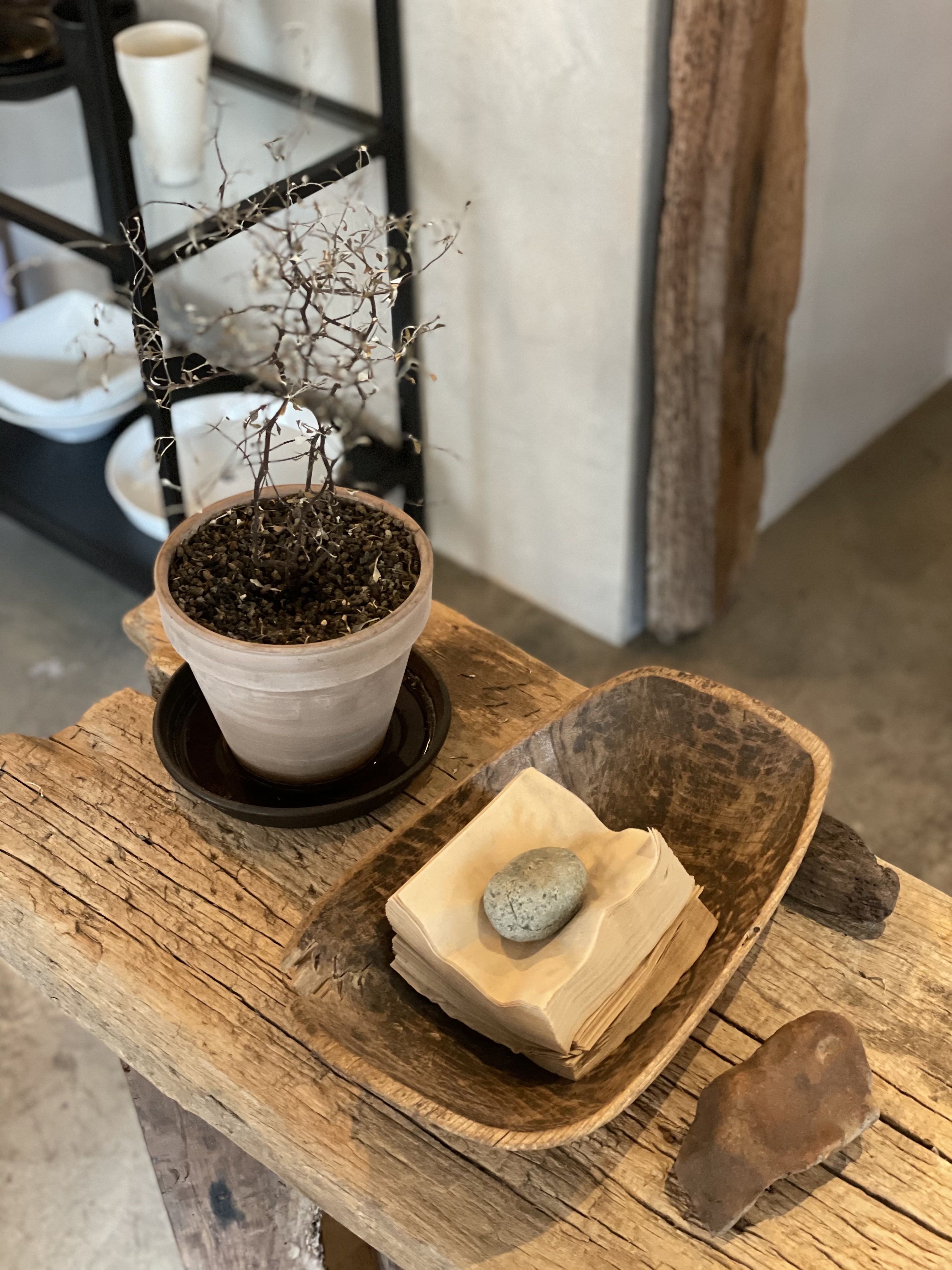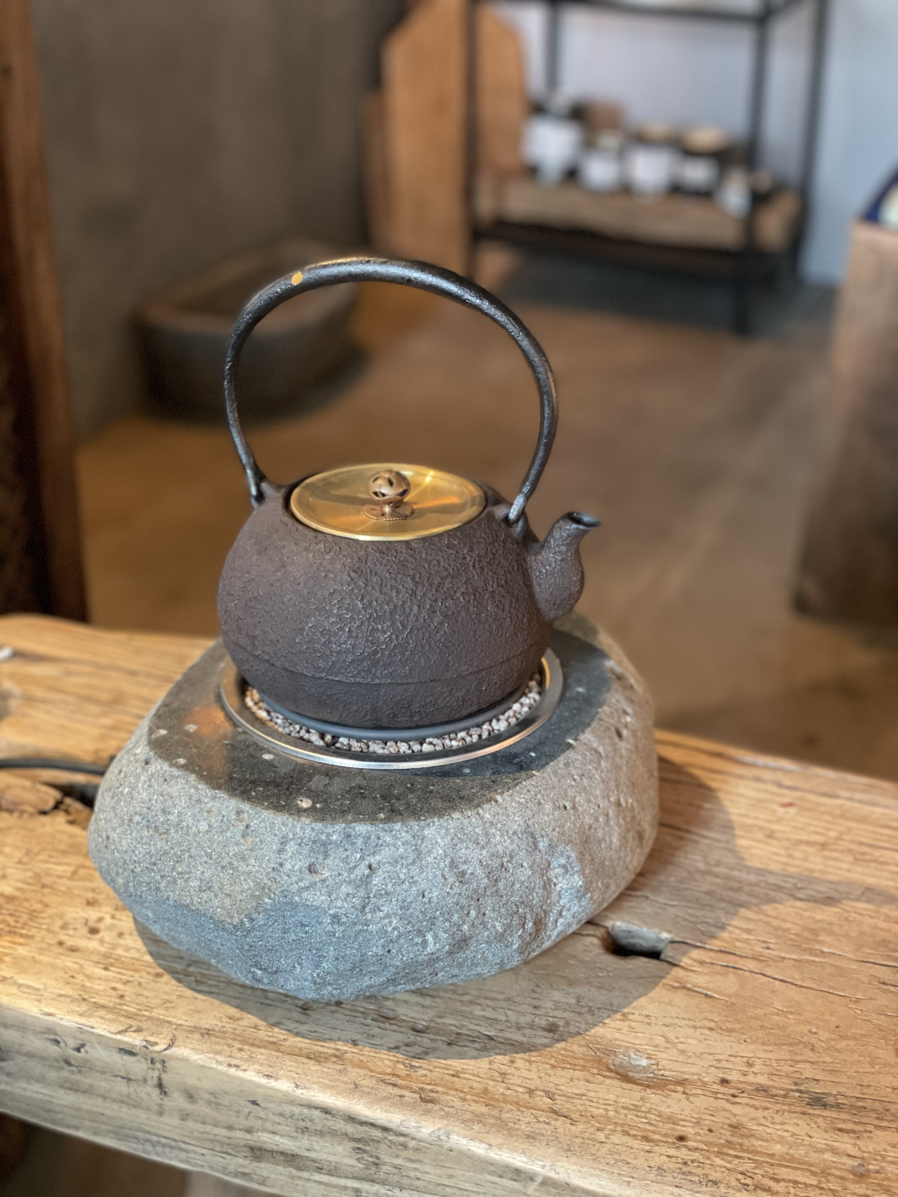 도예를 기반으로 하는 곳이기 때문에, 곳곳에 도기들이 많았어요. 전반적으로 고목으로 만들어진 가구들, 노출콘크리트 천정과 벽에서 거친 노마드(유목민)의 느낌이 났지만, 그 또한 정갈하게 손 때가 탄 느낌이었어요. 그만큼 신경을 많이 쓰셨던 거겠죠?
