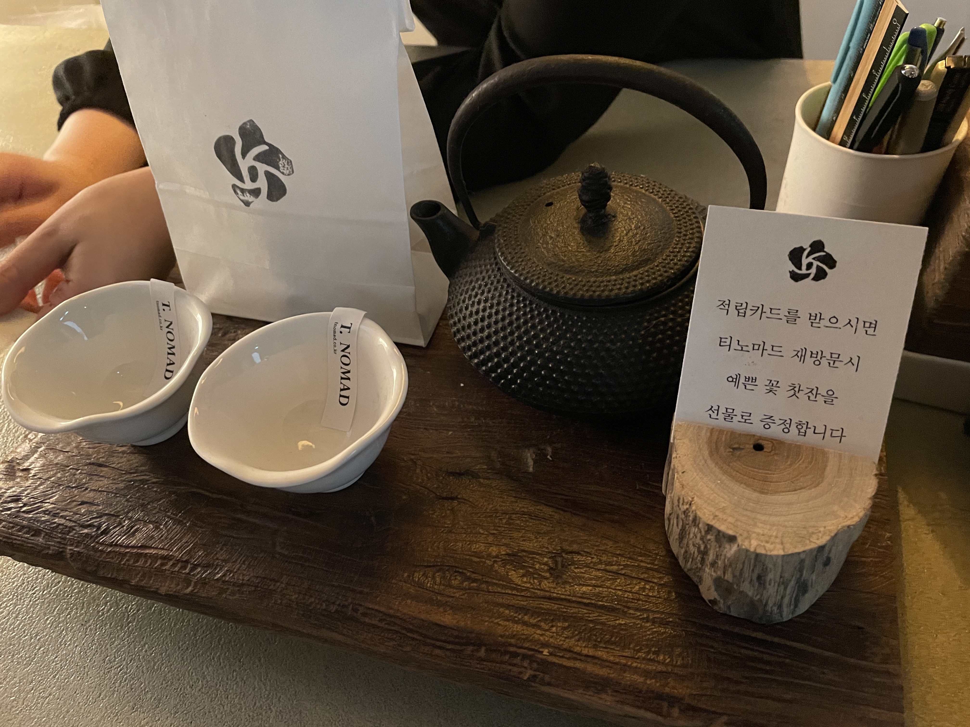 그리고 적립카드를 주셨는데, 재방문시 보여드리면 꽃 찻잔을 선물로 주신다고 하니 받으면 좋을 것 같아요.