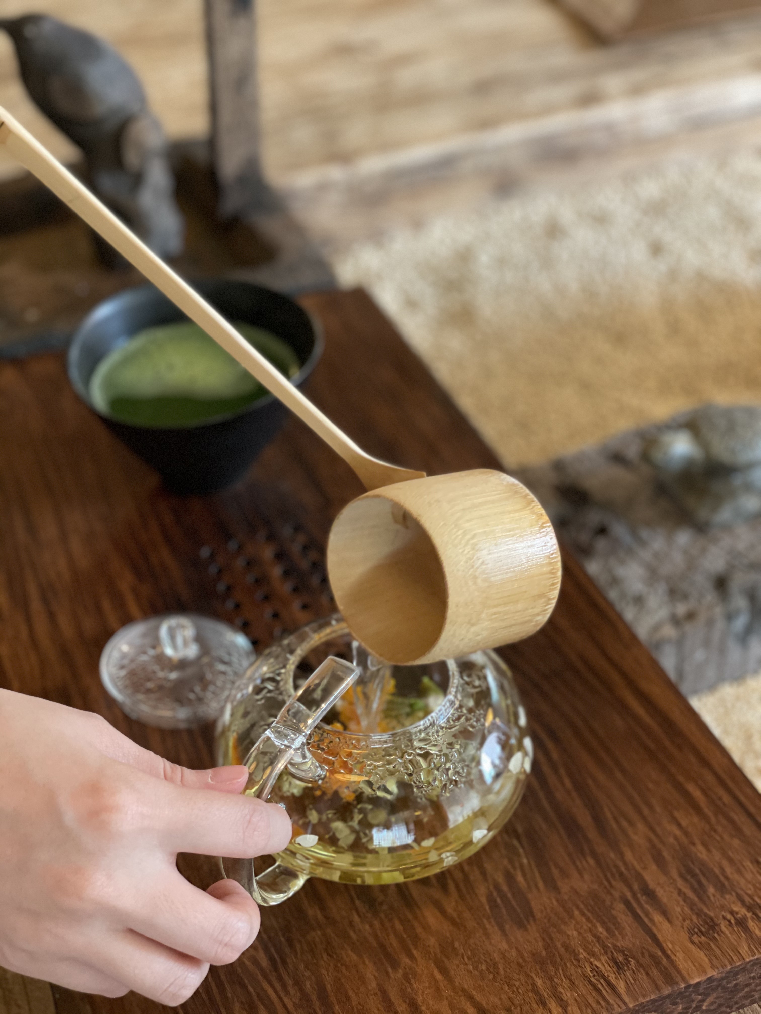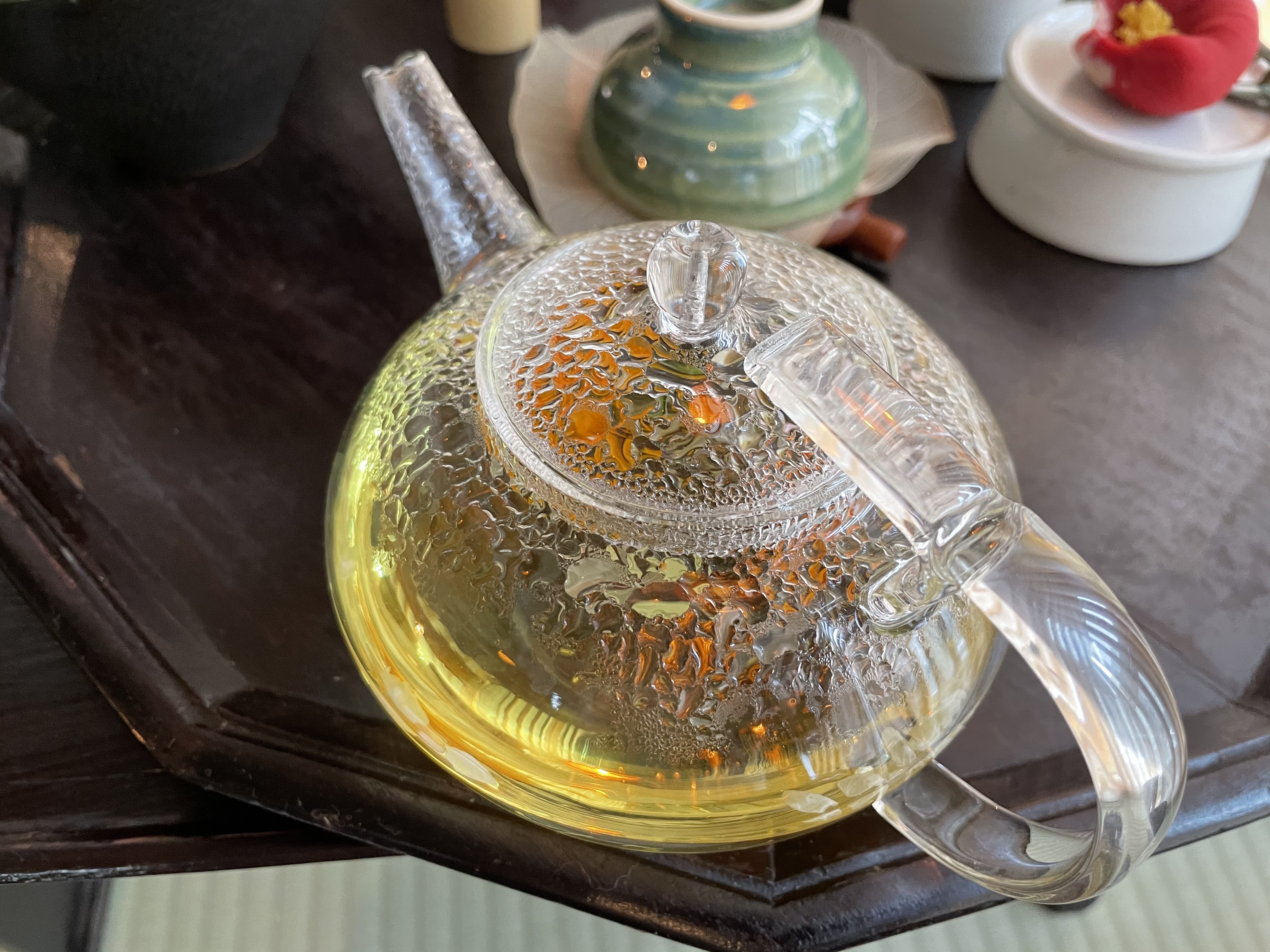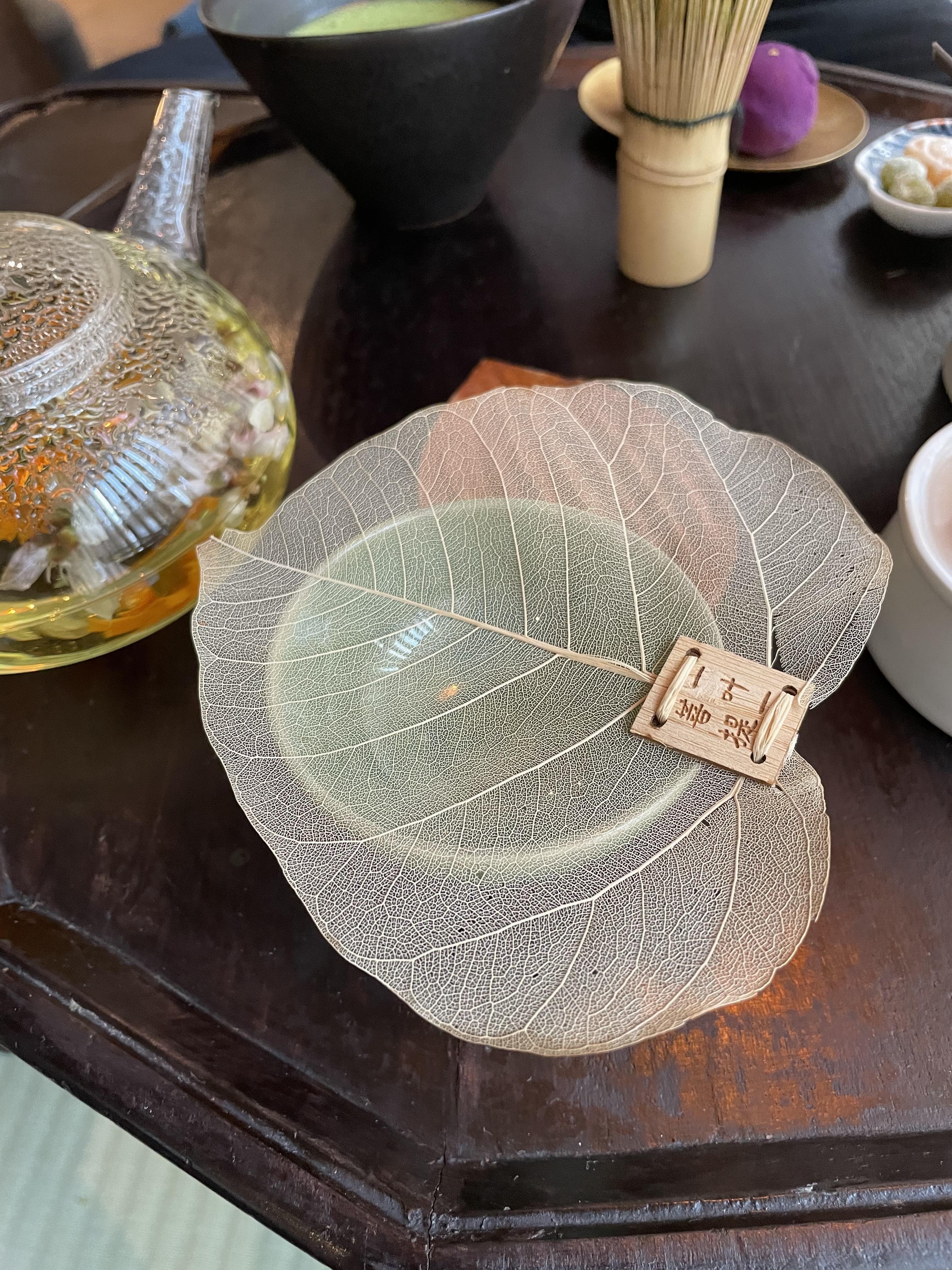 찻잔 위에 나뭇잎 모양의 거름망을 올리고 차를 부어서 마시면 된다고 하시더라구요. 차 맛은 굉장히 담백하고 크게 호불호가 갈릴 것 같지 않은 편안한 맛이었어요.