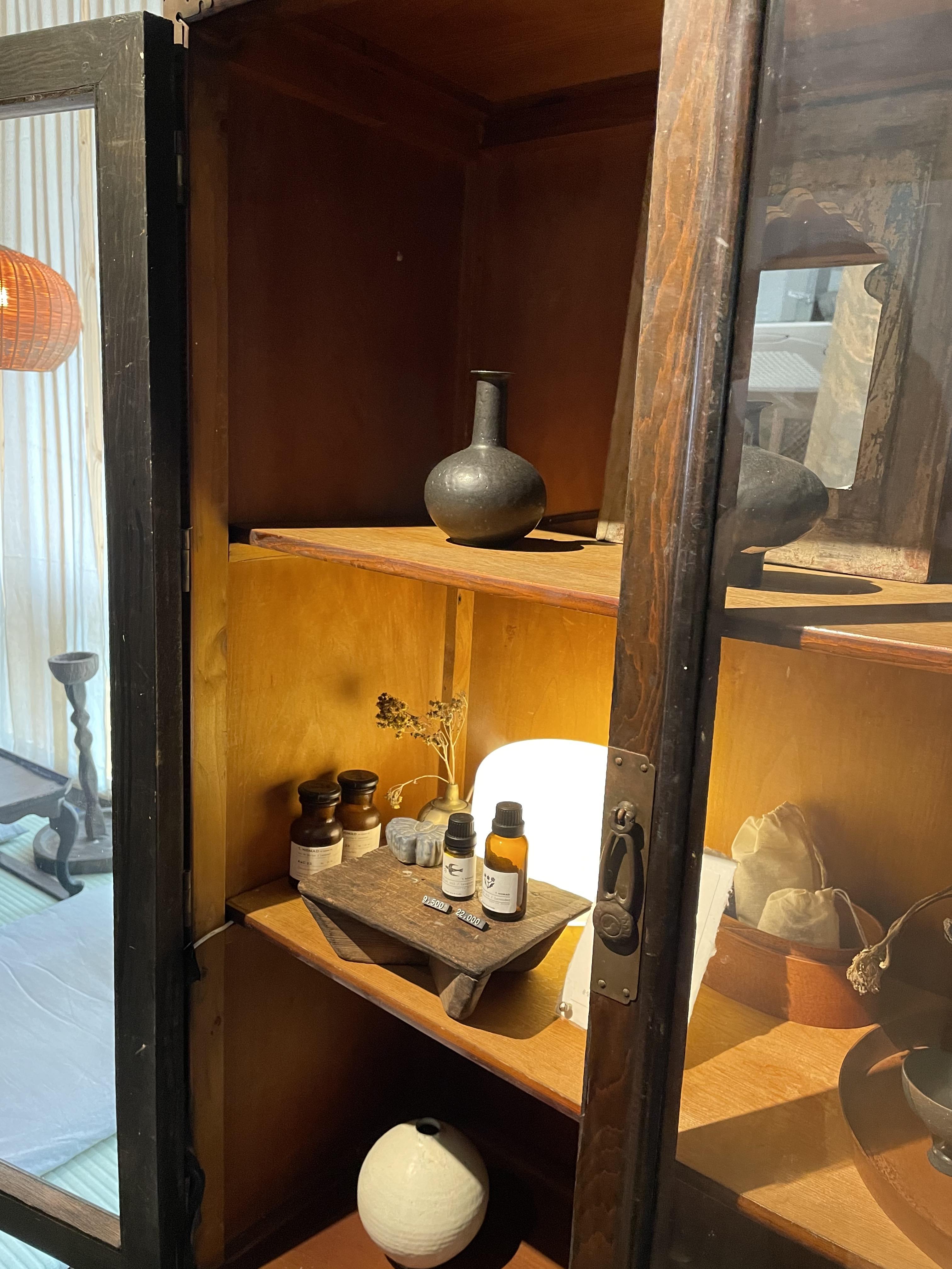 곳곳에 고목으로 만들어진 가구 외에도 자개로 만들어진 서랍장이라던지, 한국 특유의 고운 선을 가진 가구들이 배치되어 찾아보는 재미도 좋았어요.