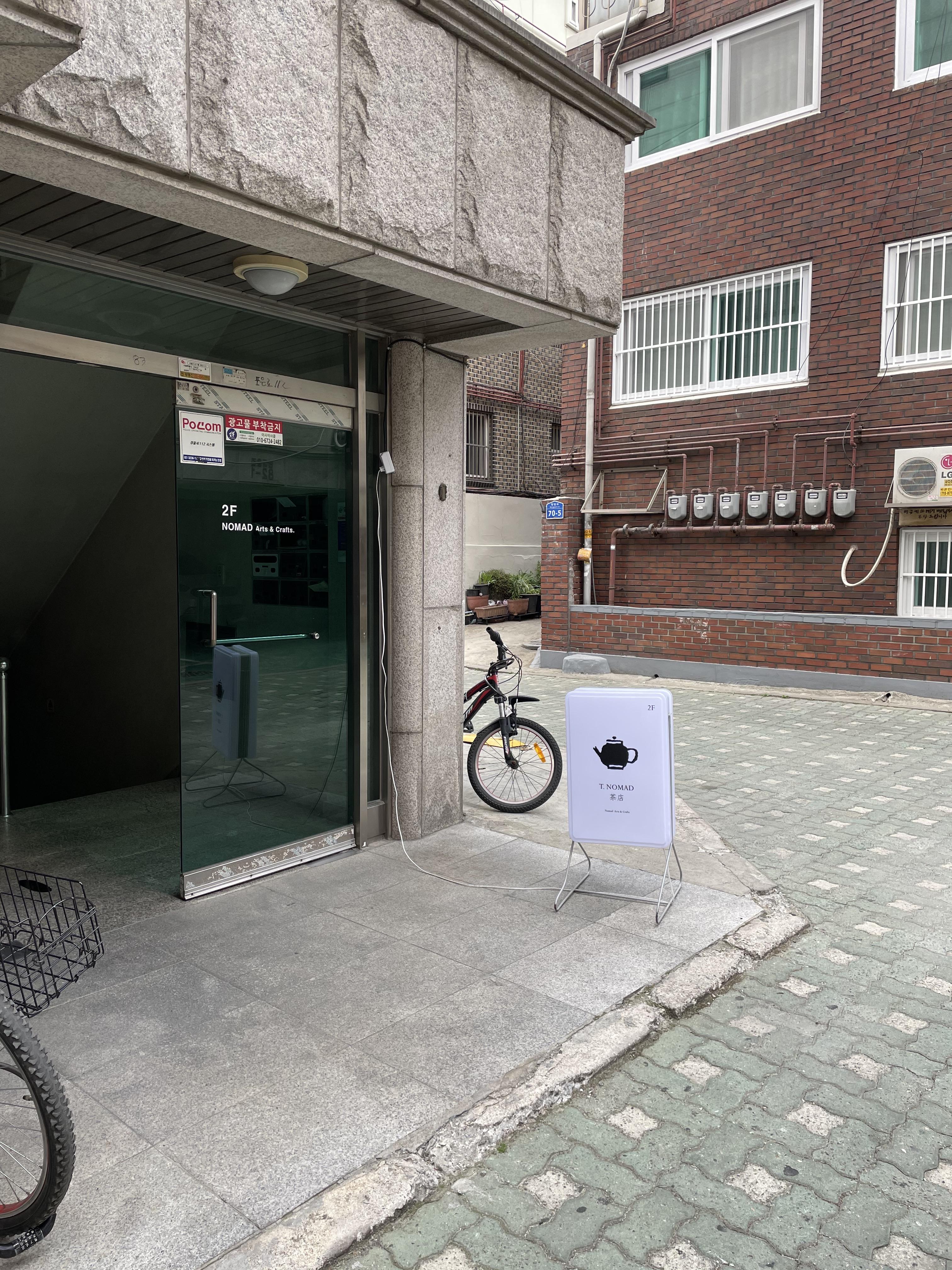 티노마드는 이렇게 길가에서 안쪽으로 들어오면 입구가 보여요. 2층이에요!