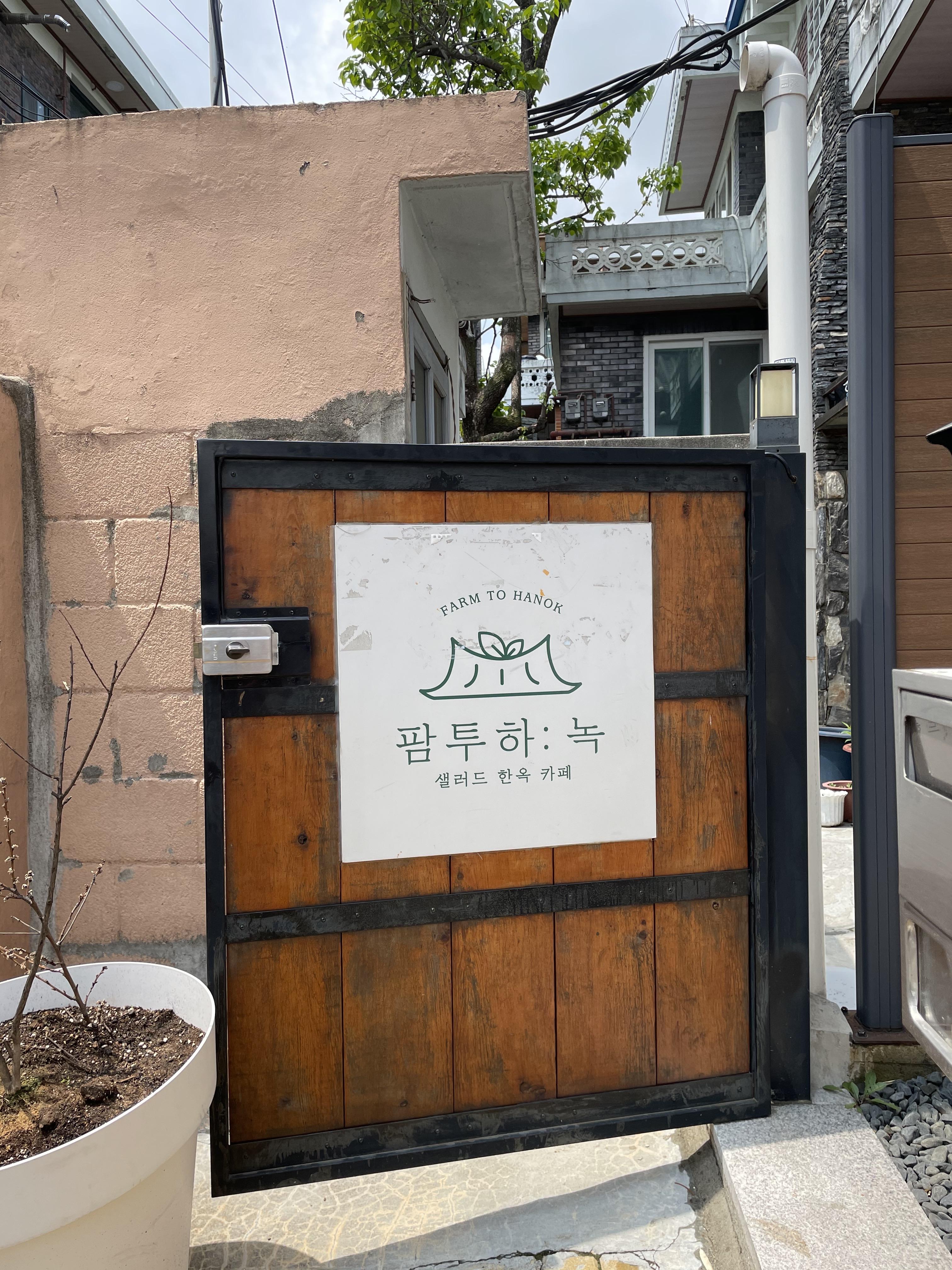 입구에는 이렇게 팜투하:녹 이라고 쓰여있어요. 샐러드 한옥 카페라고 하네요.
