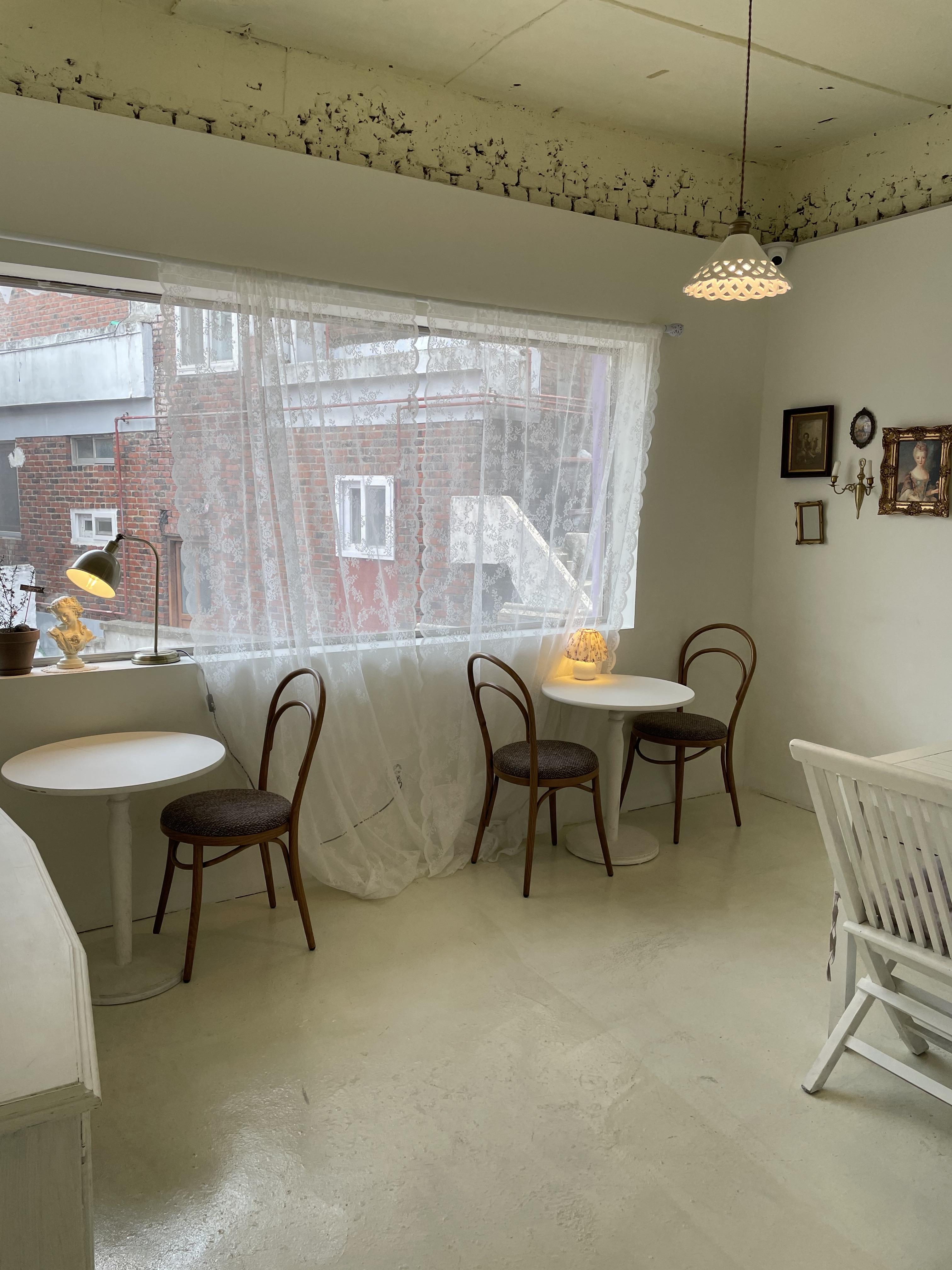 딱 외관까지만 예뻤고, 갑자기 맥락 없이 나오는 구름 같은 폭신폭신한 캐릭터에 1차 당황, 외관과 180도 다른 내부에 2차 당황, 케이크 맛에 3차 당황했던 곳이에요. 빈티지를 표현하려고 한 것일까요..?