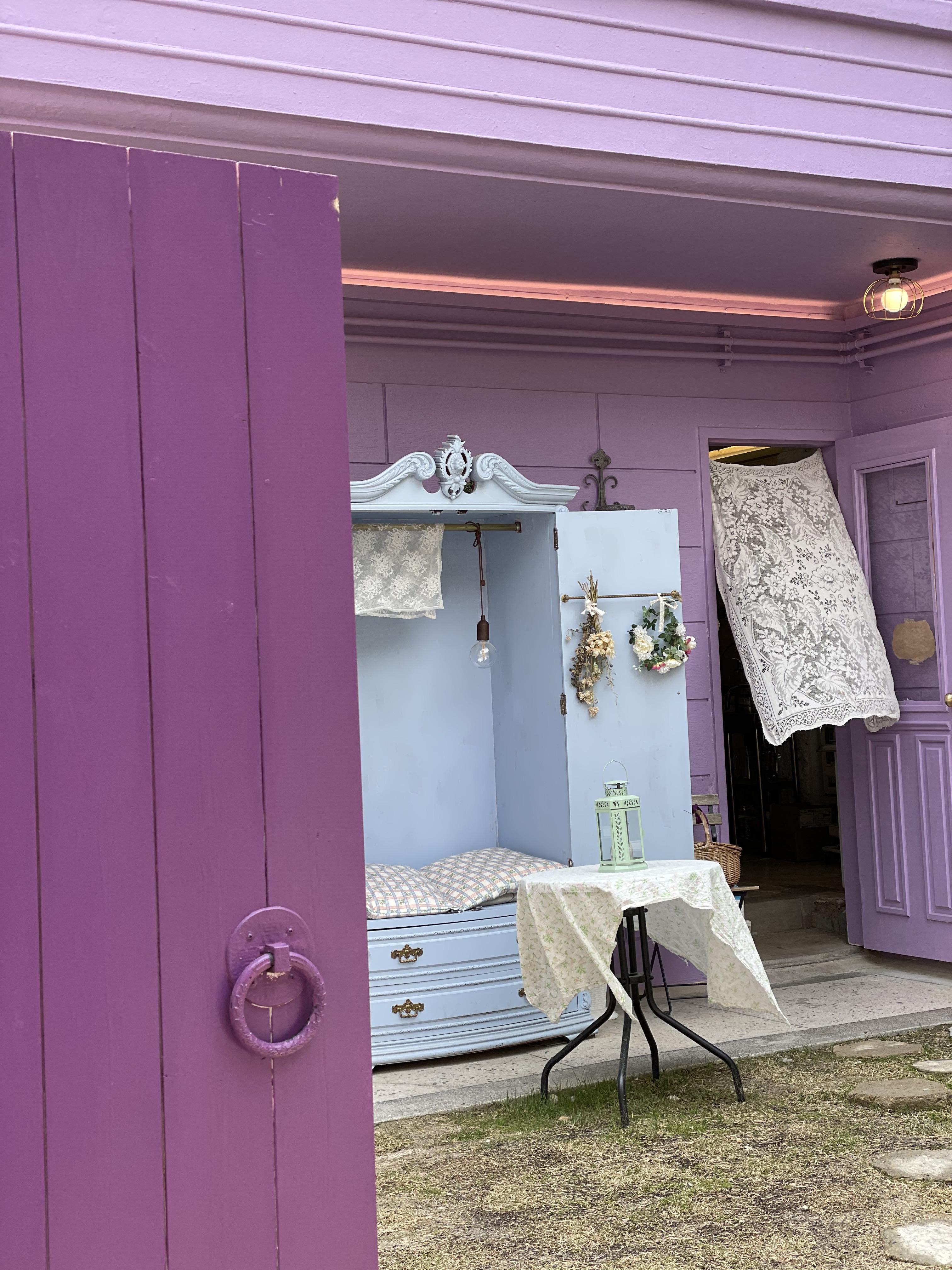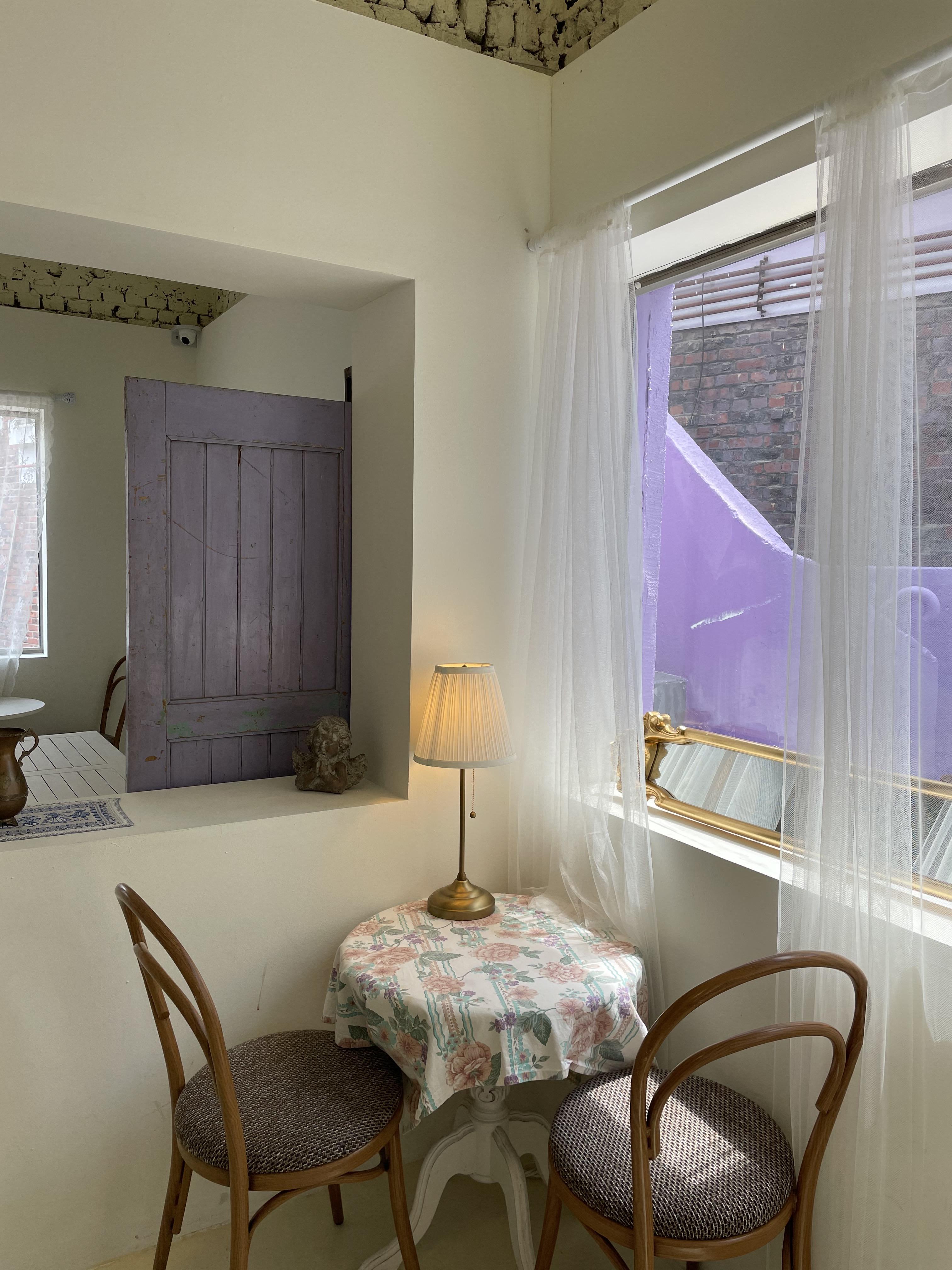 보라색을 좋아하시는 분이면 누구나 행복해질 수밖에 없는 외관인 것 같아요. 제가 볼 때 이 카페에서 가장 예쁜 공간은 이 외관이에요.