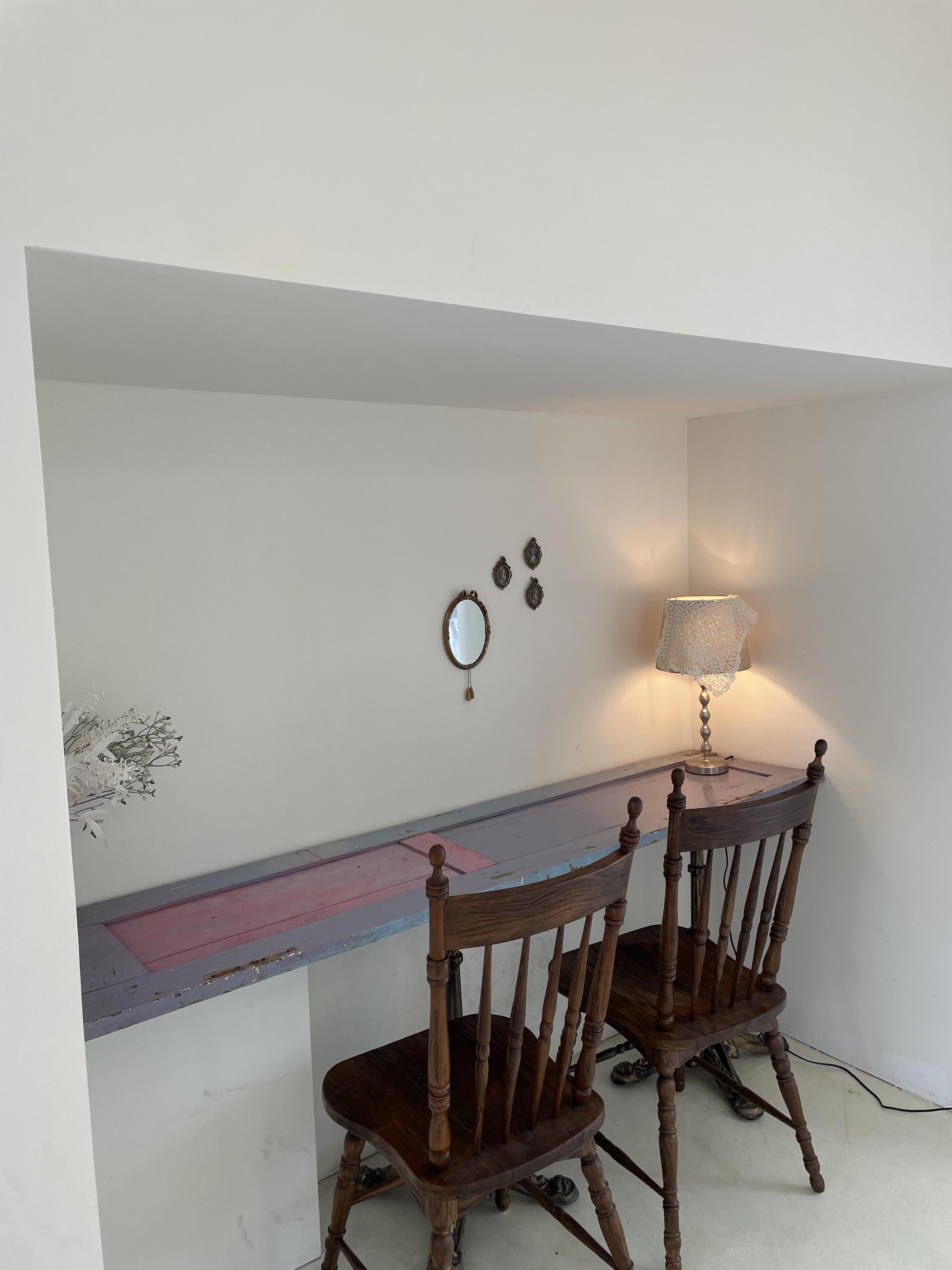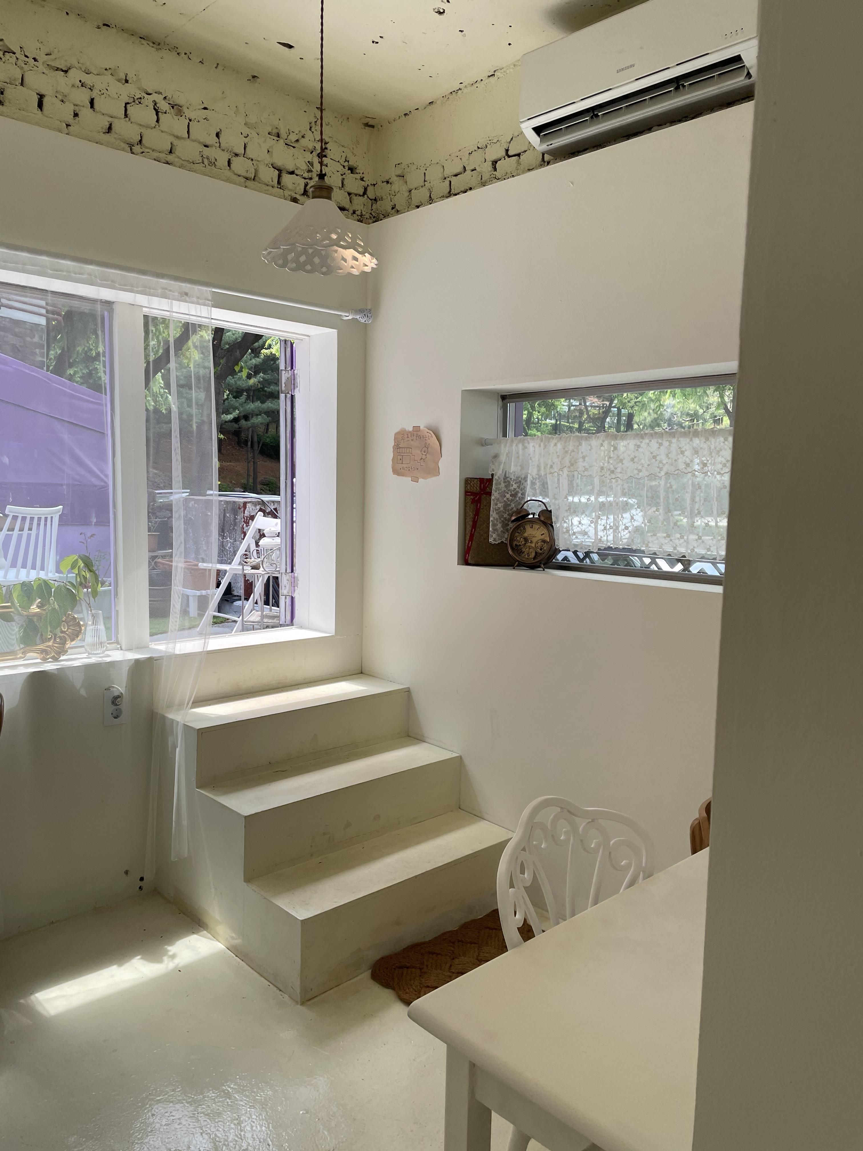 내부 인테리어는 반전스럽게도, 화이트 빈티지였어요.