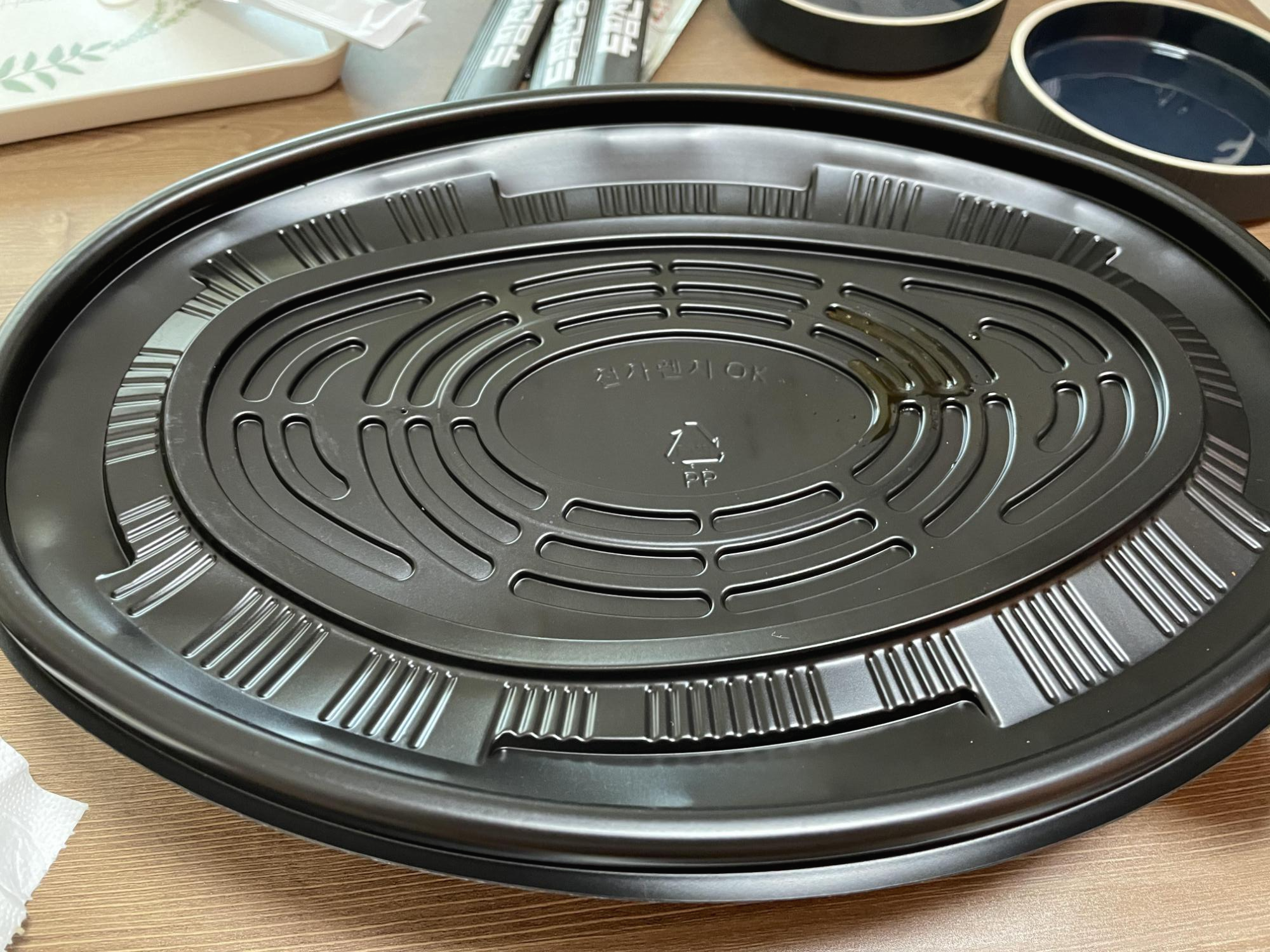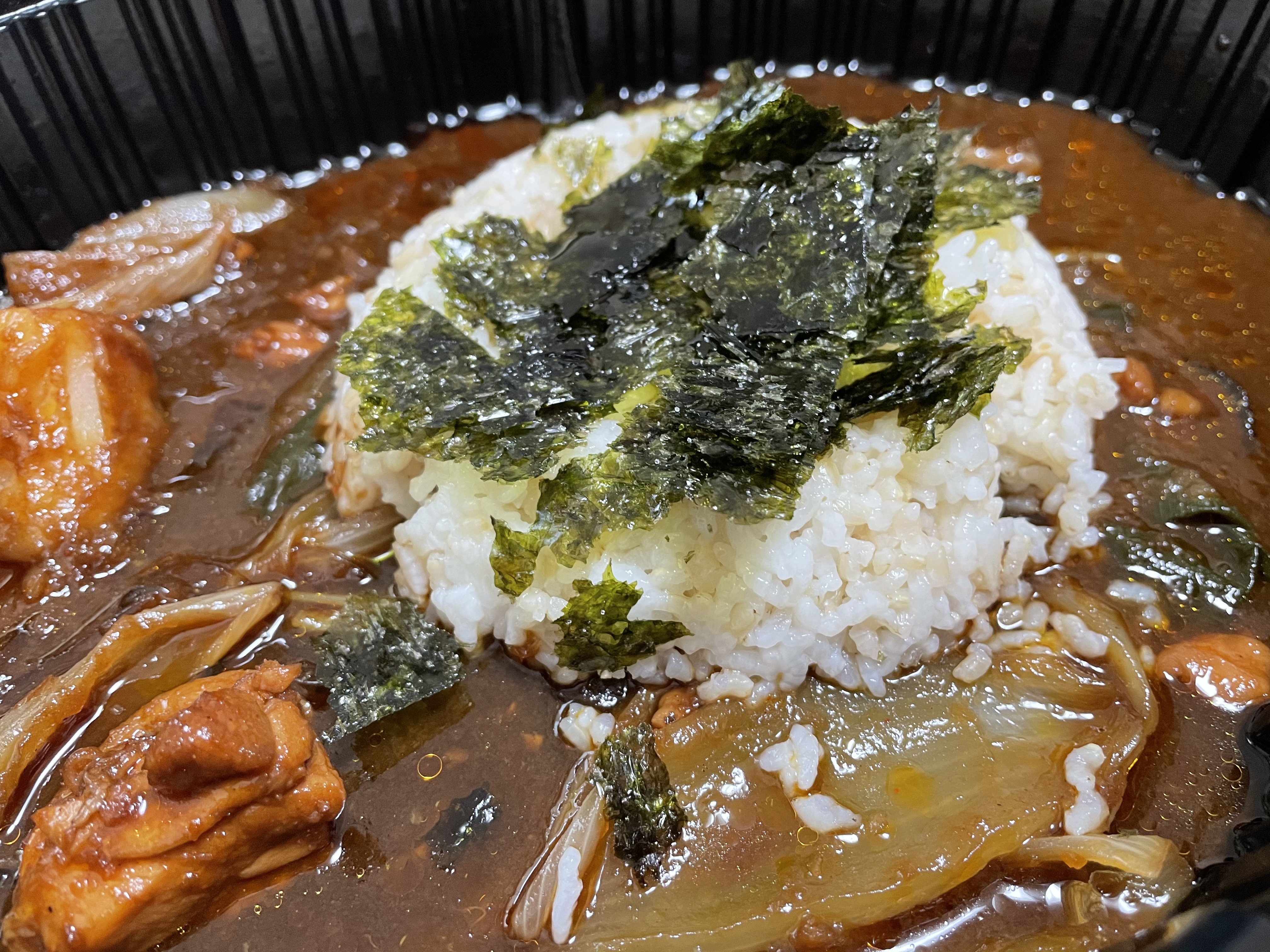 어느 정도 먹어치운 후, 햇반을 돌려 밥을 비볐어요. 같이 온 김가루와 참기름을 같이 넣고 비벼먹으니 맛있었어요.