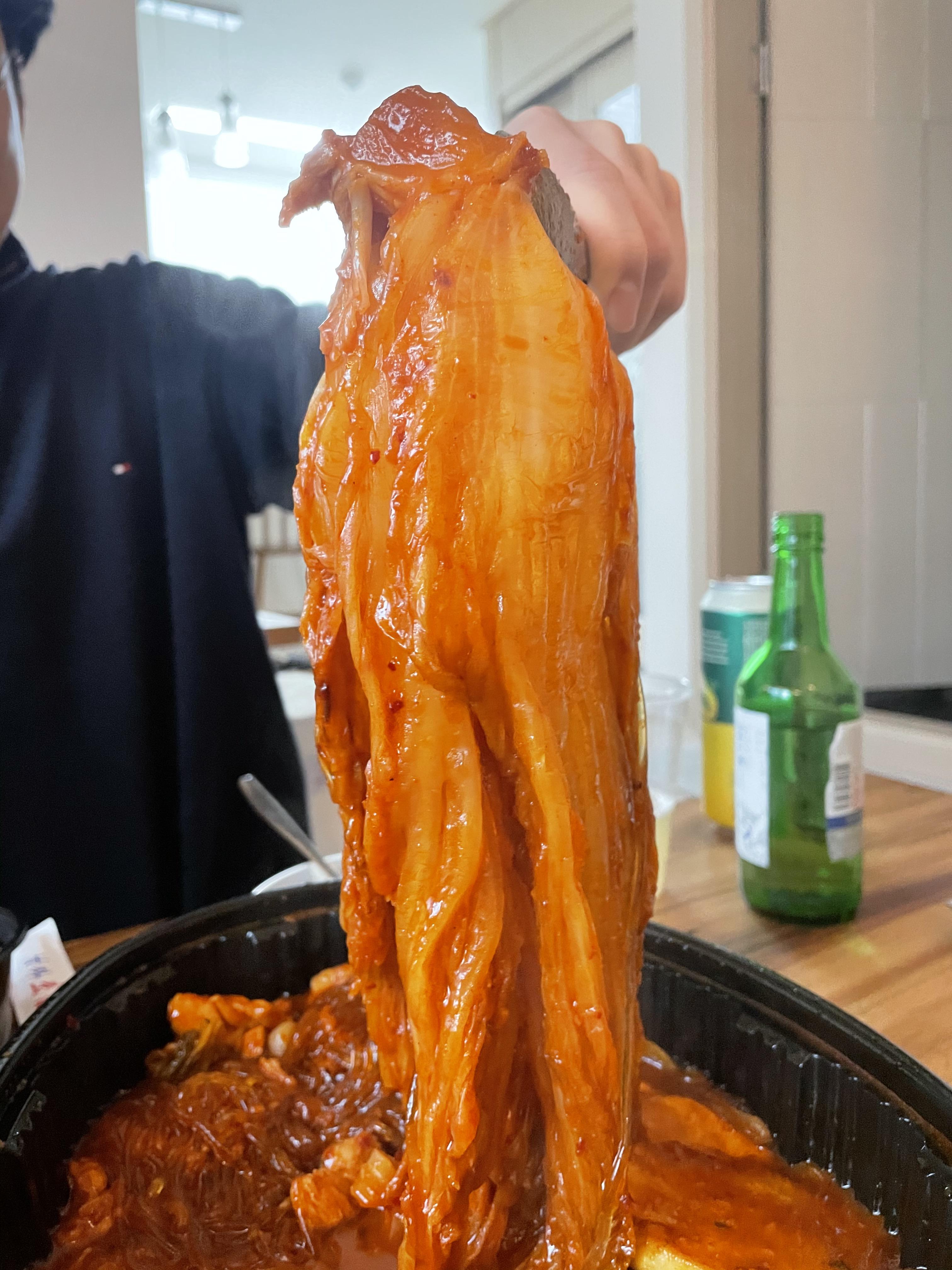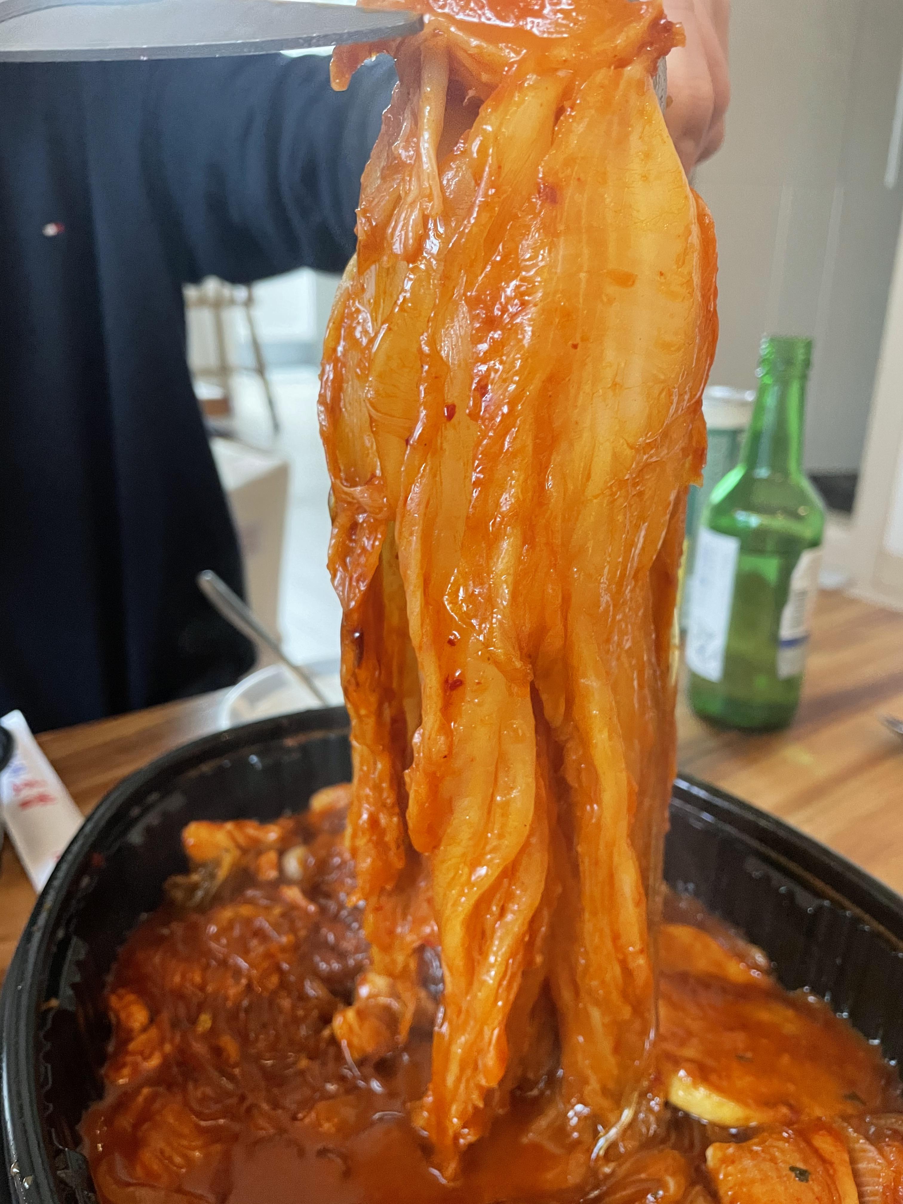 묵은지찜닭이에요. 이 찜닭은 묵은지가 들어가서 느끼한 맛은 전혀 없고 살짝 매콤함이 강했어요. 맛있었어요.