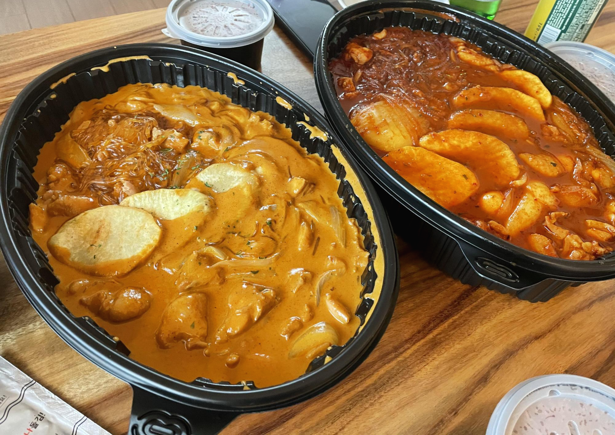 이것은 제가 한 달 전에 먹은 로제찜닭과 묵은지찜닭이에요.