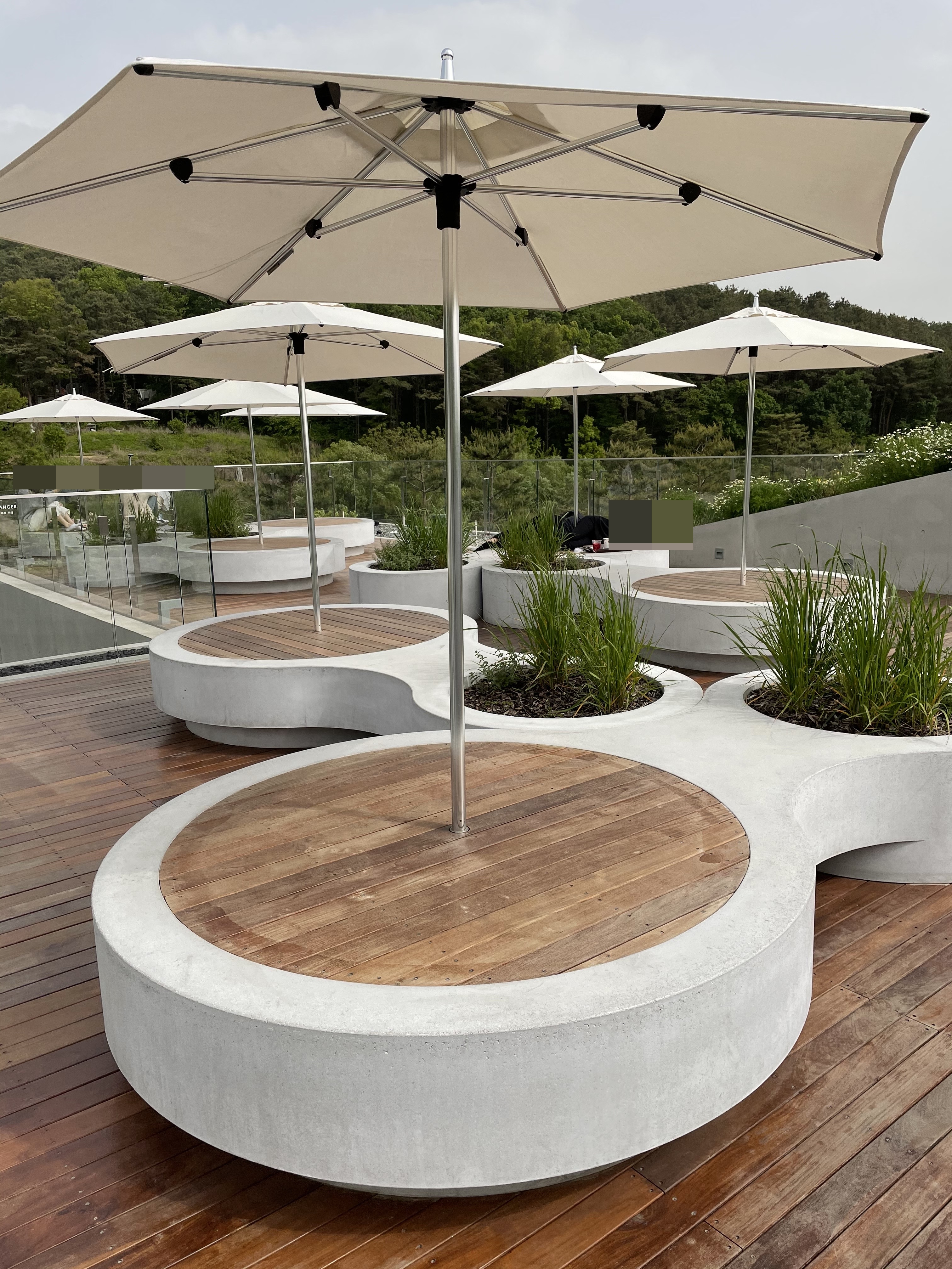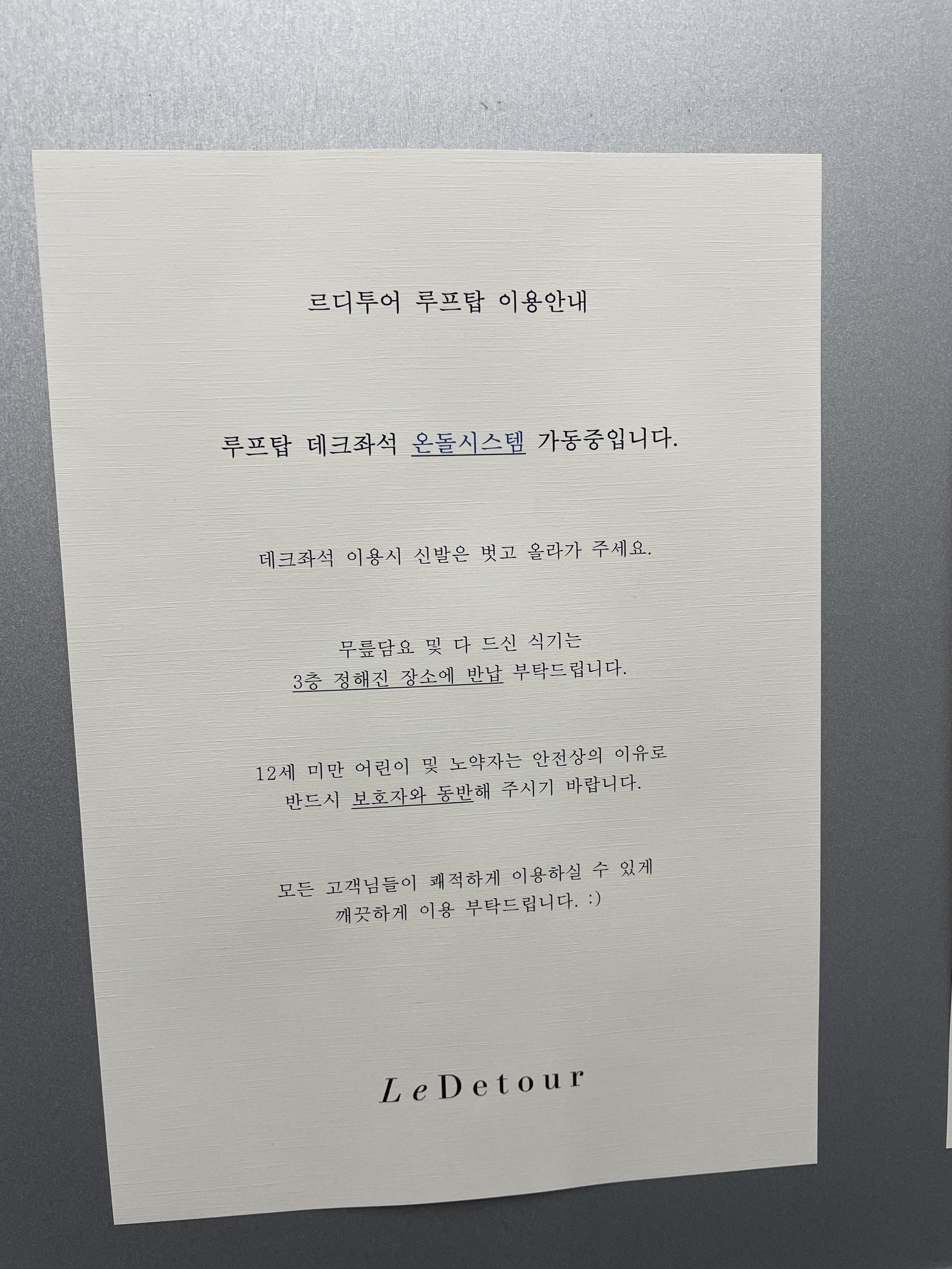 돌로 되어 차갑진 않을까, 하시는 분들을 위한 희소식은 이 데크좌석은 온돌시스템이 가동된다는 점이에요.
