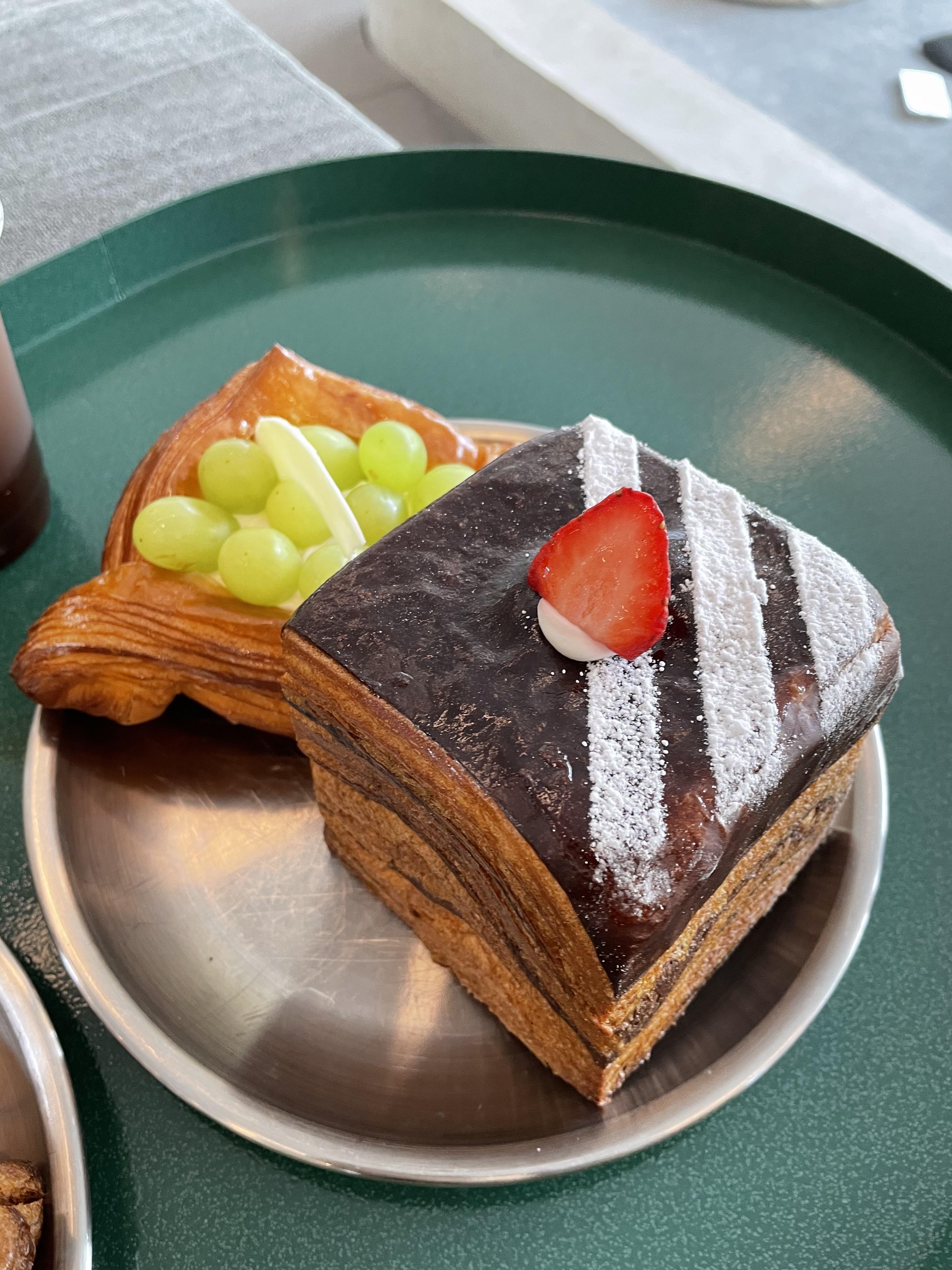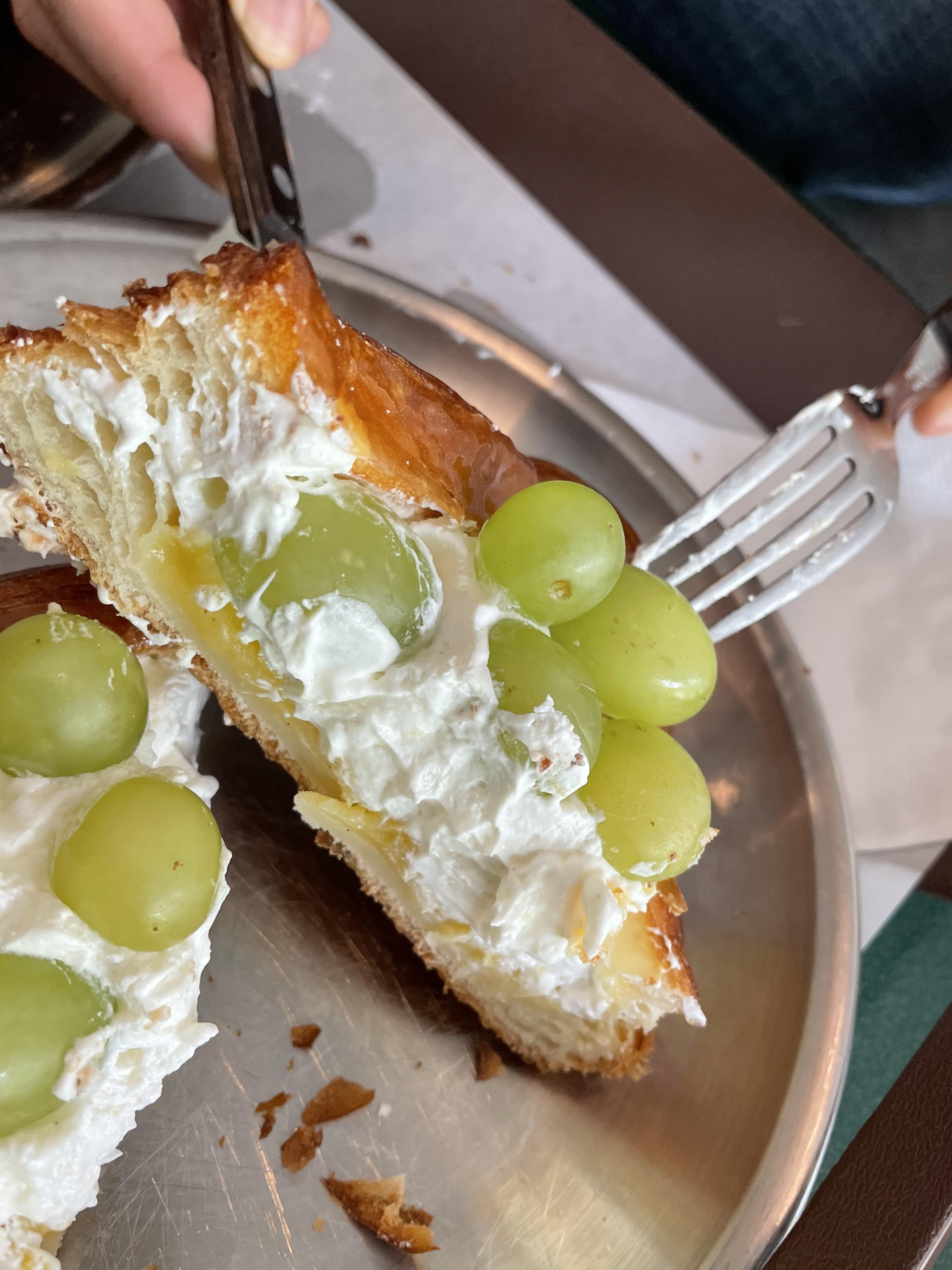 청포도 데니쉬 페이스트리는 페스츄리에 잼? 같은 것과 크림, 청포도가 올라간 빵이었는데, 이것도 맛있었어요.