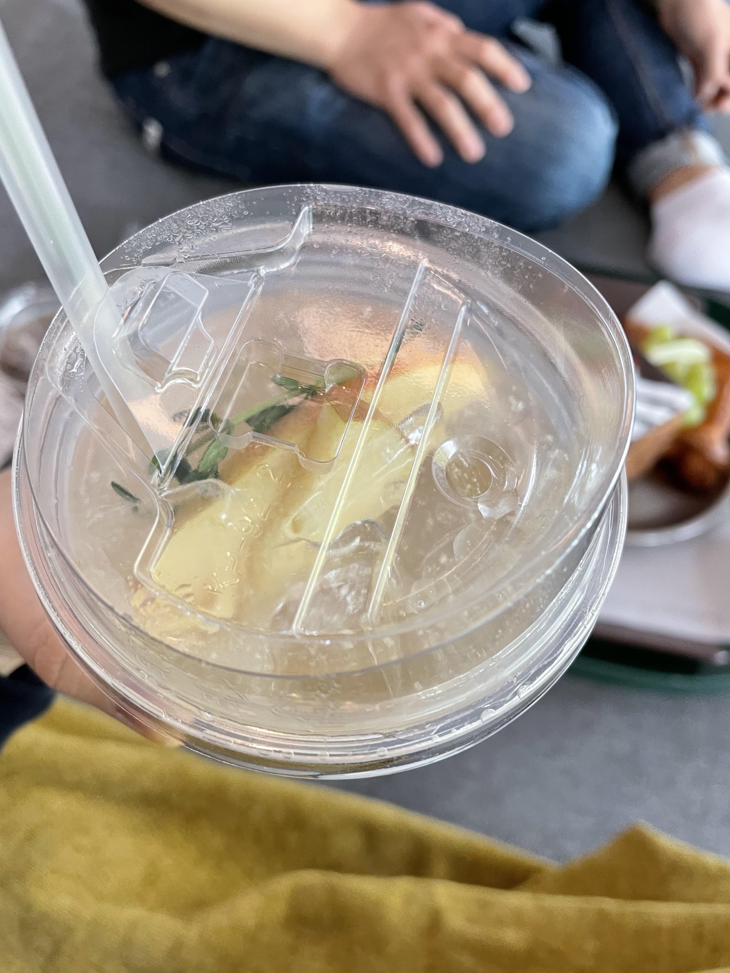 애플피어 에이드는 이름 그대로, 사과와 배가 들어간 에이드였어요. 갈아 만든 배를 살짝 녹여 사과향을 첨가한 느낌이랄까! 괜찮았지만 가격에 비해 양이 아쉬웠어요. 토핑으로 들어간 사과는 먹지 마셔요. 눅눅한 식감이에요.ㅠ