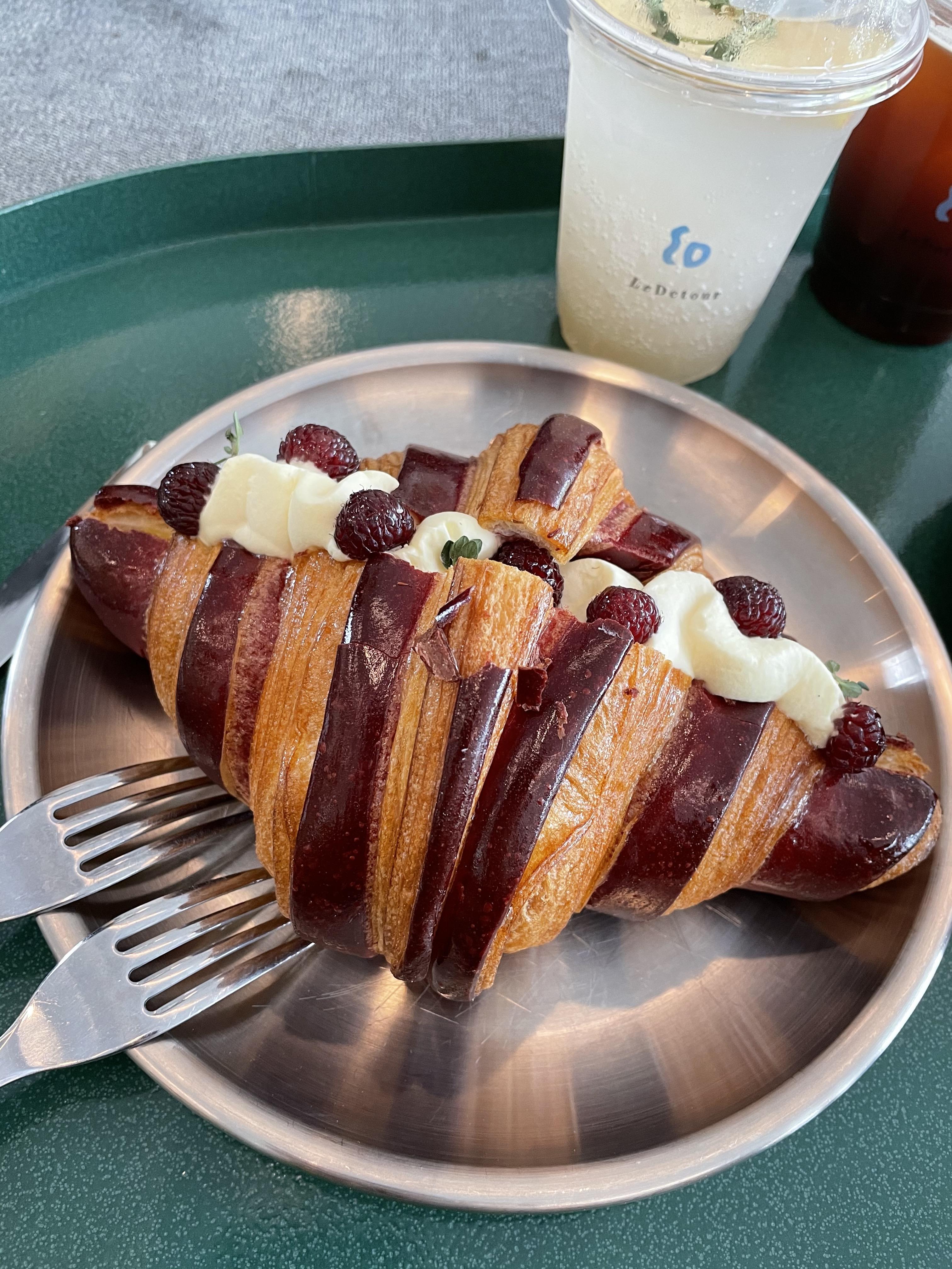 일단 제가 제일 맛있게 먹은 산딸기 크루아상이에요. 일단 비주얼부터 너무 예쁘더라구요.