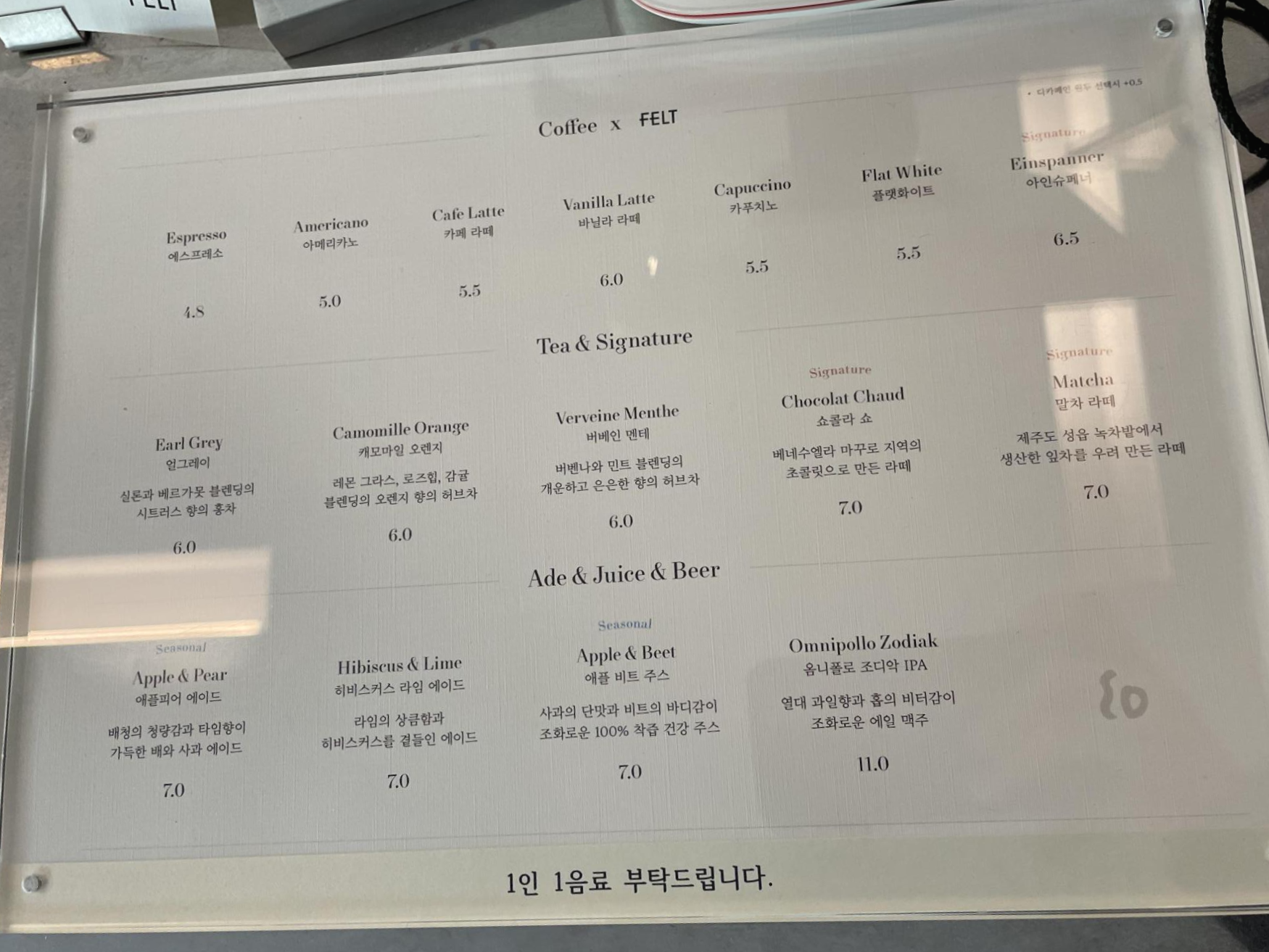 음료는 아메리카노 한 잔과, 에플피어 에이드를 주문했습니다.