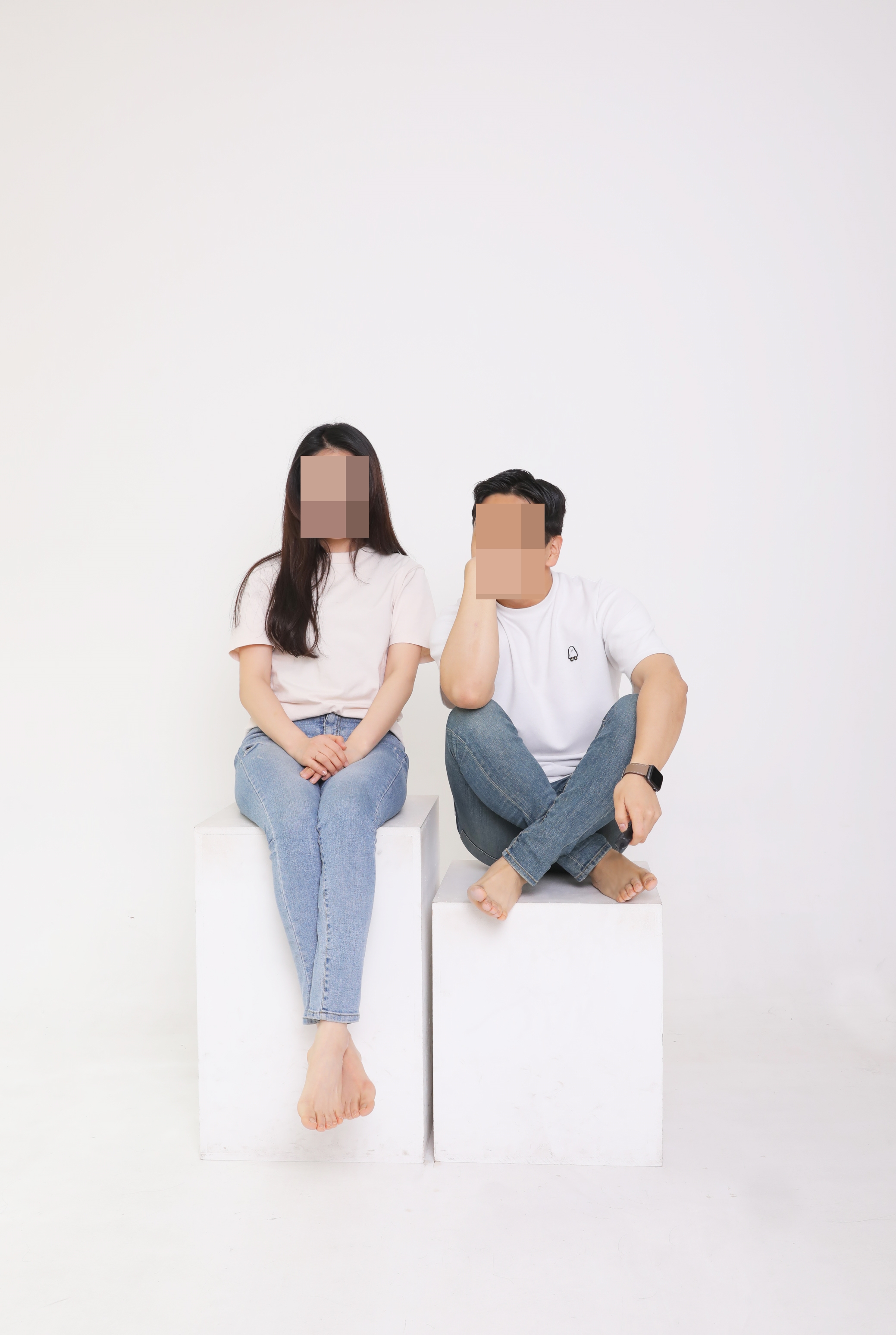 그래도, 저는 흰색 배경이 여자분들은 훨씬 예쁘게 나오는 것 같아요. 화사하고 예쁘게 나오고 싶으시면 흰색 배경에서, 약간 힙하고 멋있게 찍고 싶으시면 회색 배경을 추천드릴게요. 회색 배경에서는 어두운 옷을 입어도 괜찮아 보였어요.