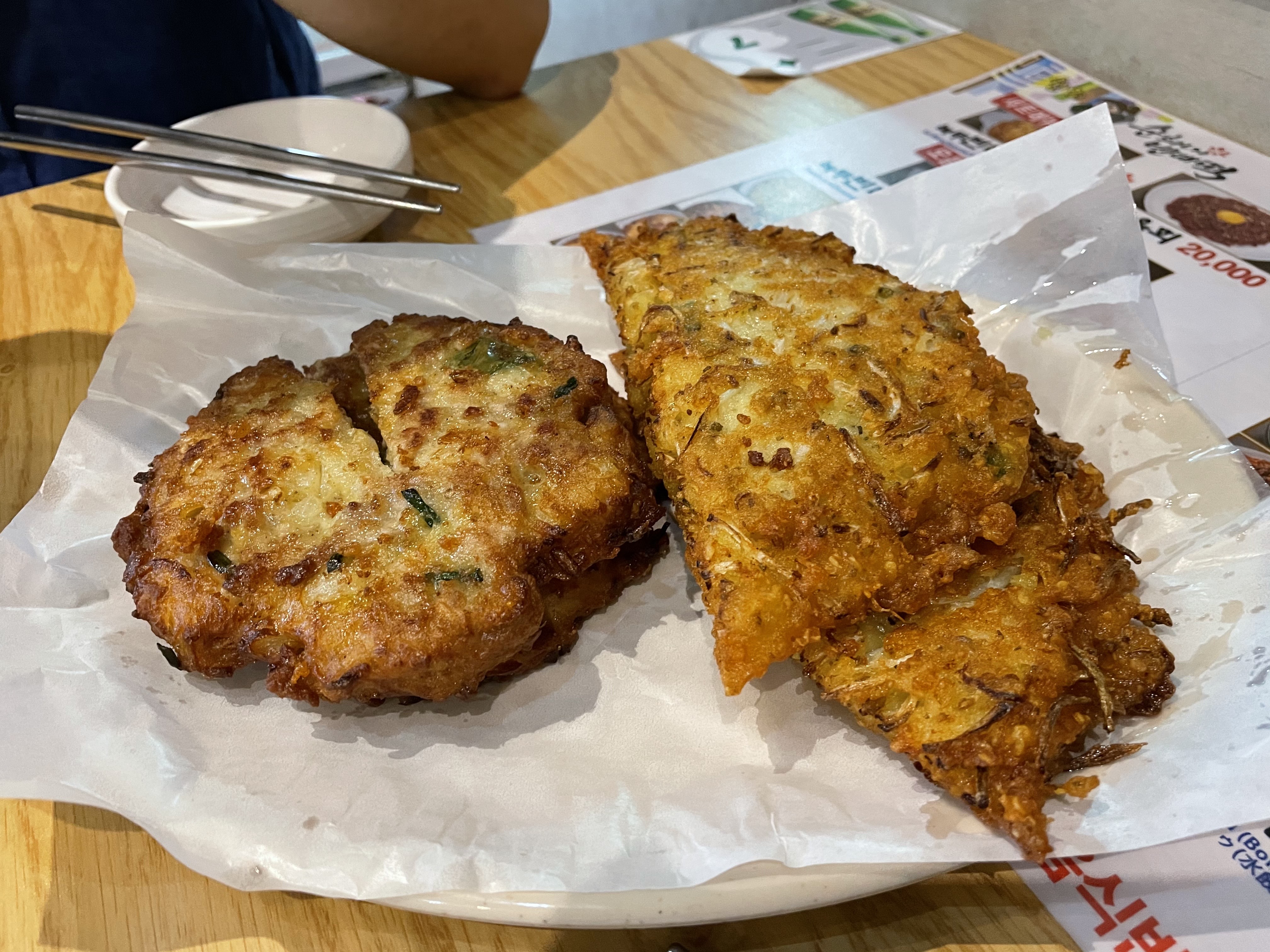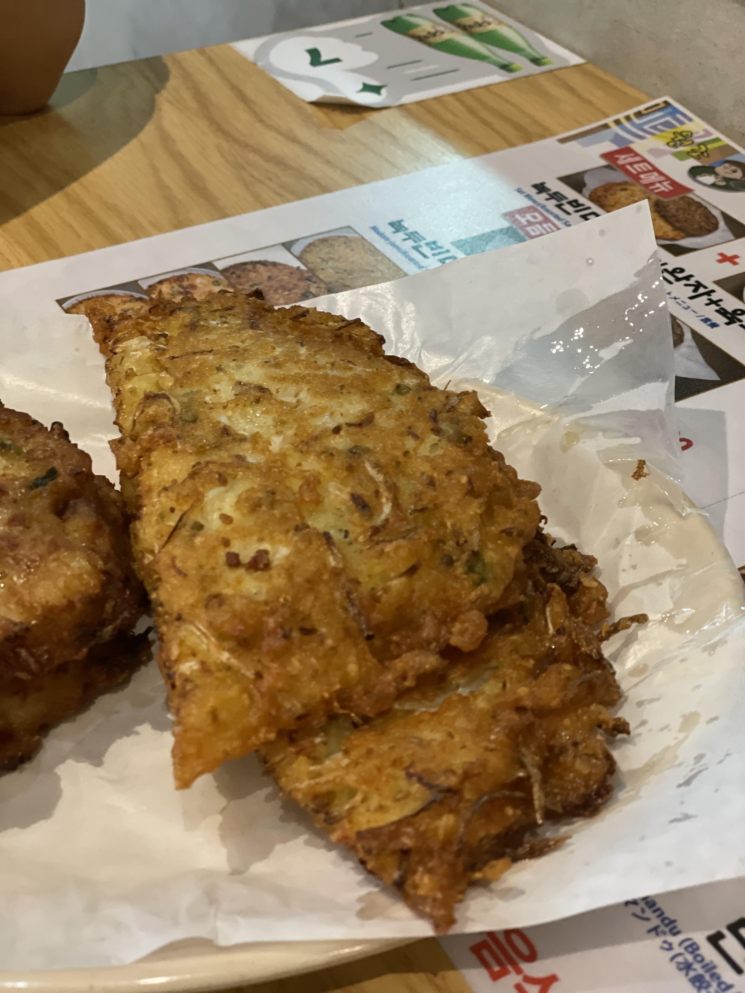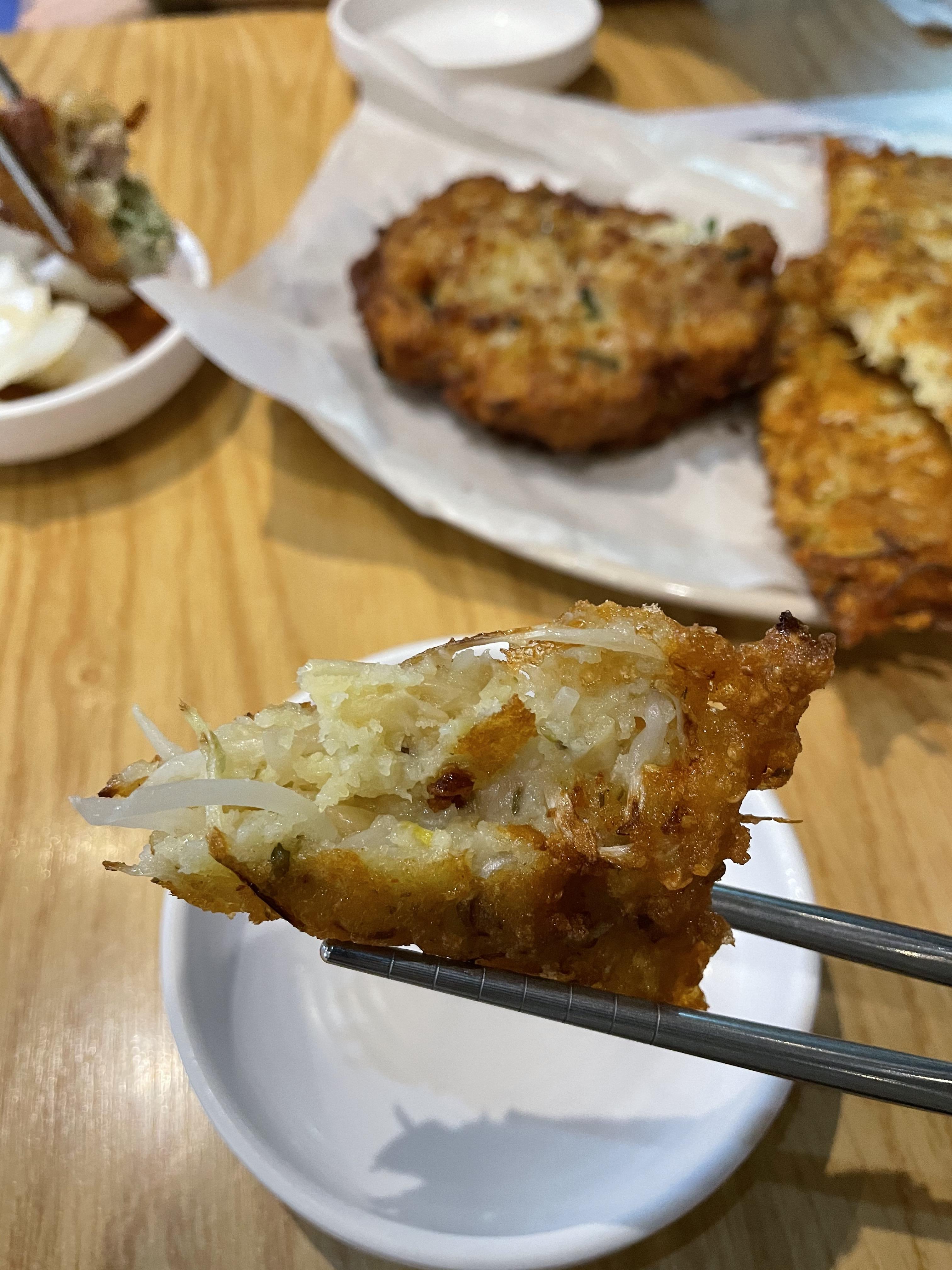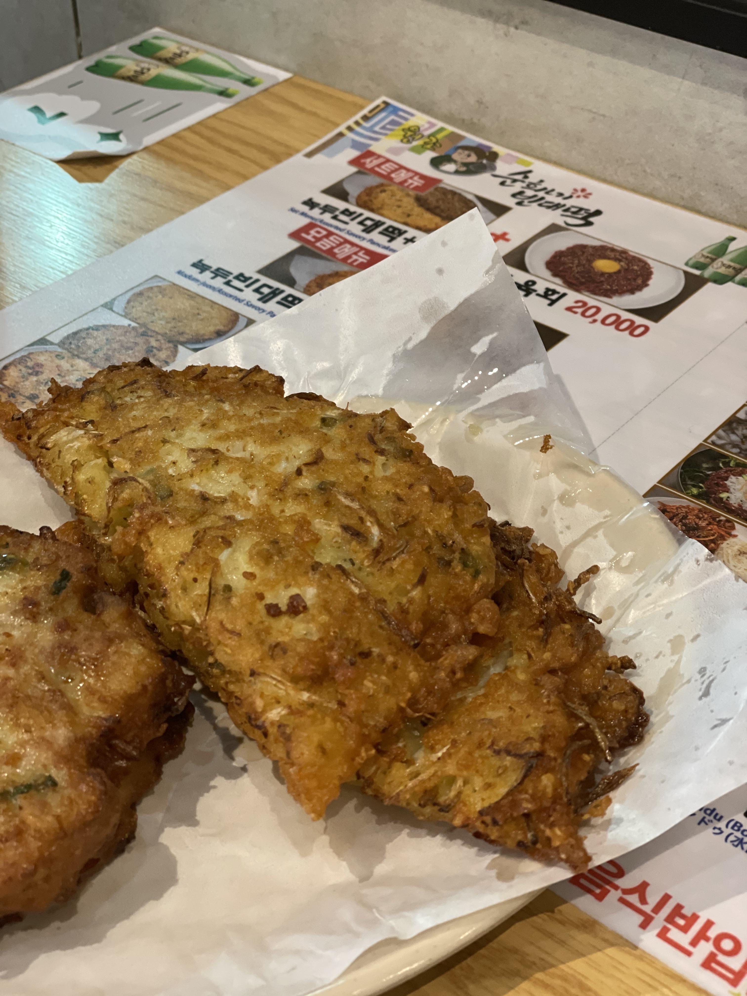 빈대떡이에요. 저는 개인적으로 약간 느끼했어요. 기름기가 워낙 많이 느껴져서 그럴까요?