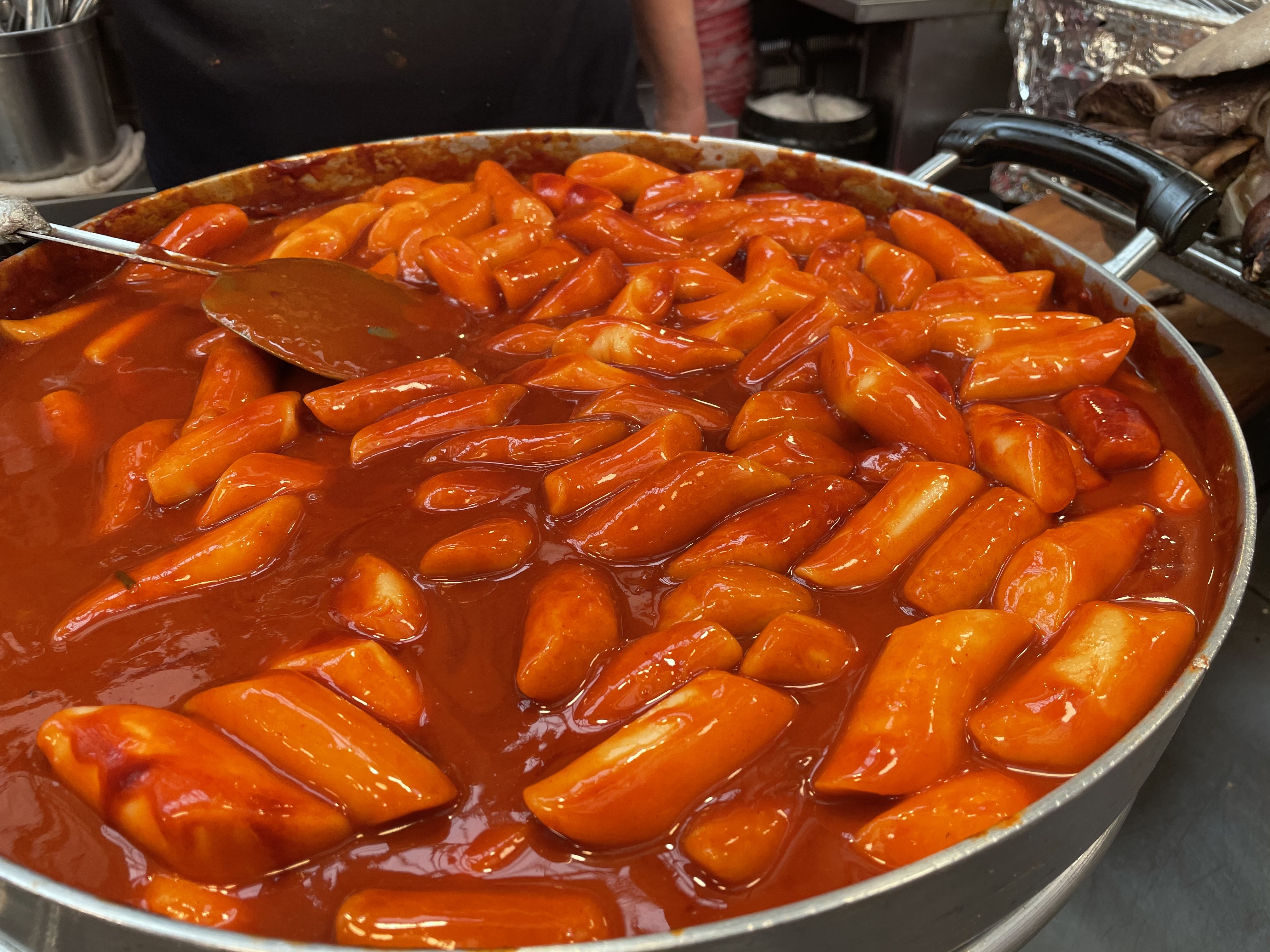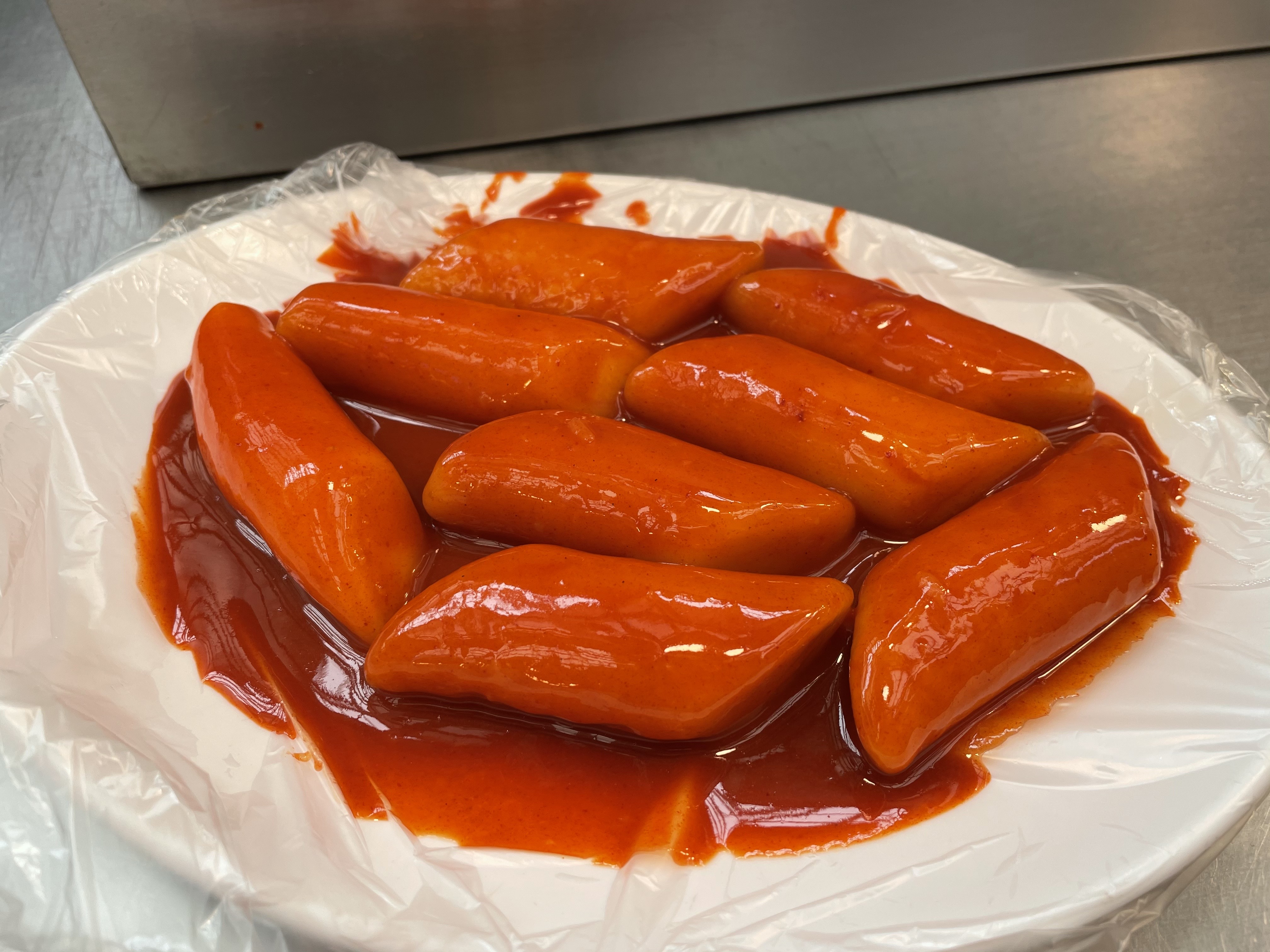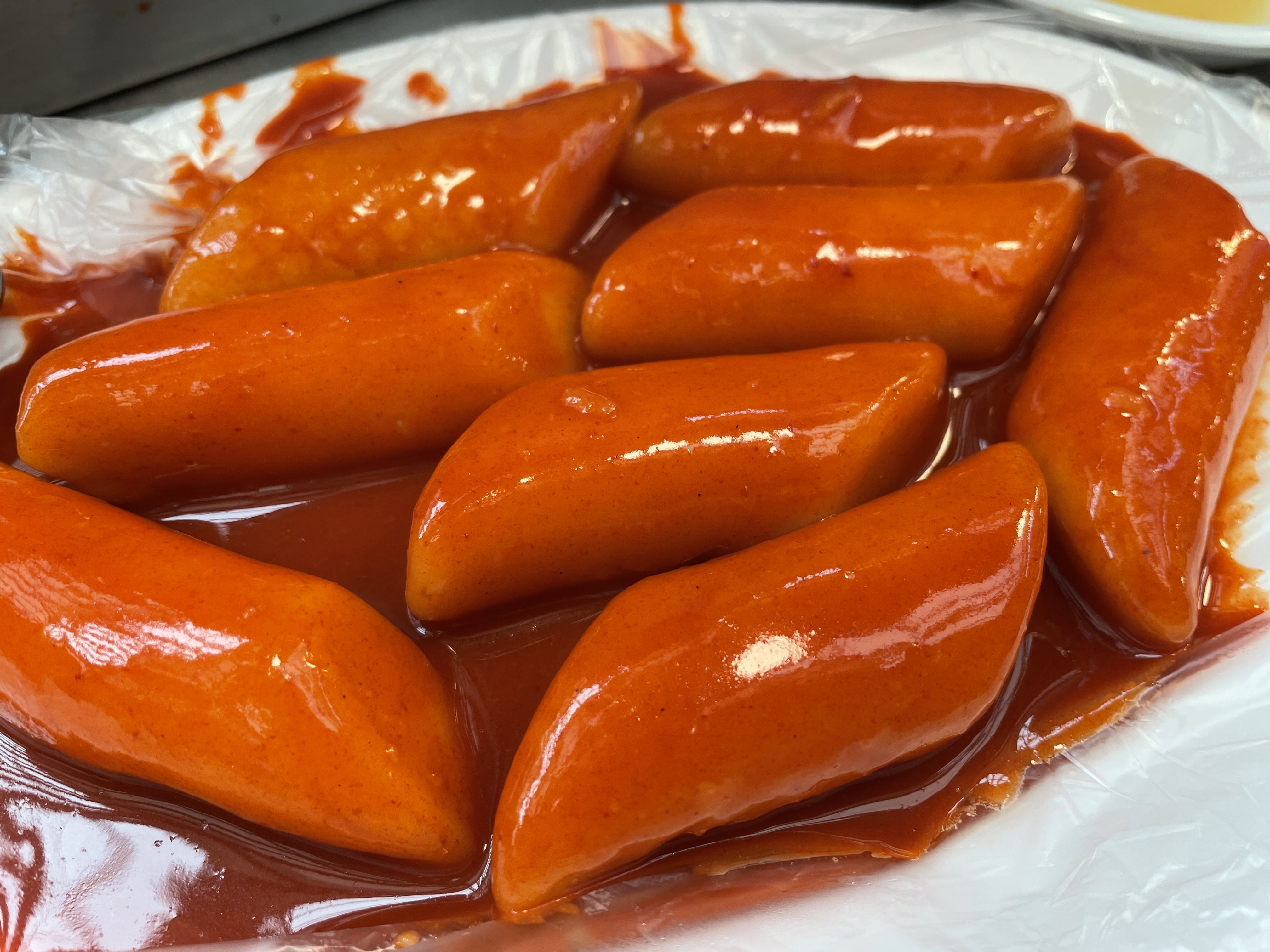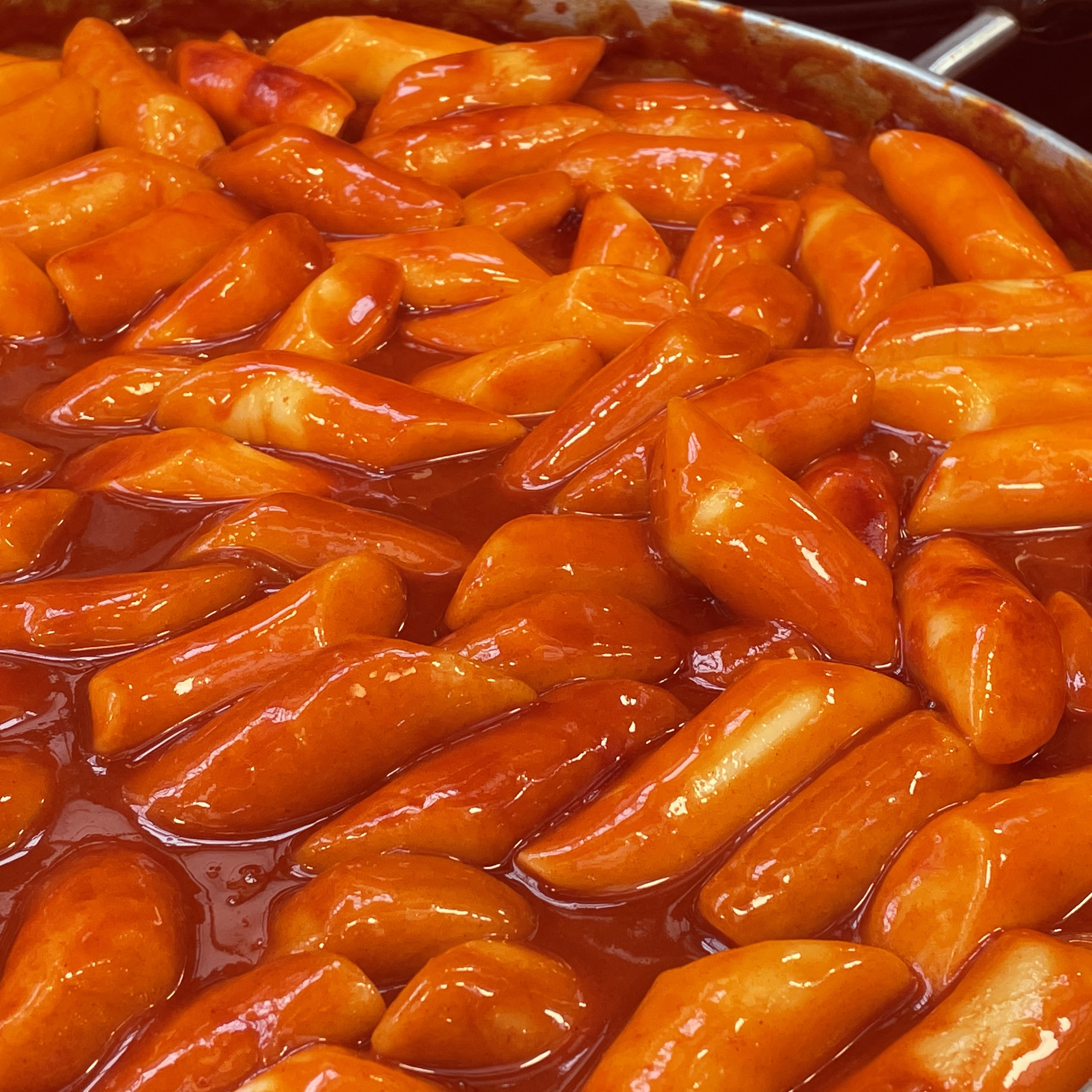 제가 반했던 떡볶이의 반들반들한 자태예요. 일단 엄청 굵은 떡이고, 쌀떡인 것 같아요.