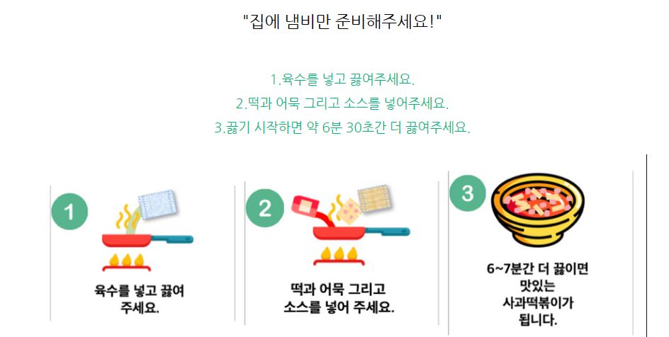 사과떡볶이는 인공조미료 없이 좋은 재료로 만든 수제떡볶이로, 먹고 나서도 속이 편한 떡볶이, 식어도 맛있는 떡볶이라고 하네요. 만드는 방식과 포장방식 모두 수제이다 보니, 하루에 2,000개의 떡볶이 패키지만을 만들 수 있어 주문 후 받아보는 데까지 오래 걸리는 것이라 하네요.