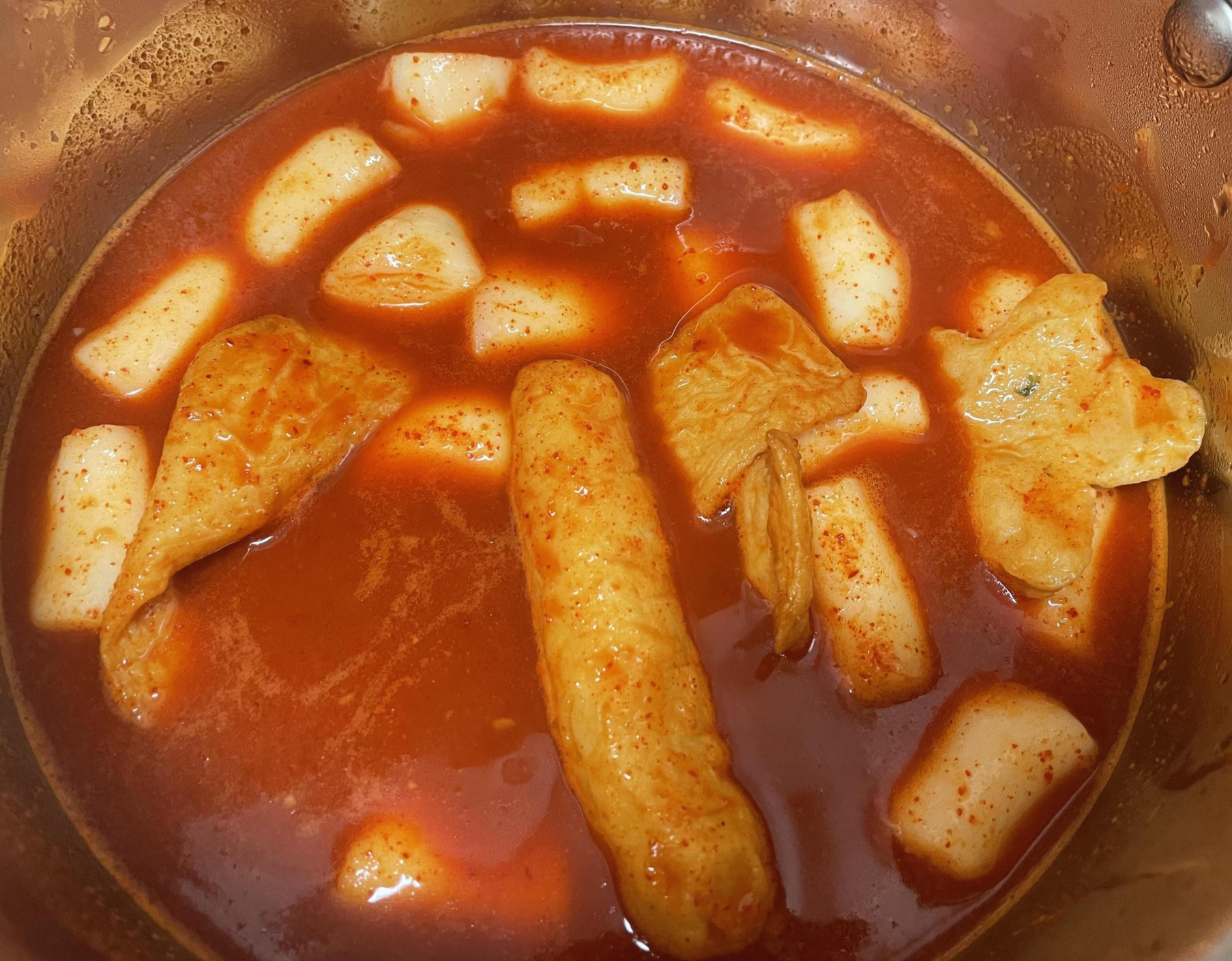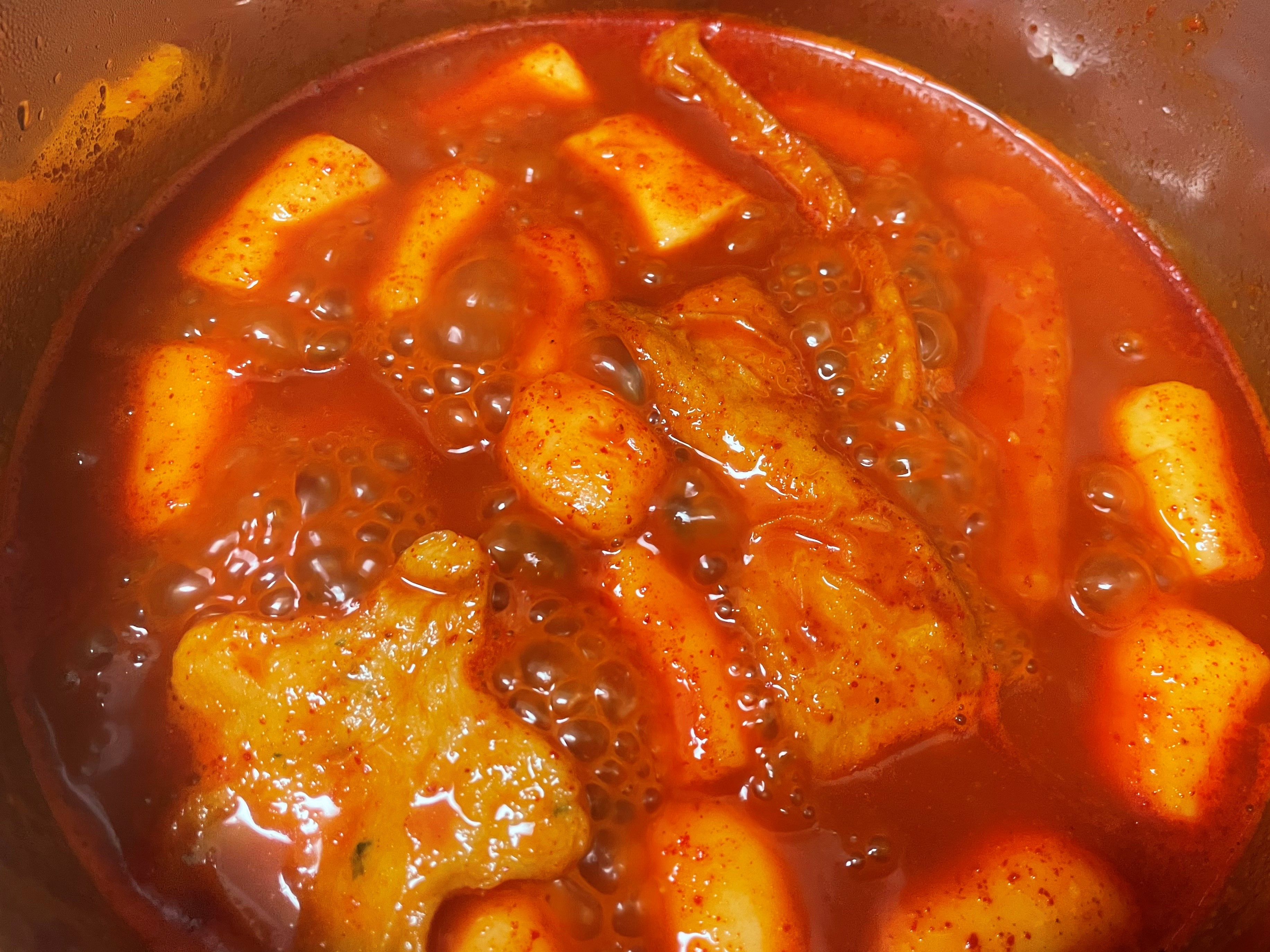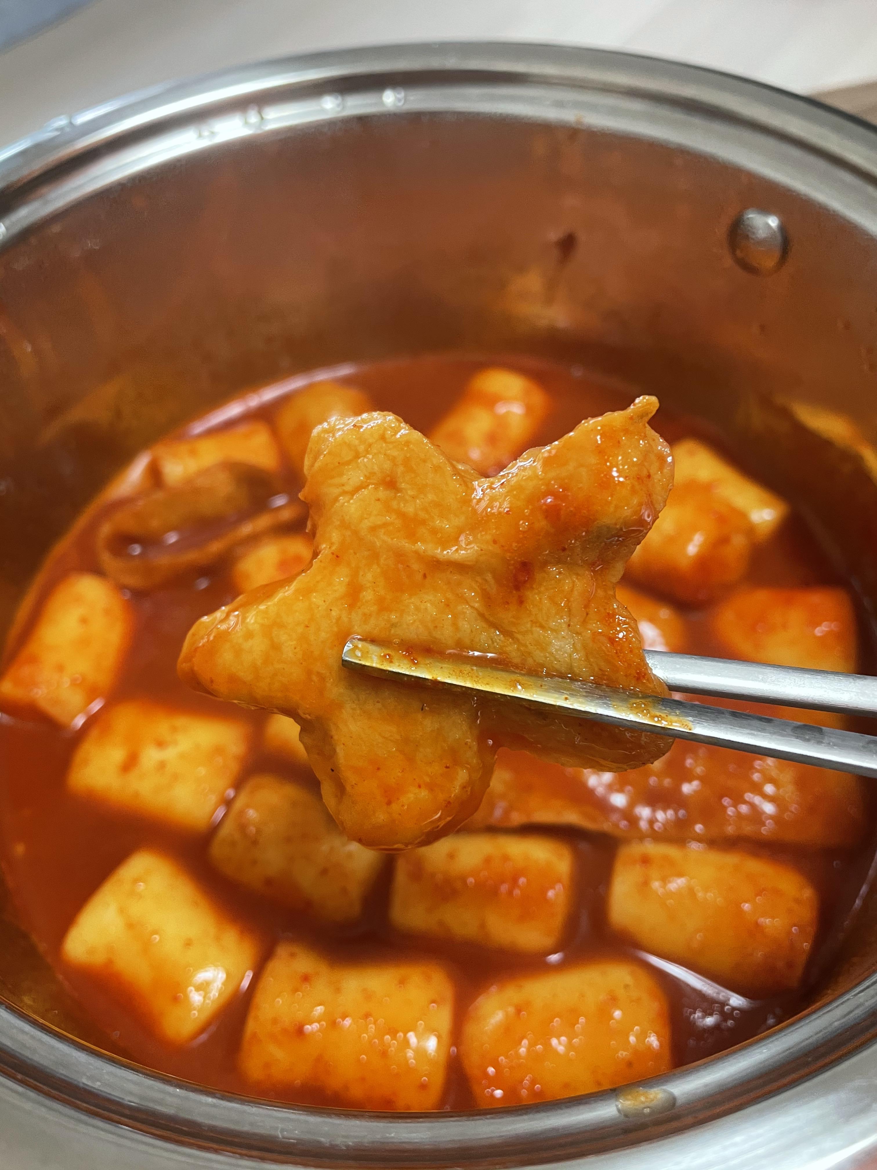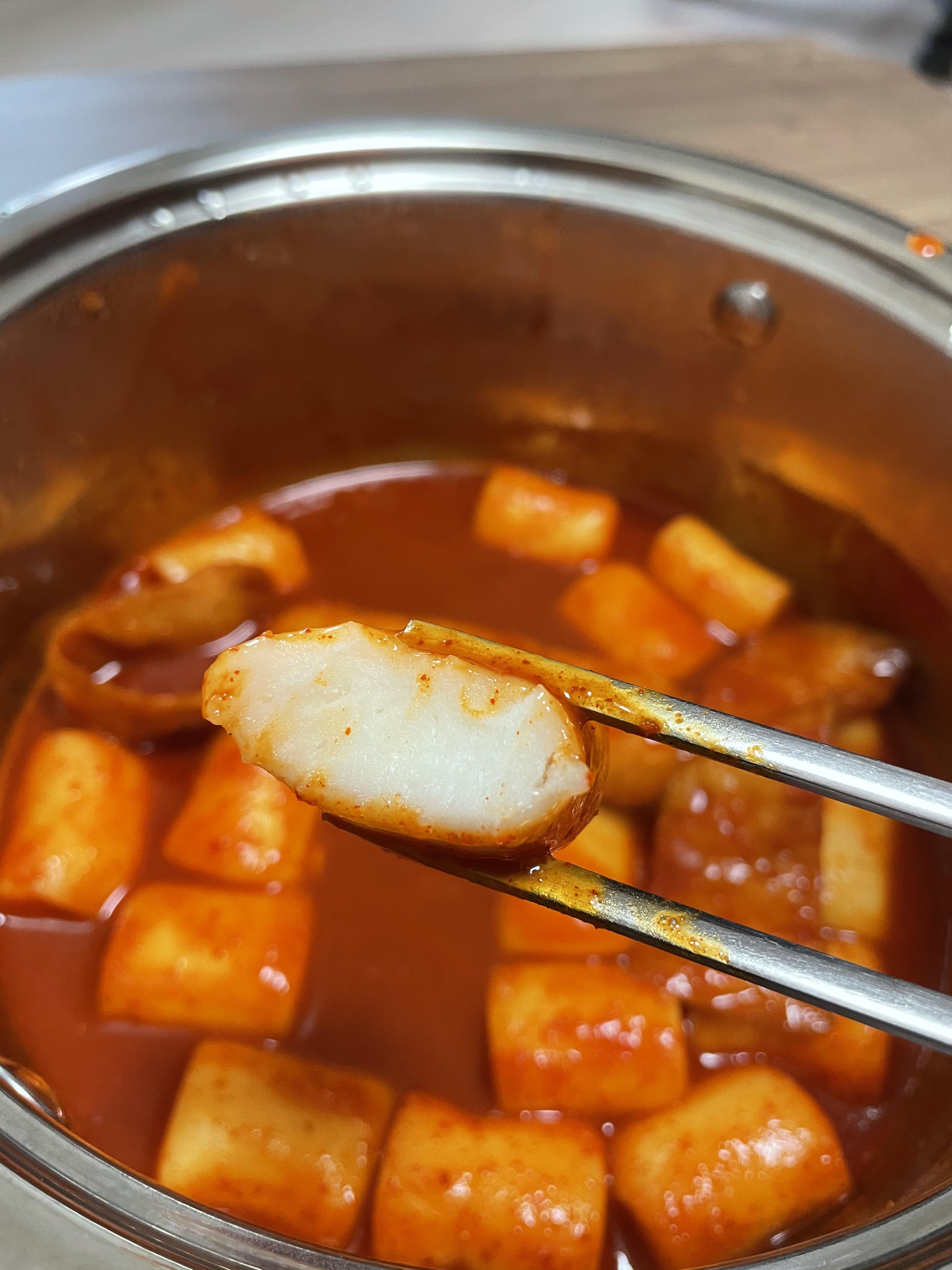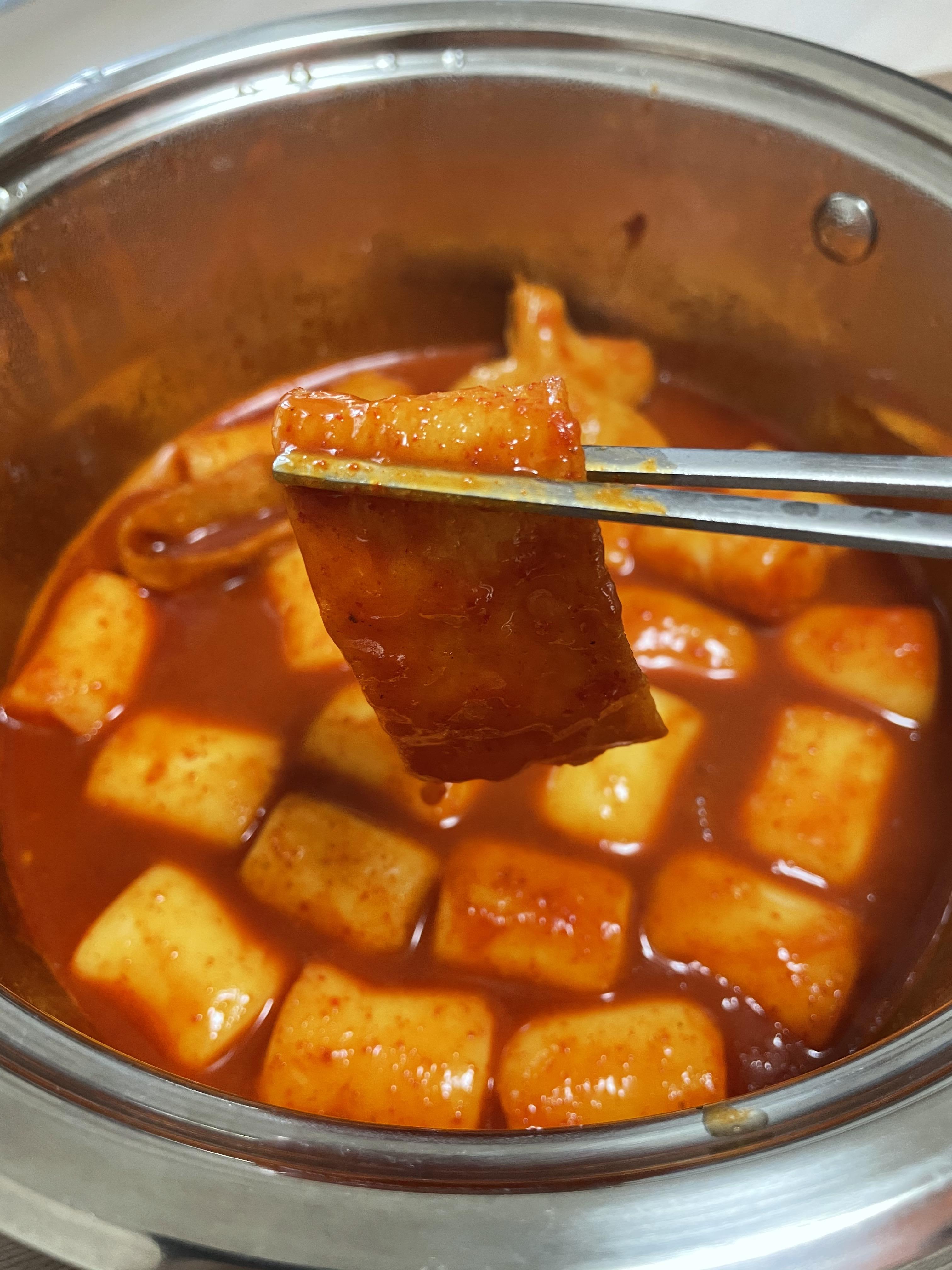 육수가 끓기 시작하면, 떡과 어묵, 양념장을 넣어주면 됩니다.