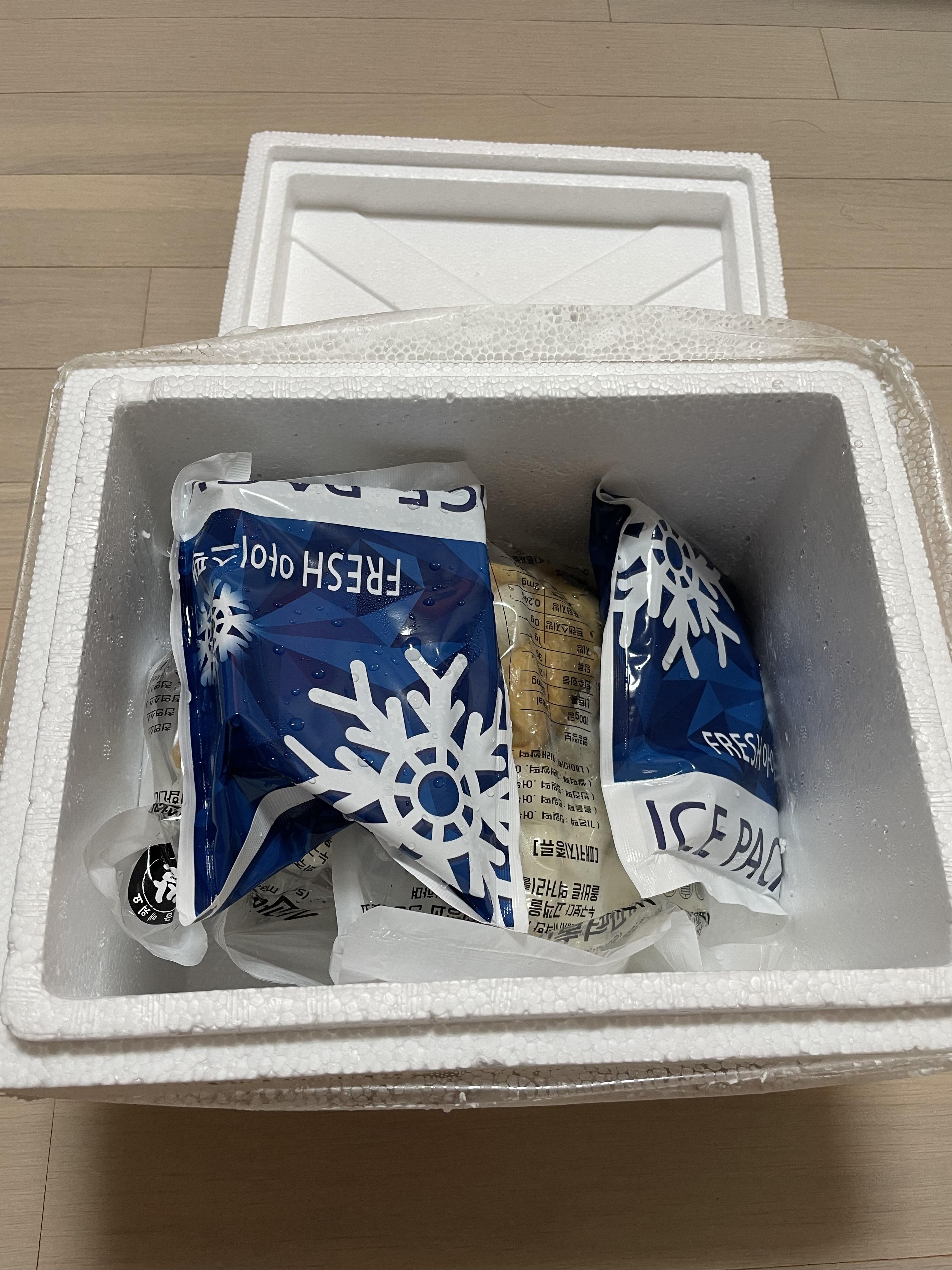 택배는 이렇게 아이스박스에 왔어요.