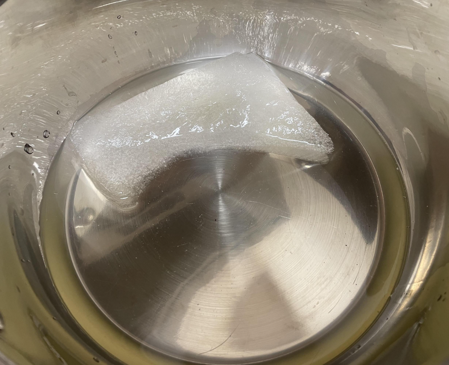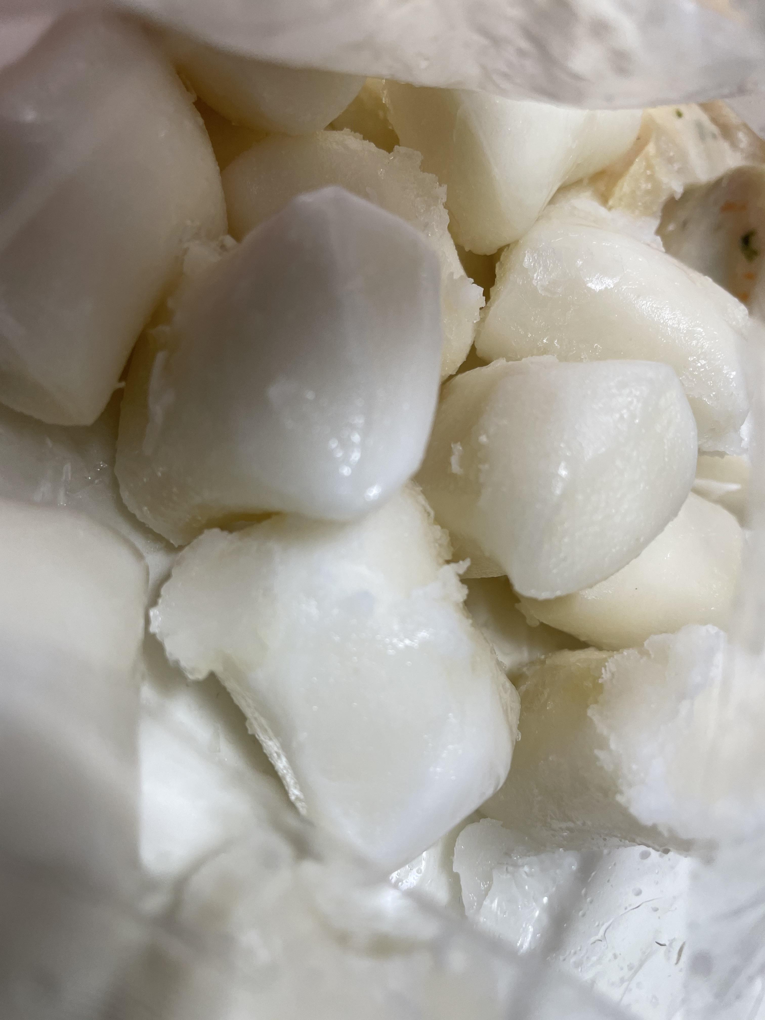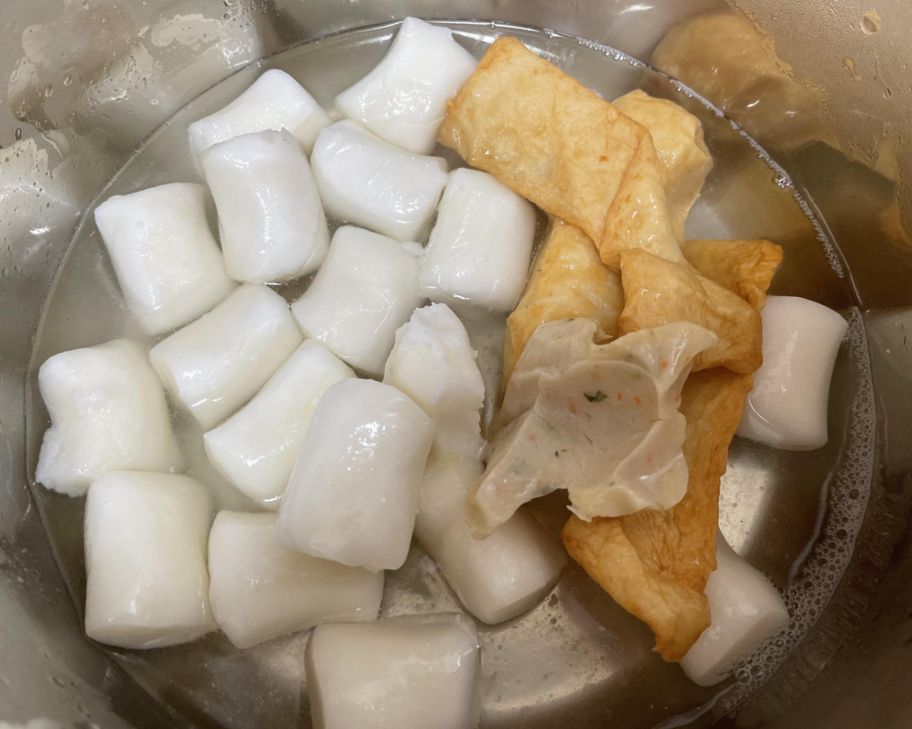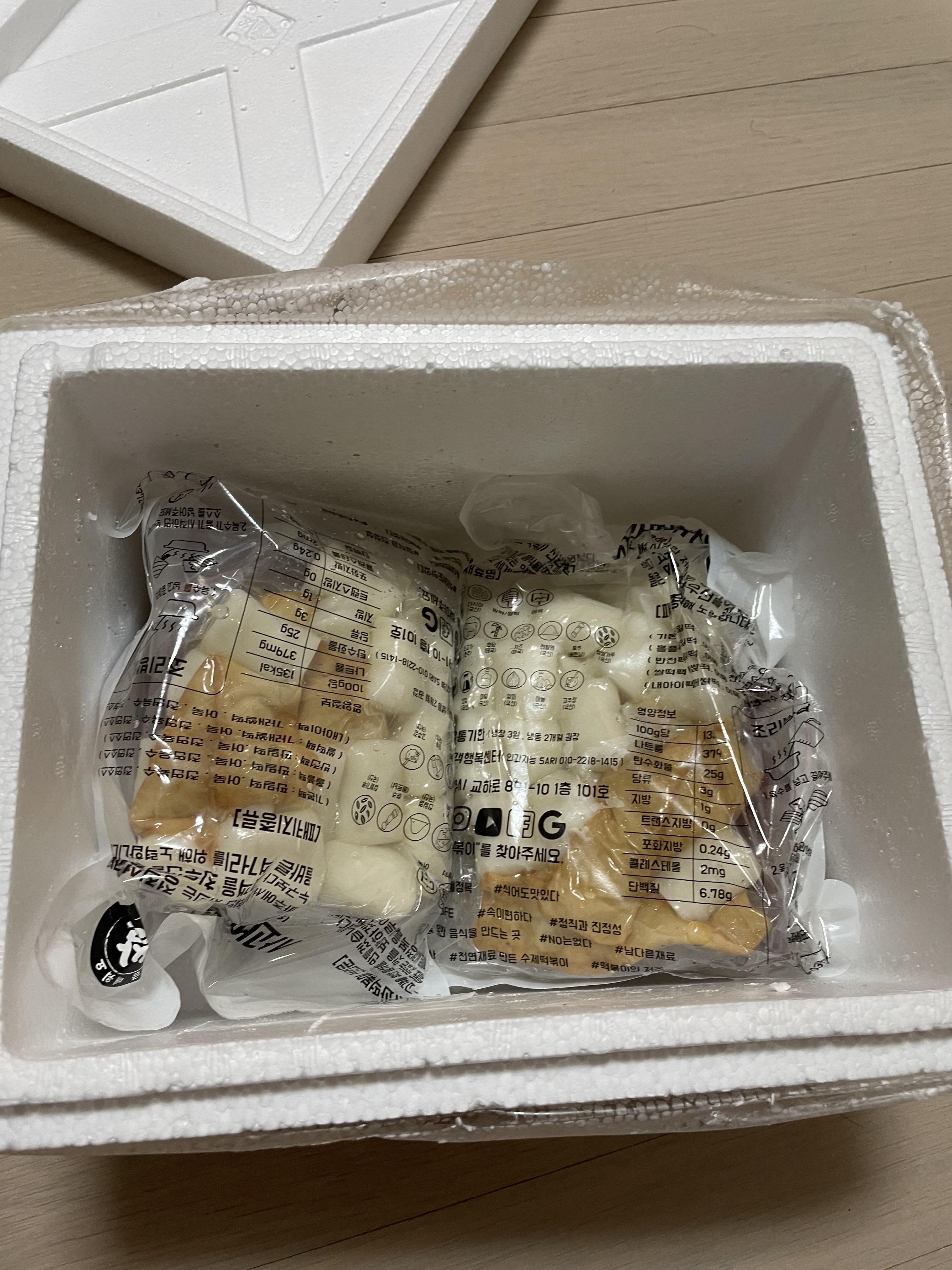 육수는 꽁꽁 얼어있어서 물에 담가 녹게 해 주고, 떡은 붙어있던걸 분리해줬어요. 쉽게 분리가 되어요.