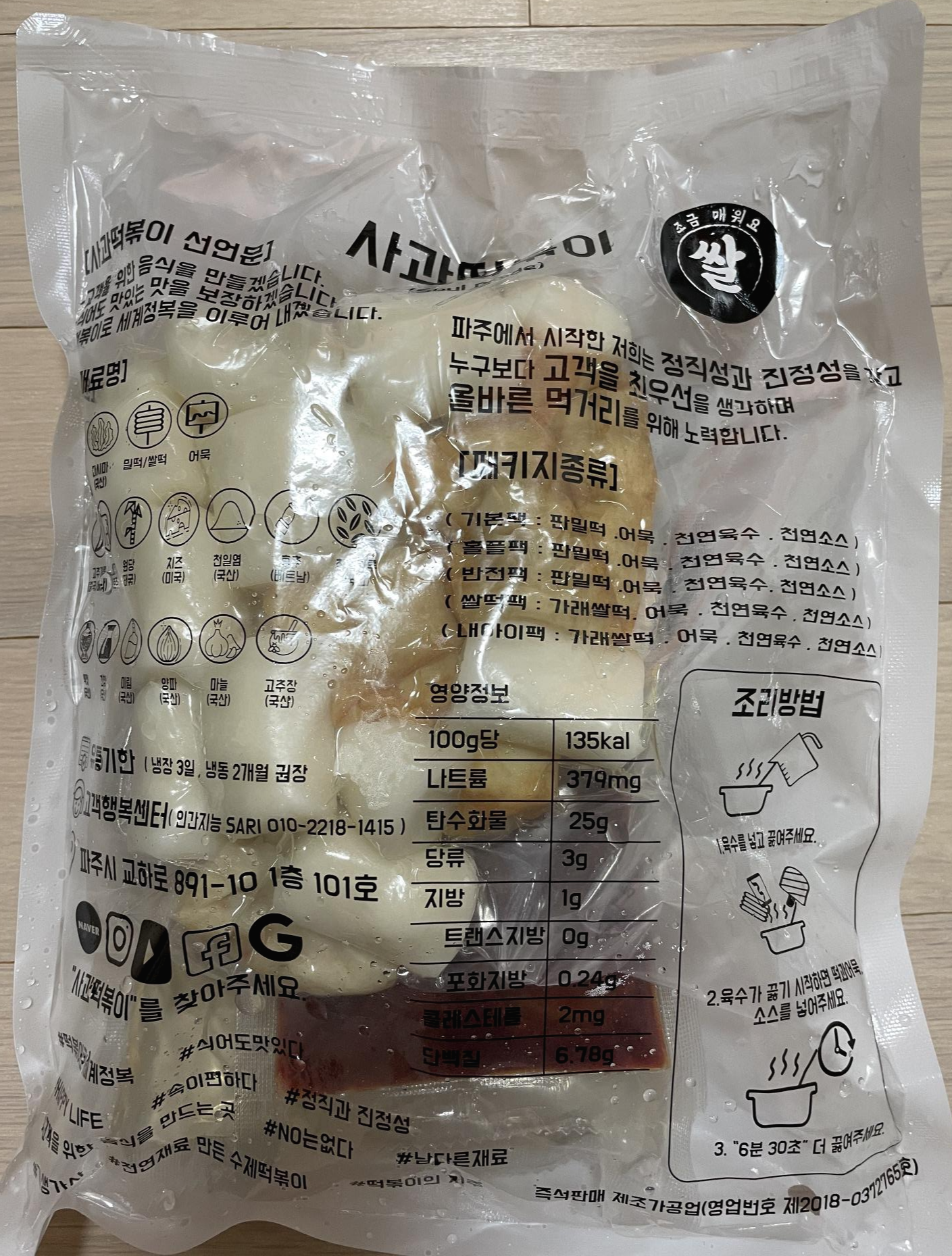 사과떡볶이의 로고인가 봐요. 일단 조리법을 보면서 조리를 해보려고요.